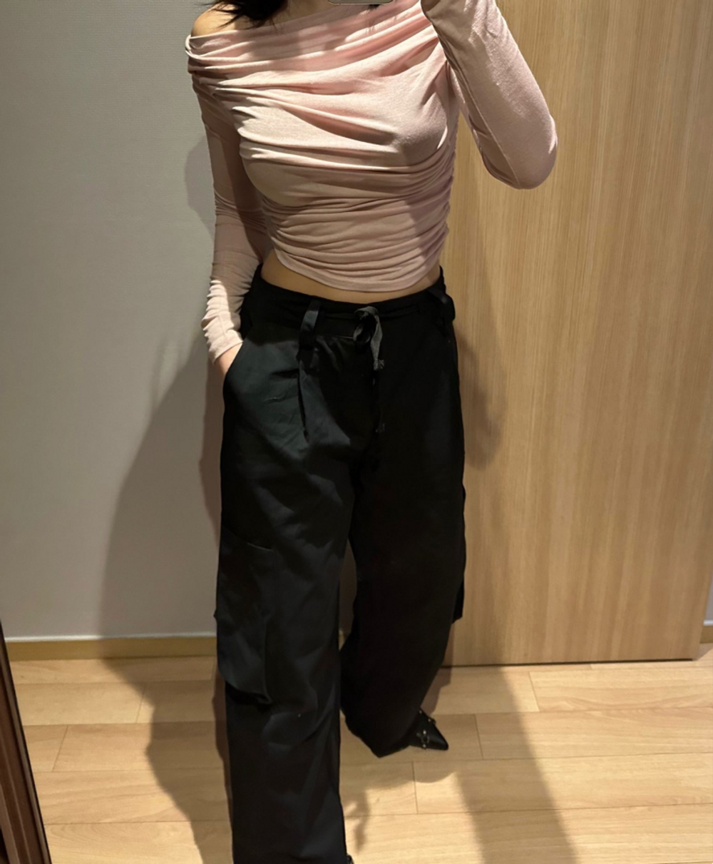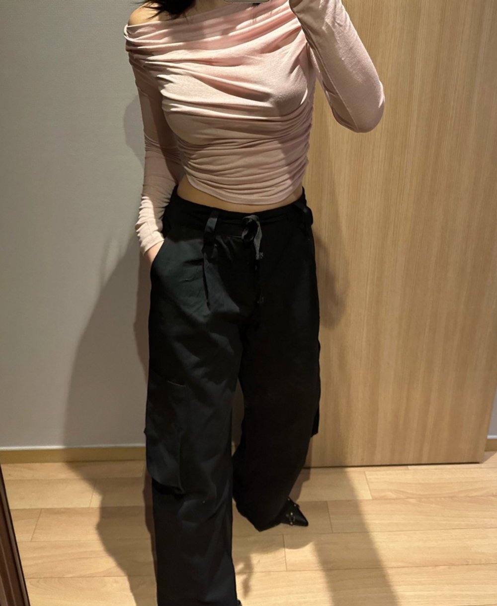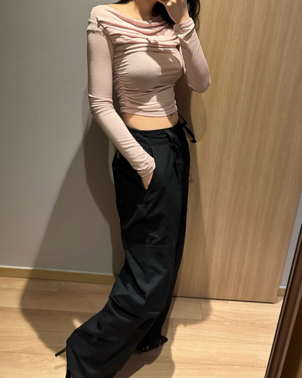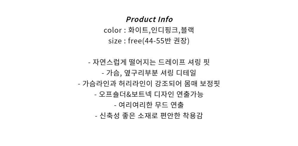 페미닌 드레이프 셔링 오프숄더 티셔츠 (3color)