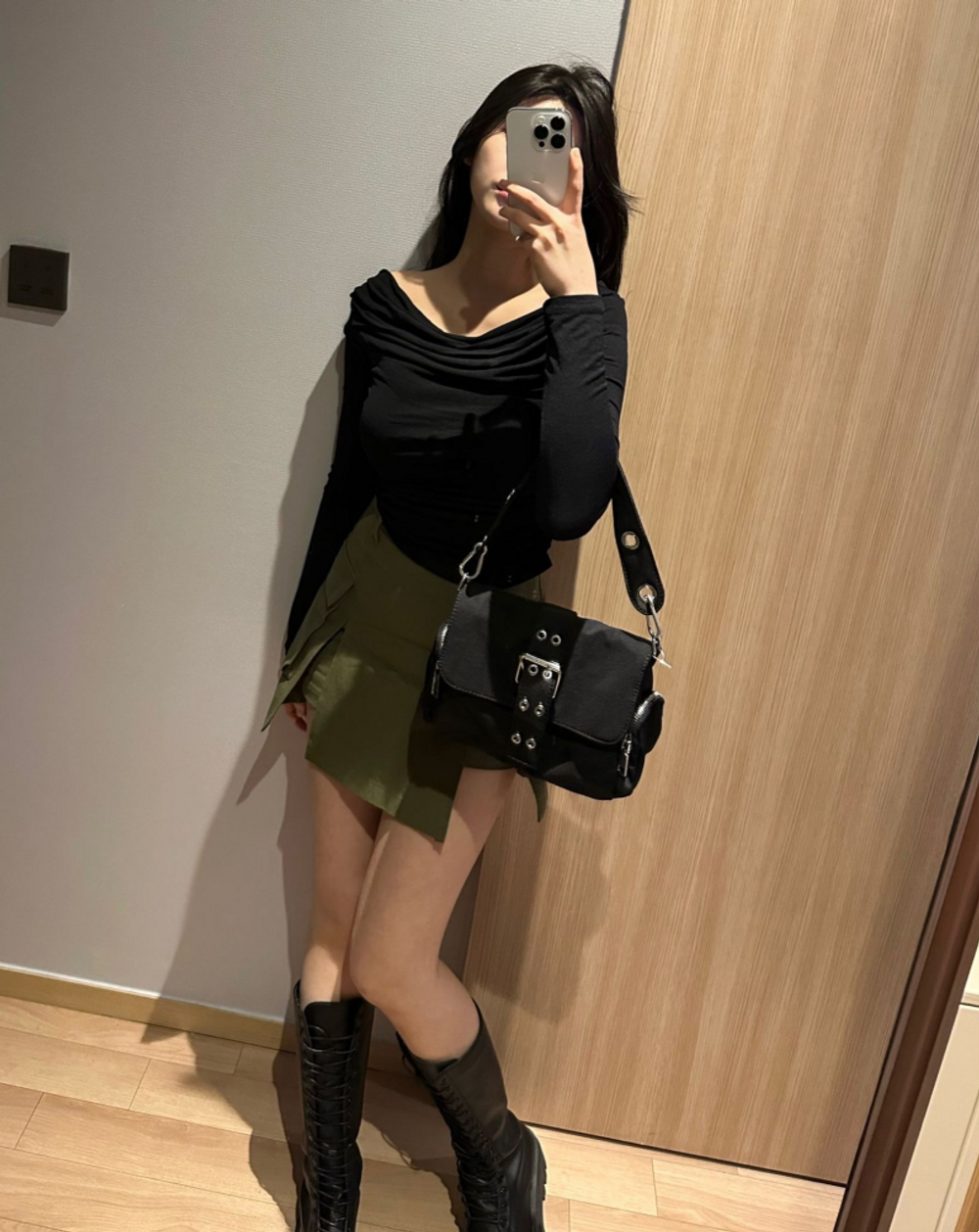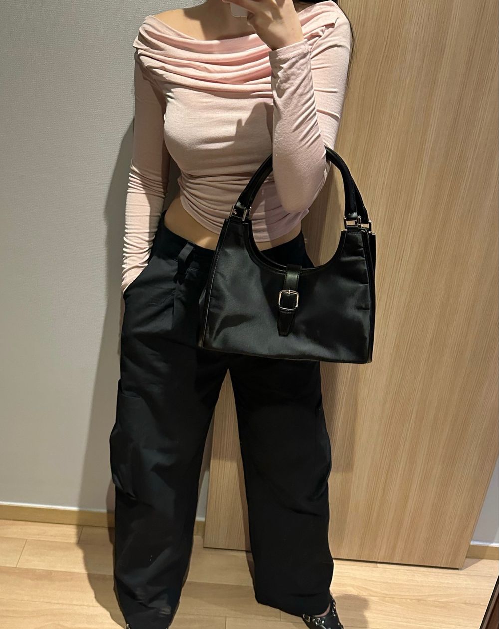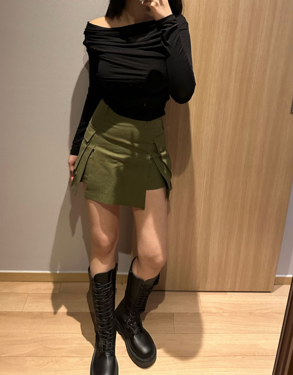페미닌 드레이프 셔링 오프숄더 티셔츠 (3color)