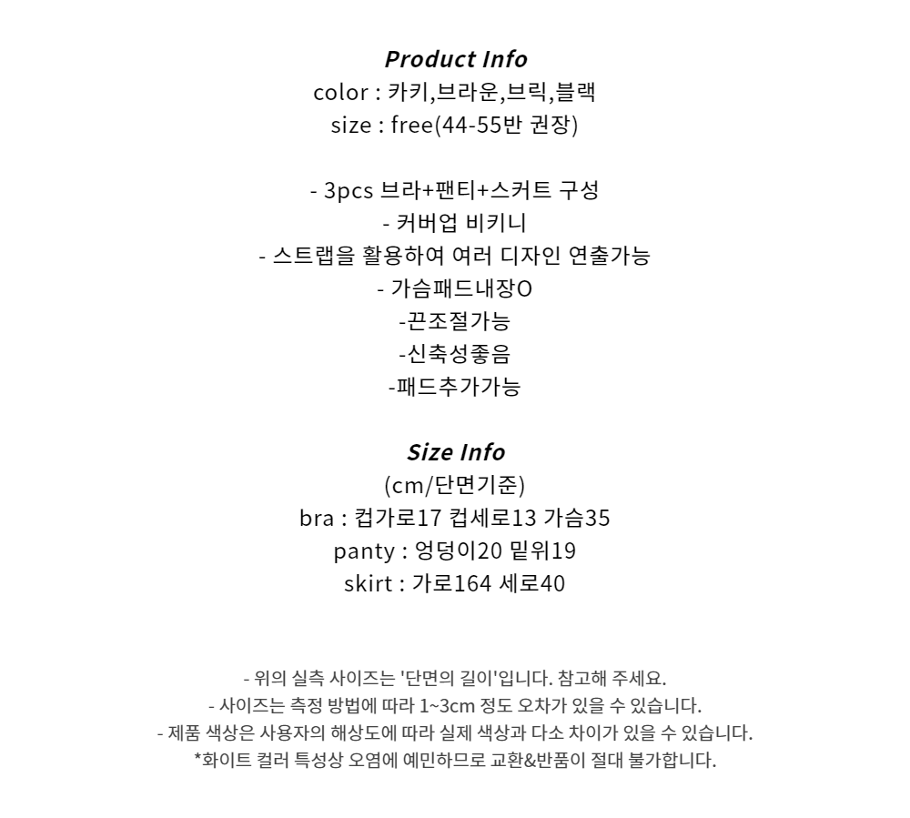 (3pcs) 홀터넥 스트랩 스커트 커버업 비키니 (4color)