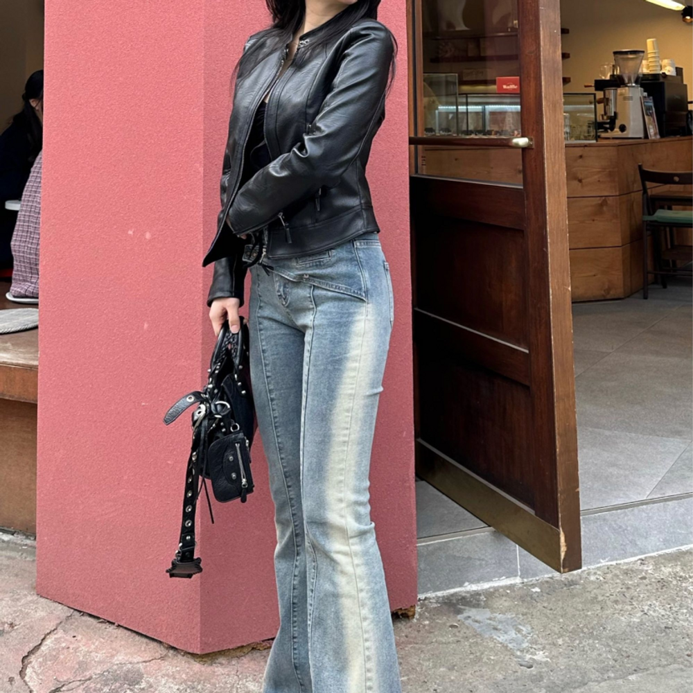y2k 빈티지 사이드 워싱 랩 부츠컷 데님 팬츠