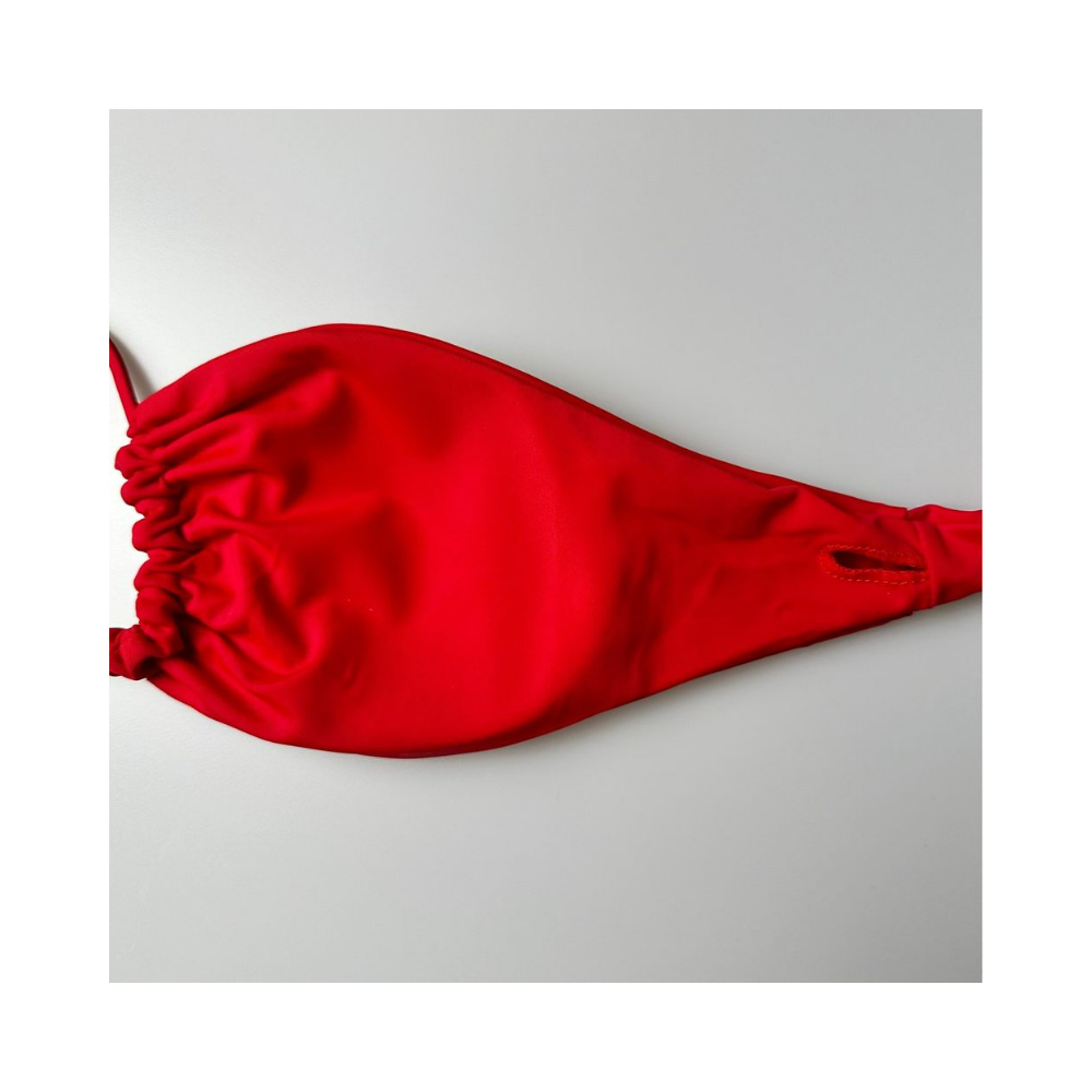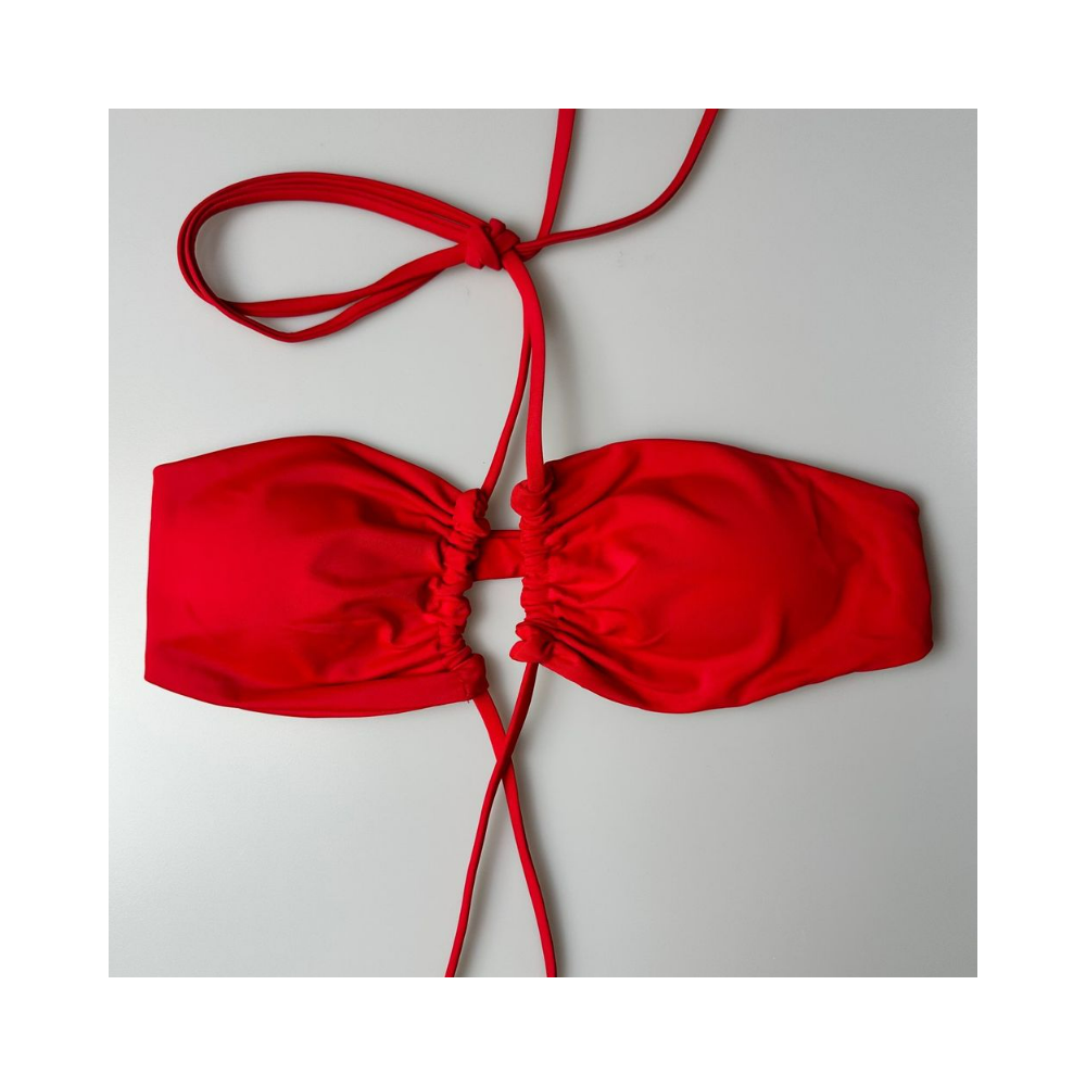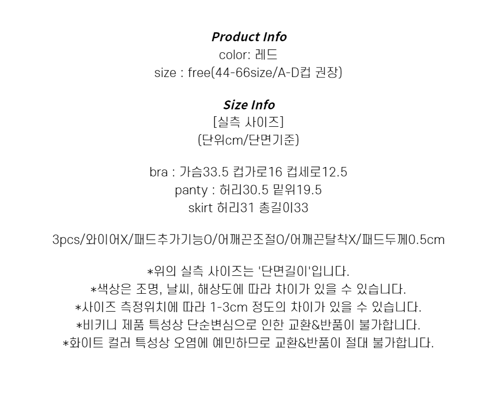 (3pcs) 레드 셔링 홀터넥 시스루 스커트 비키니