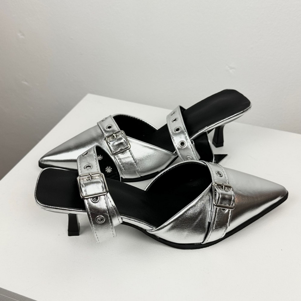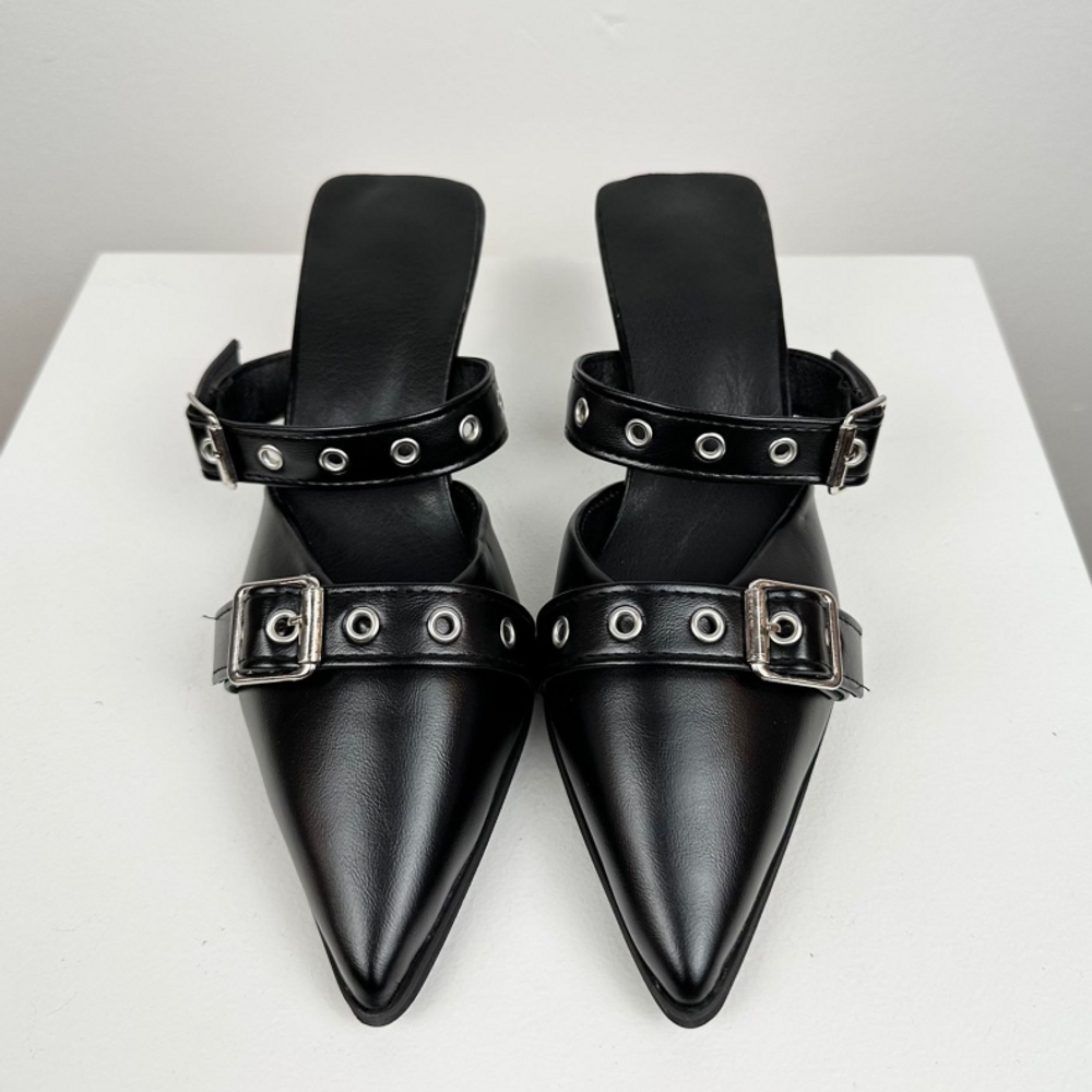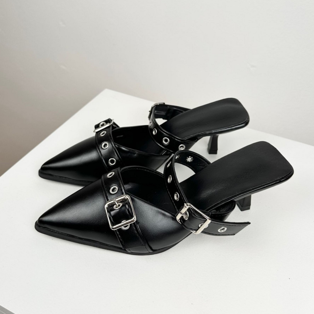 y2k 버클 스트랩 스틸레토 뮬힐 (2color)
