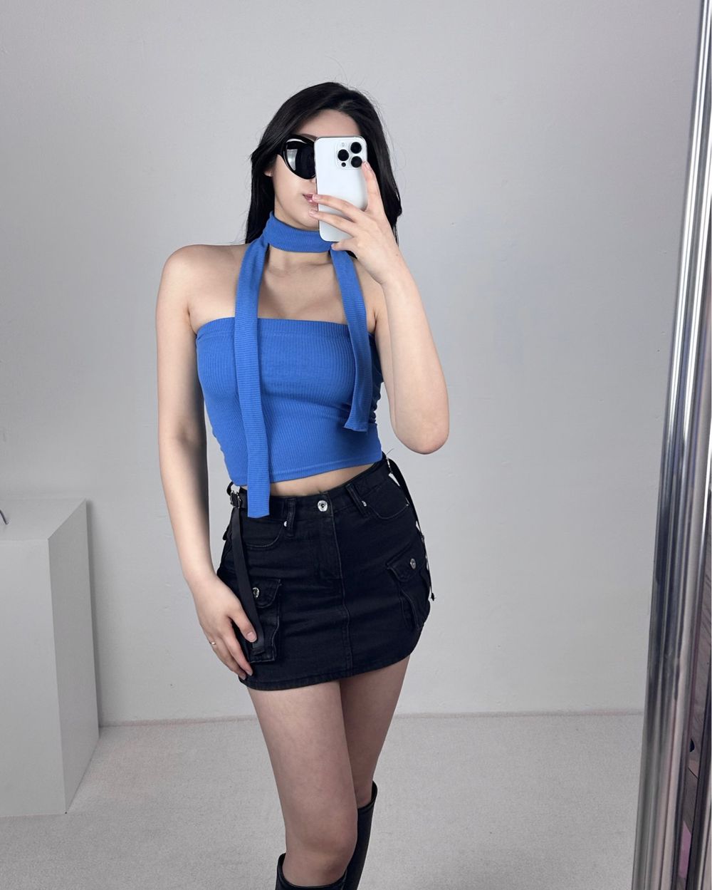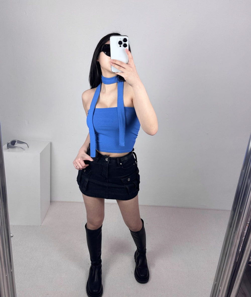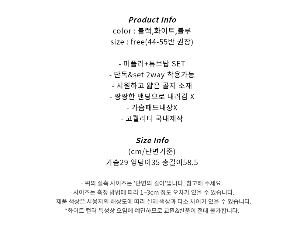 머플러 골지 크롭 튜브탑 set (3color)