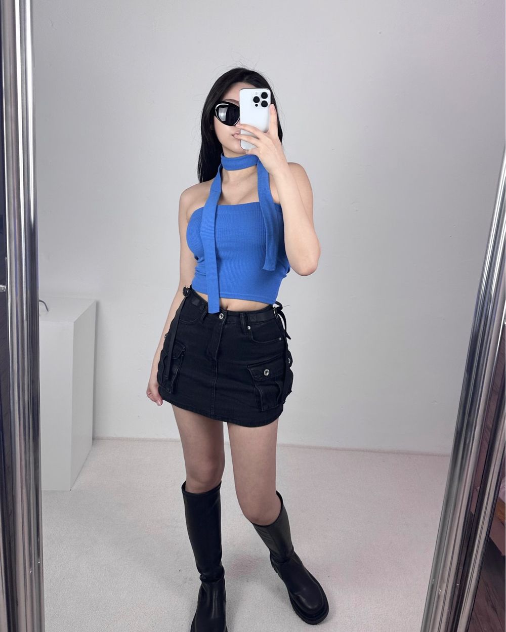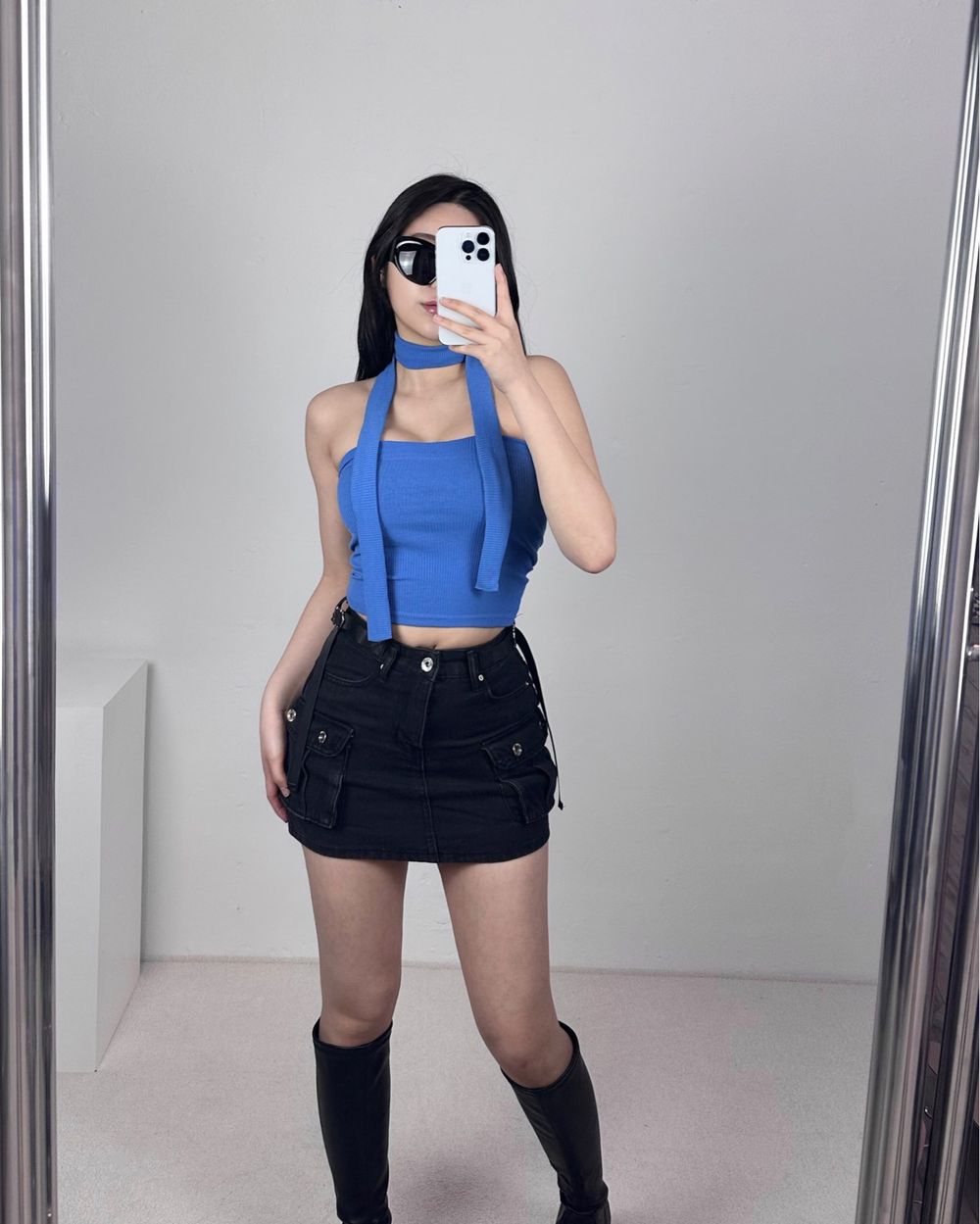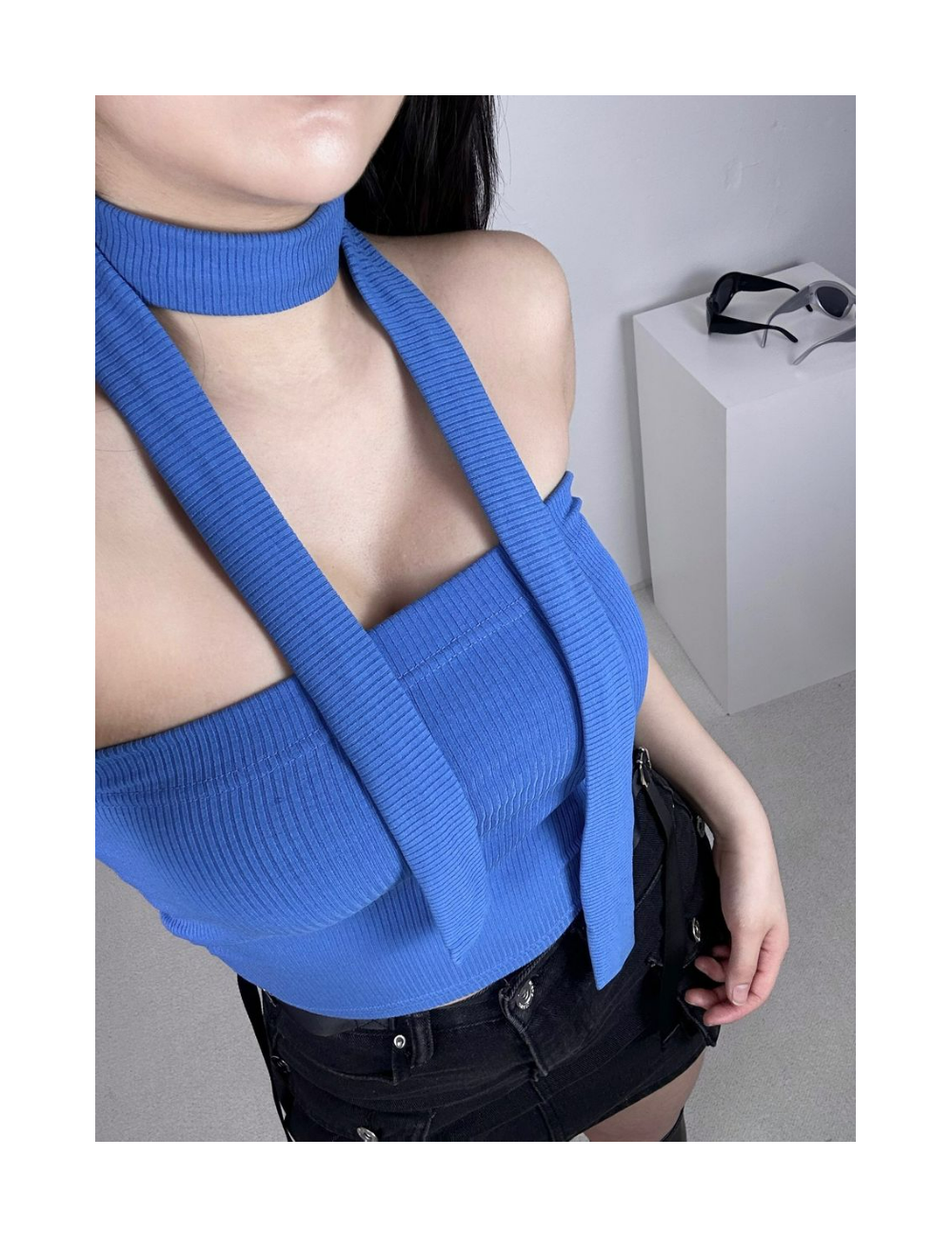 머플러 골지 크롭 튜브탑 set (3color)