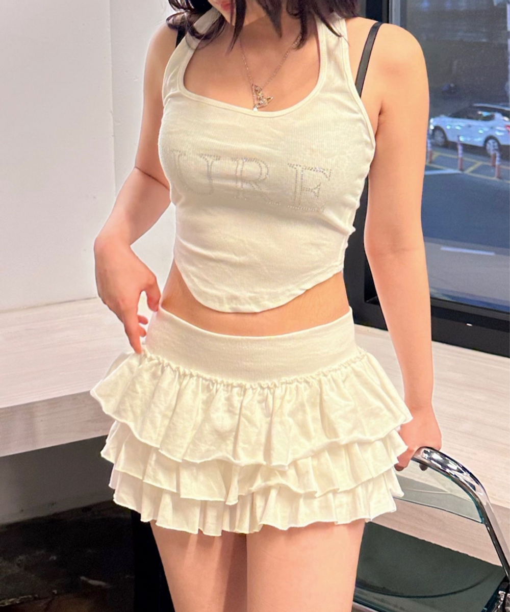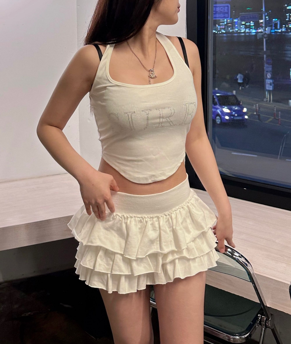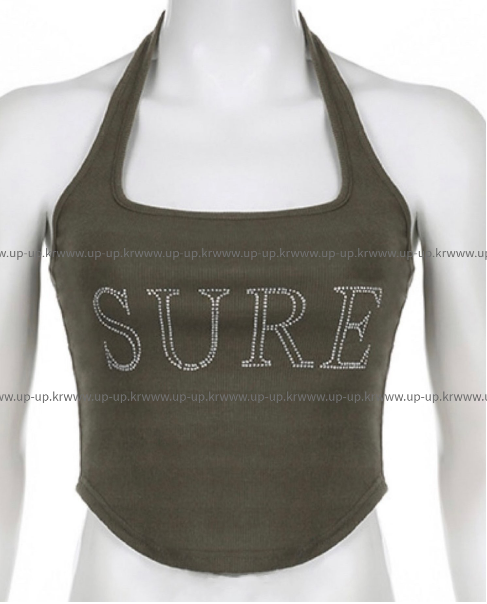 y2k 큐빅 레터링 백리스 홀터넥 크롭 나시 (2color)