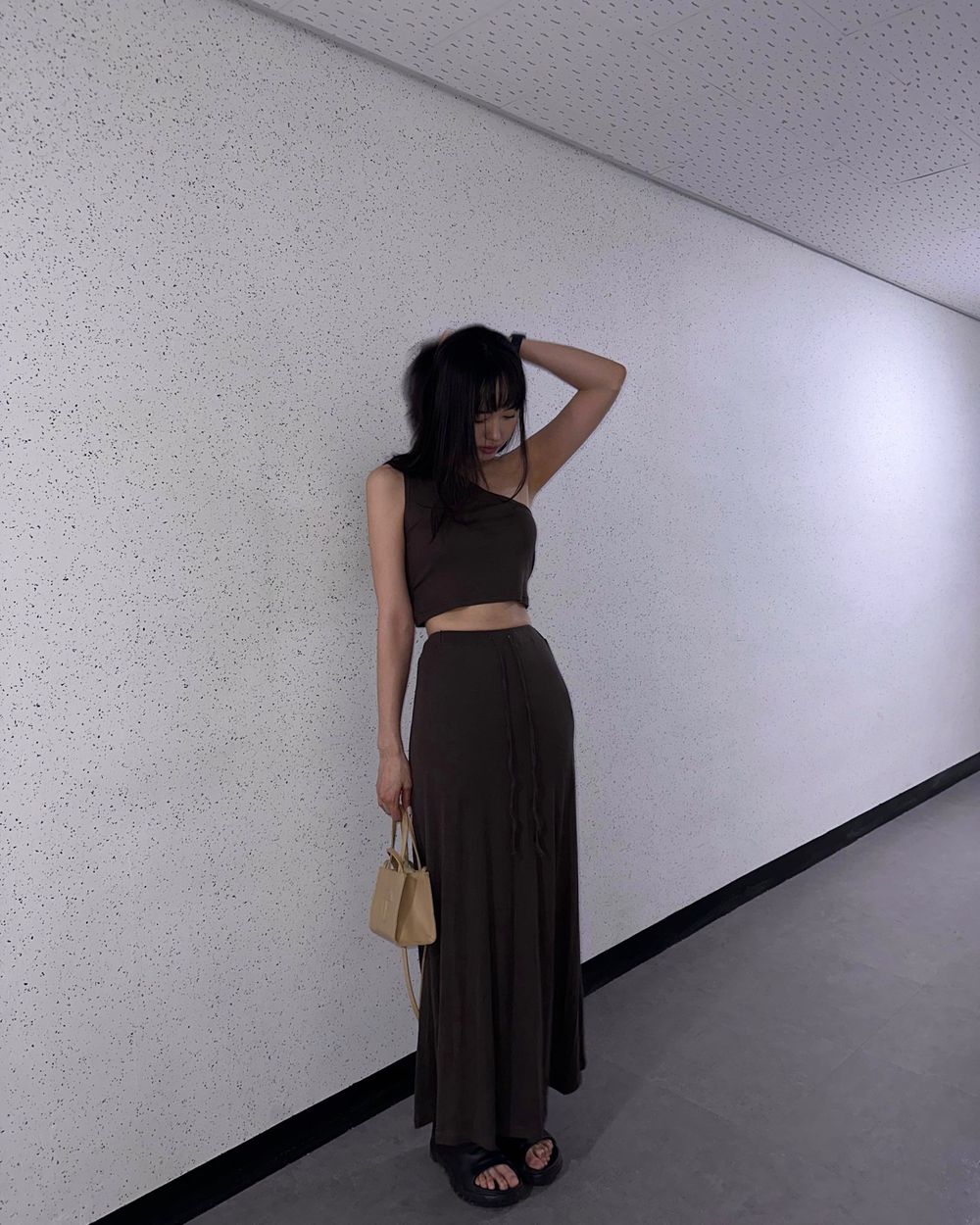 (찰랑소재) 2way 롱 맥시 스트랩 스커트 (2color)