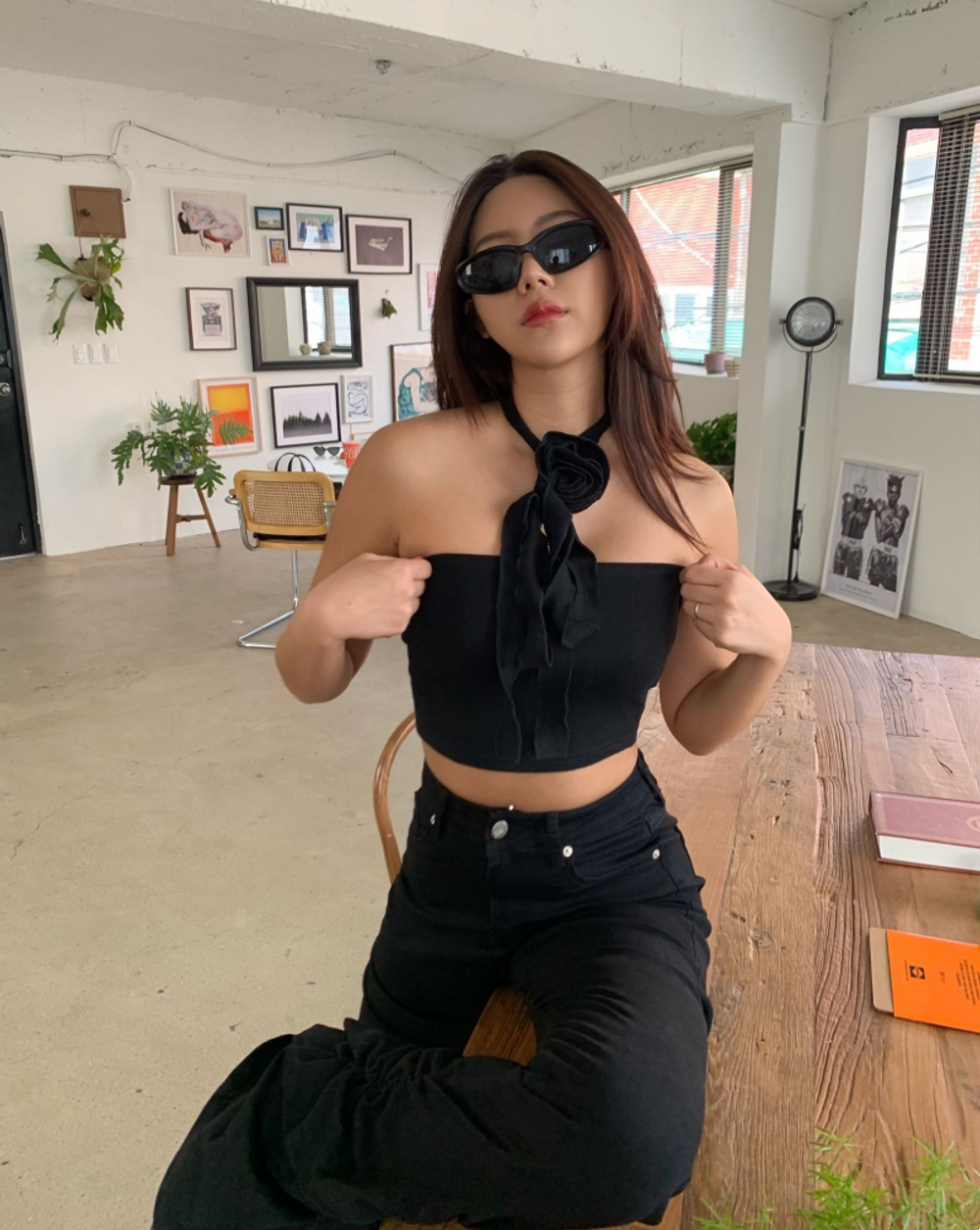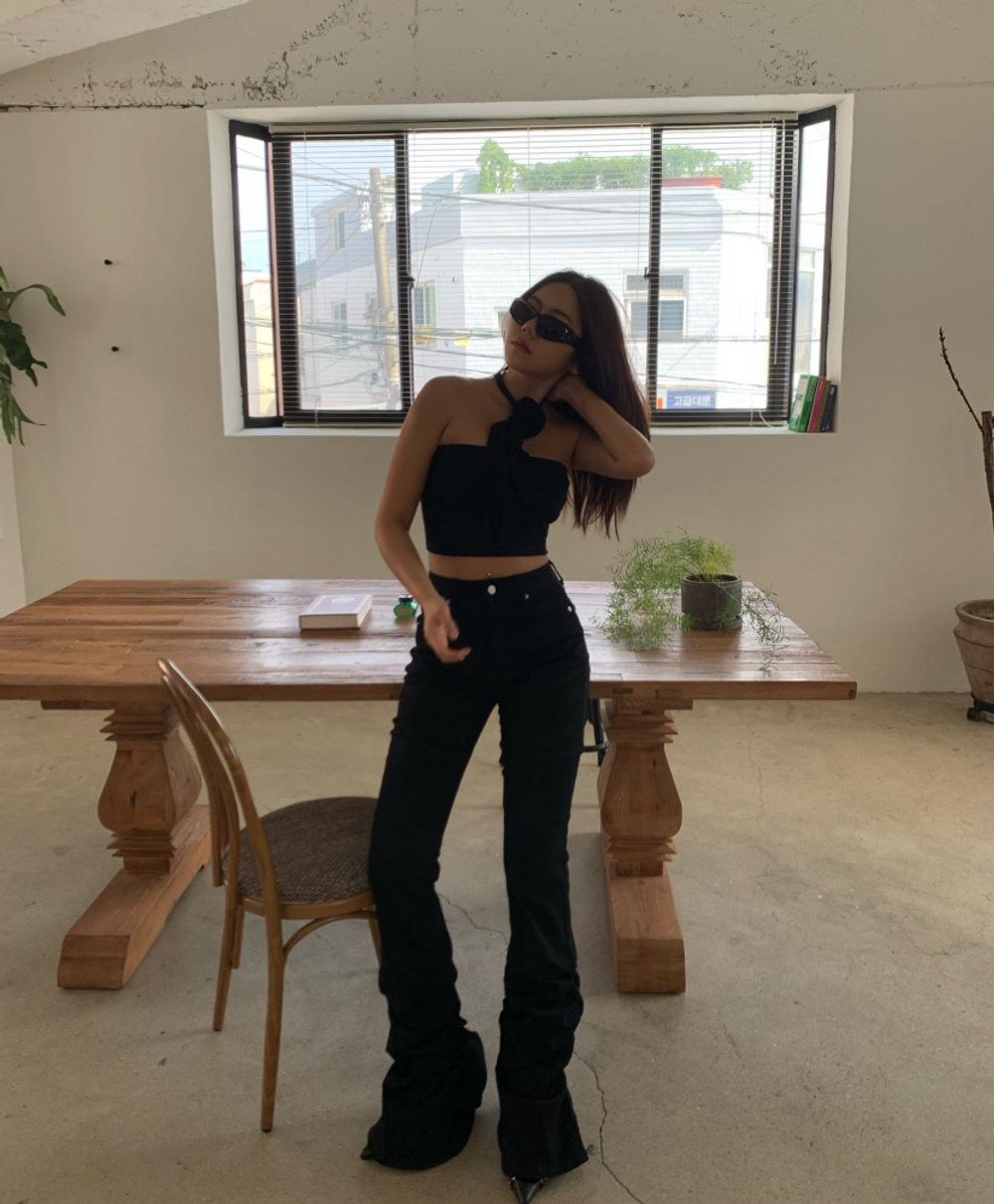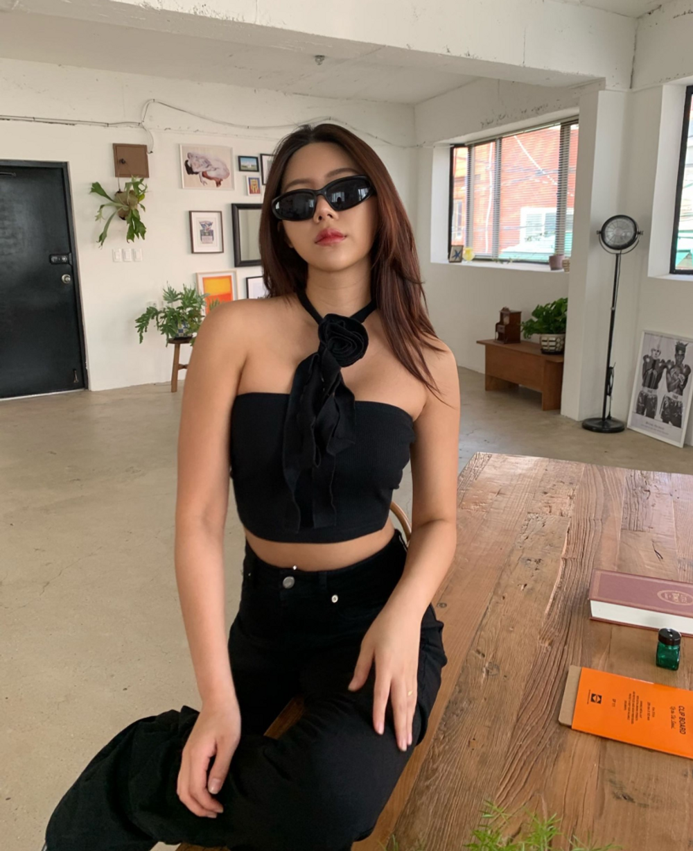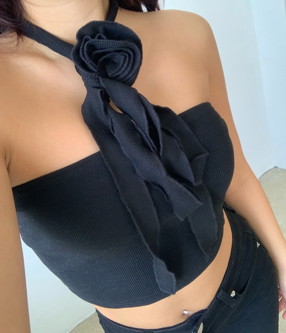 플라워 코사지 초커 크롭탑 (2color)