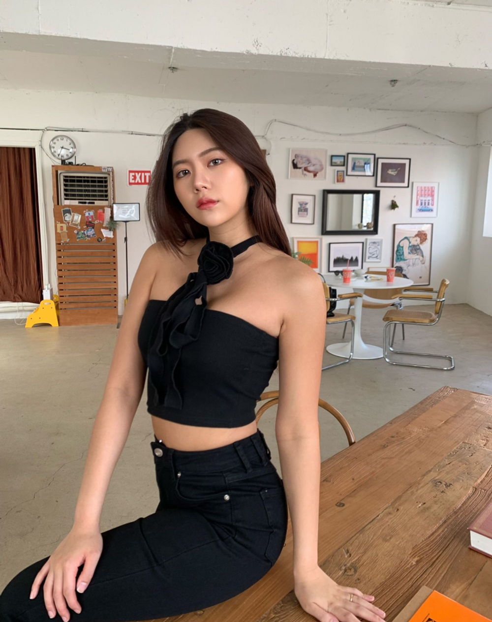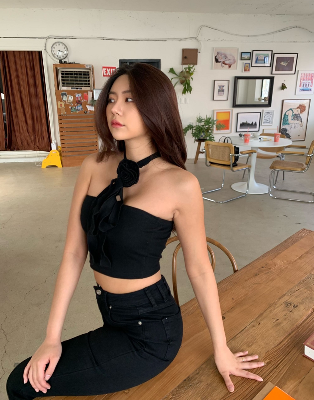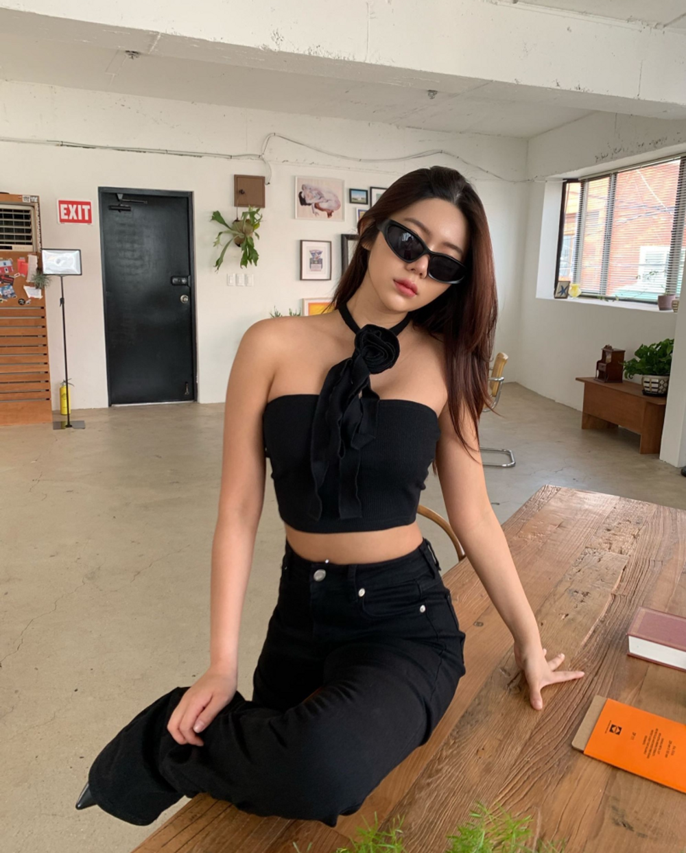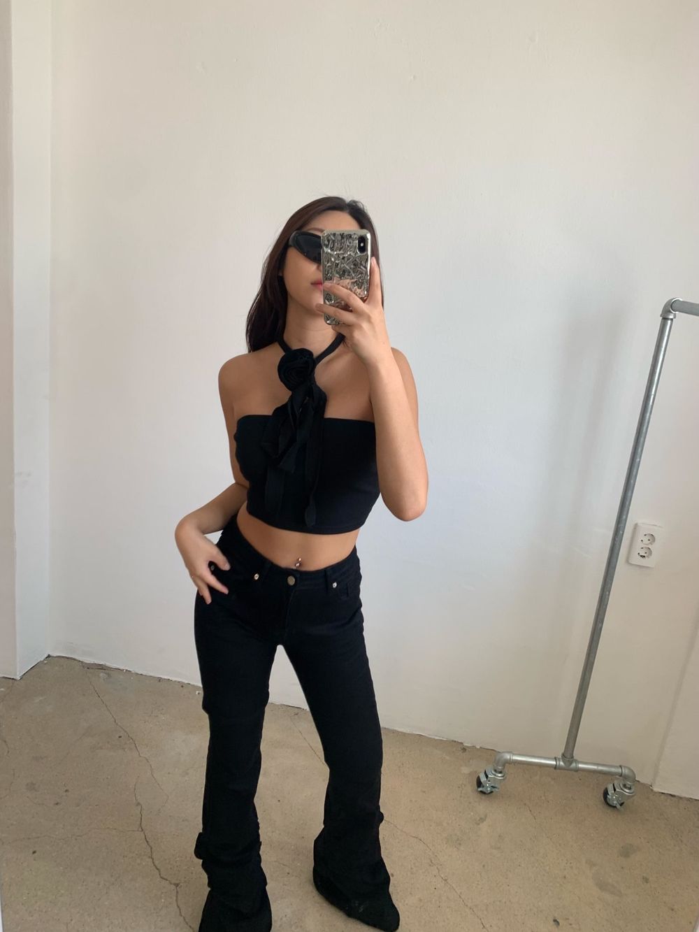 플라워 코사지 초커 크롭탑 (2color)