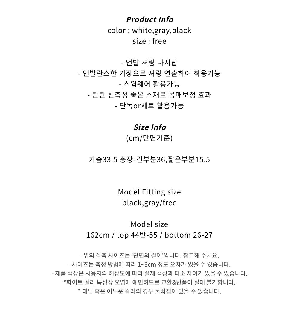y2k 언발 셔링 나시탑 (3color)