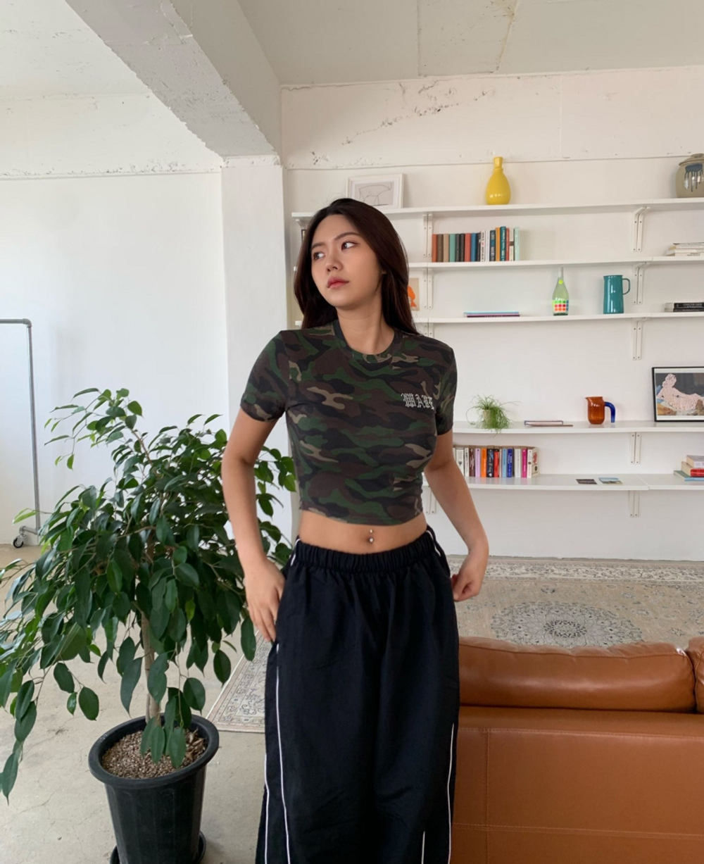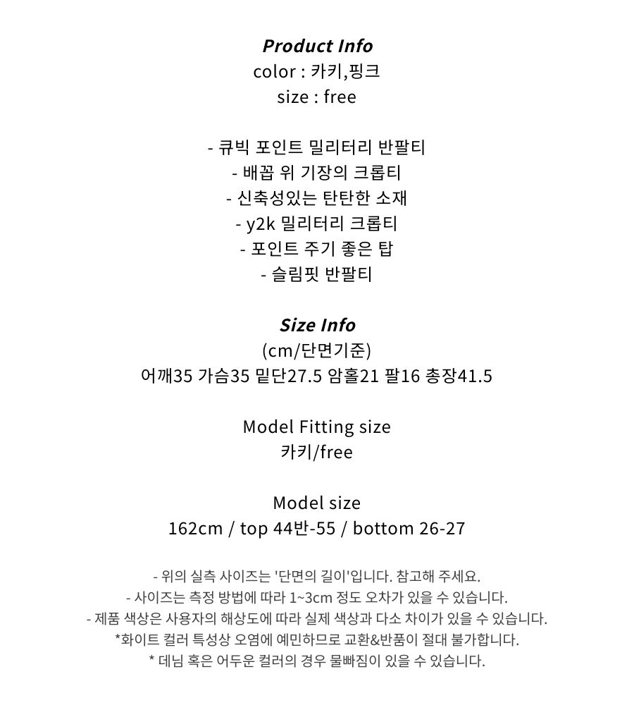 y2k 큐빅 밀리터리 크롭티 (2color)