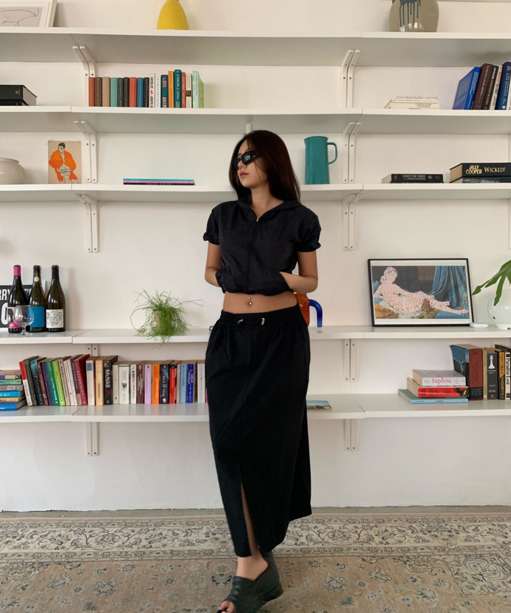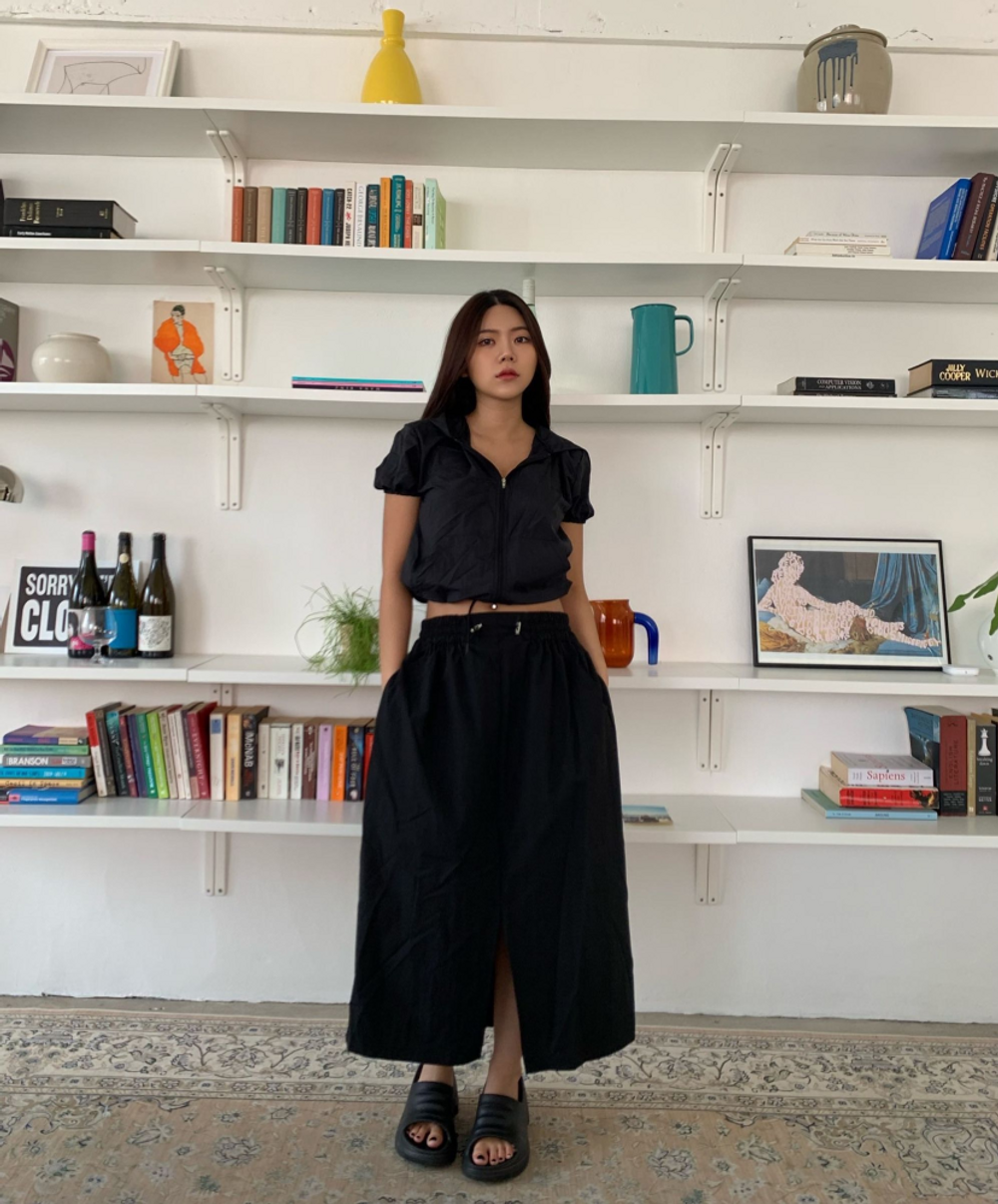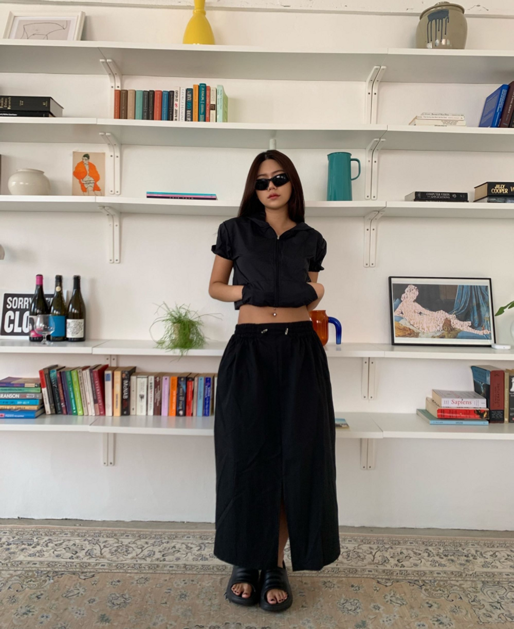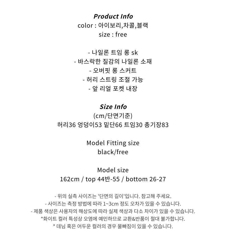 나일론 트임 롱 스커트 (3color)