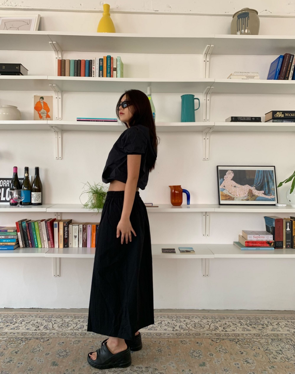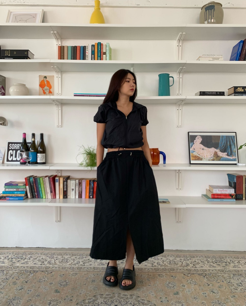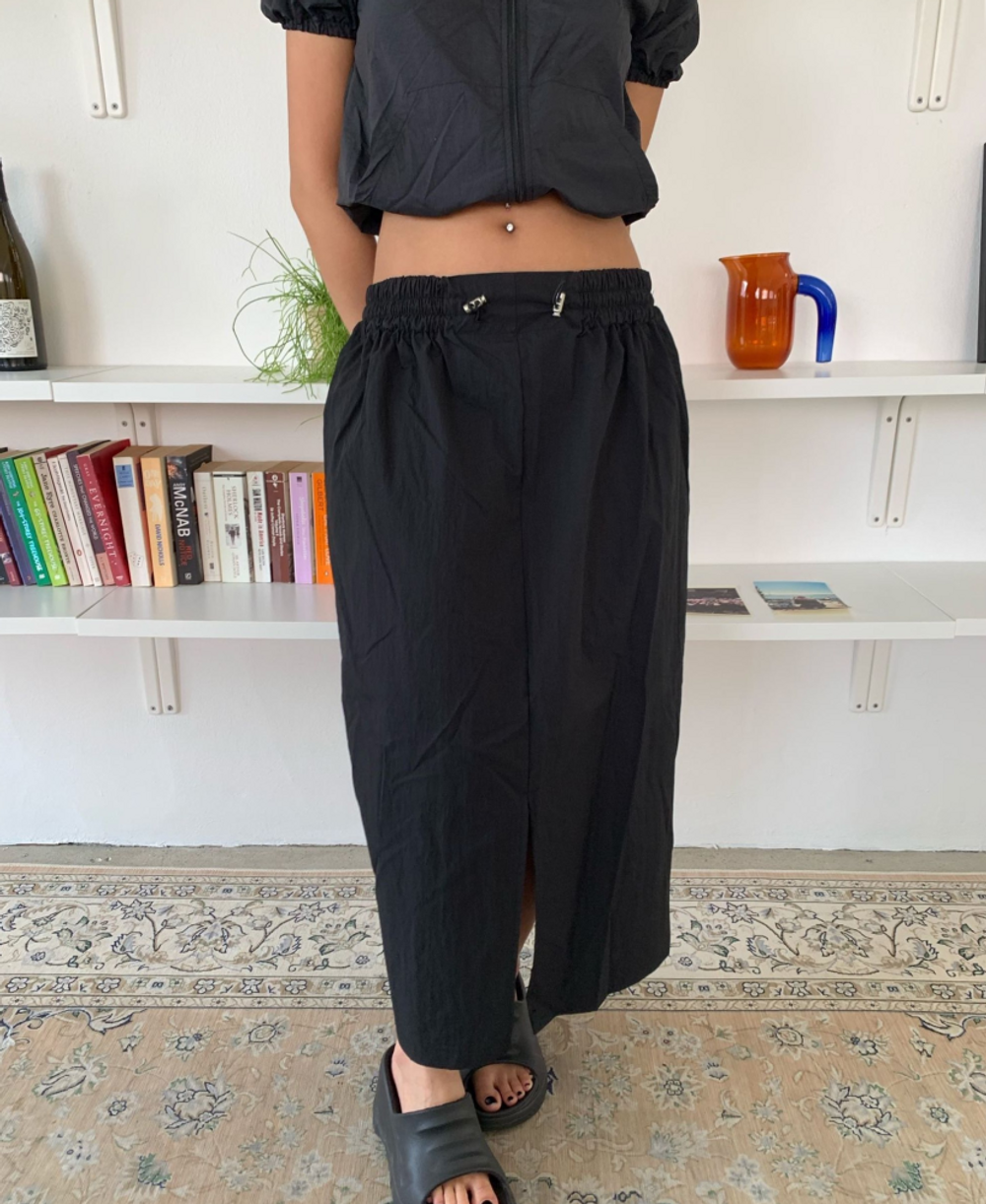 나일론 트임 롱 스커트 (3color)