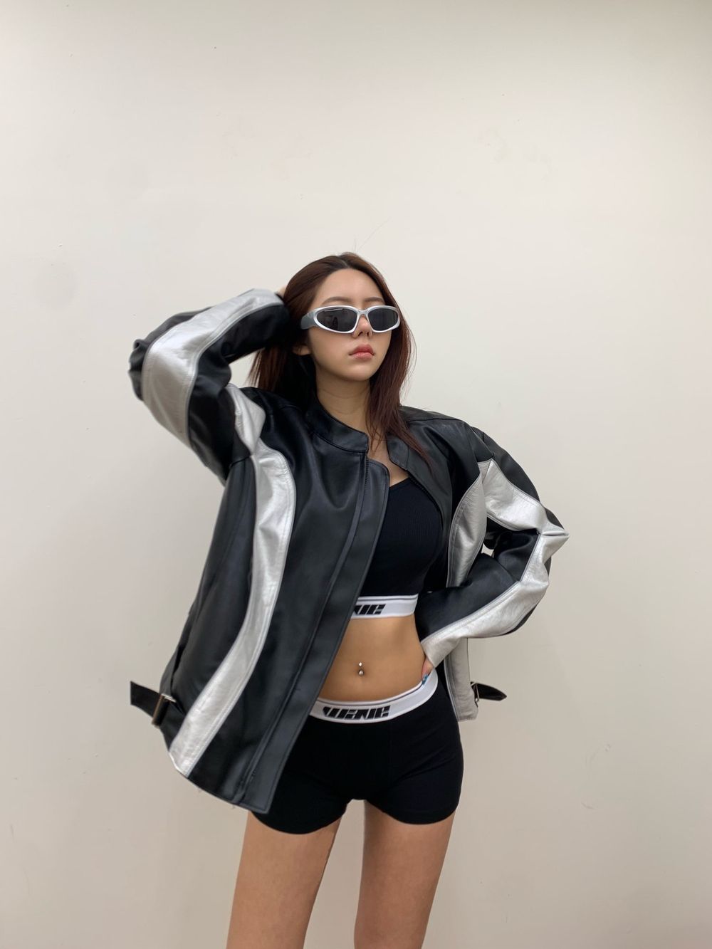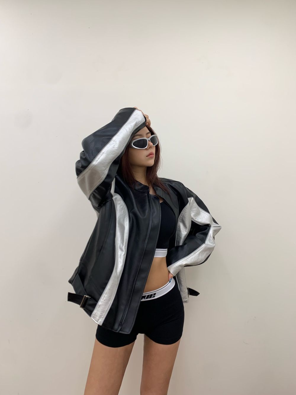 컬러 라인 바이커 자켓 (2color) 가죽자켓 레더자켓