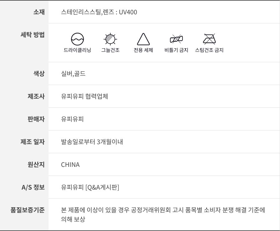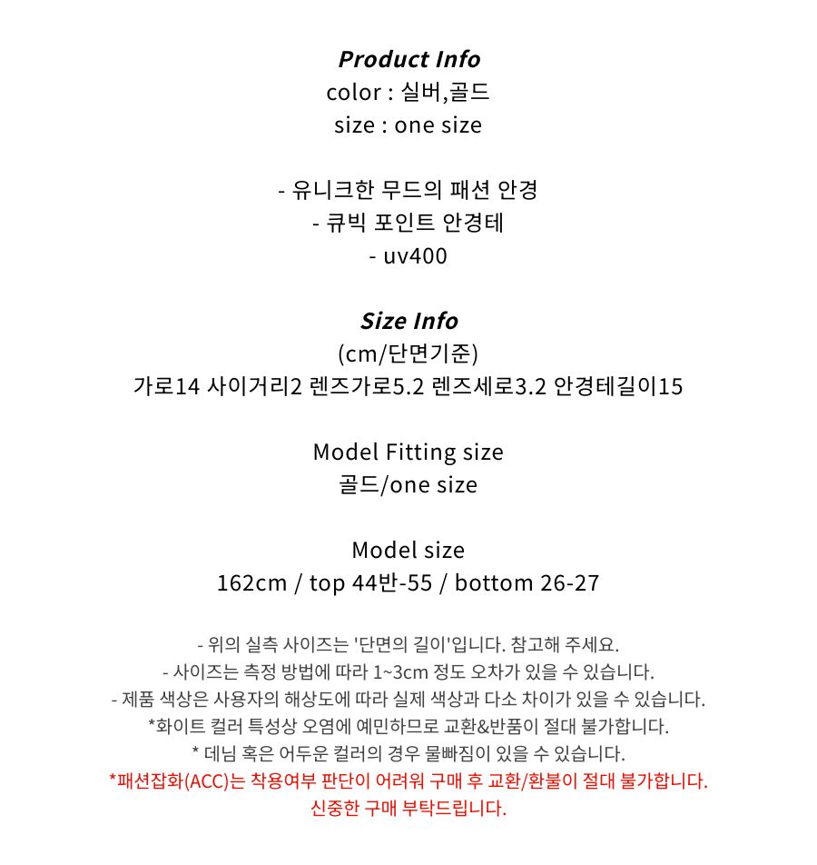 메탈 큐빅 포인트 안경 (2color) 실버 골드 UV400