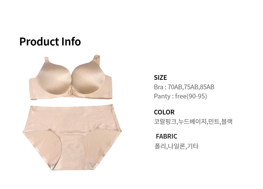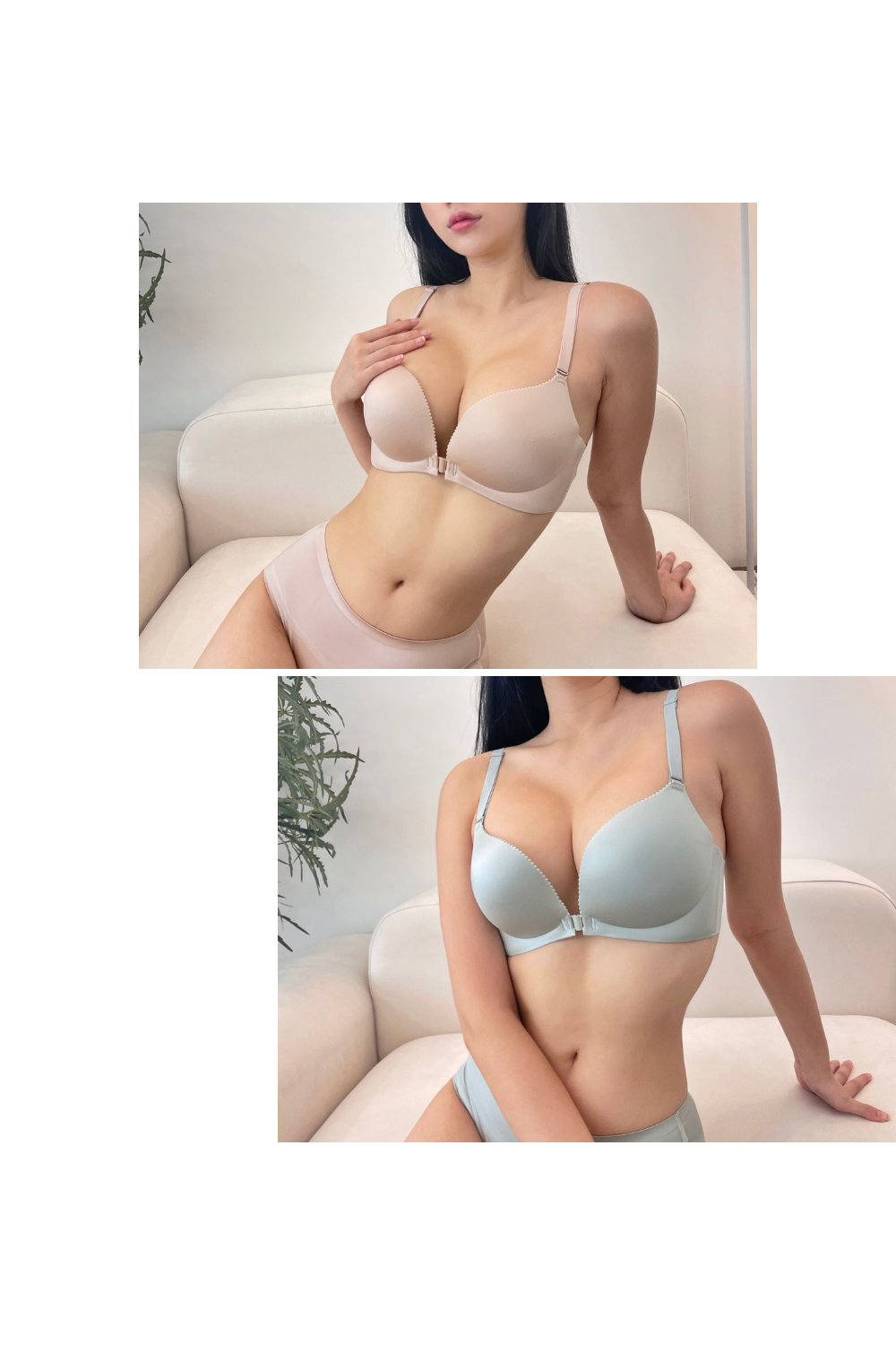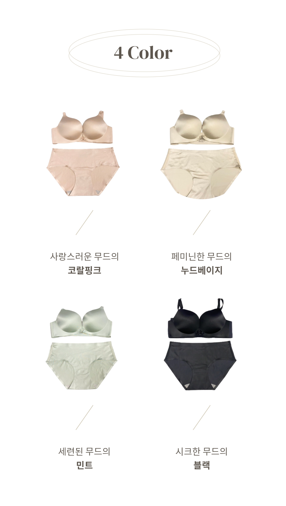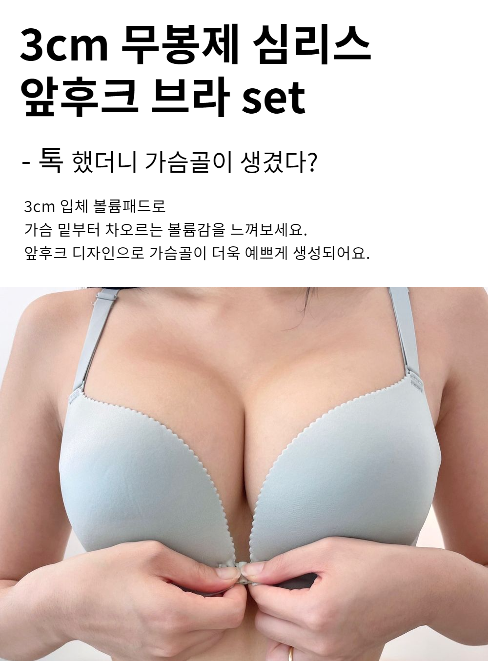 (가슴골보장) 3cm 무봉제 심리스 앞후크 브라 set