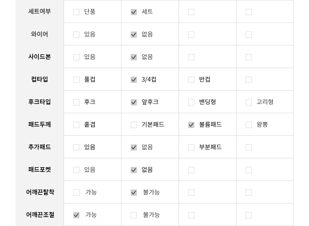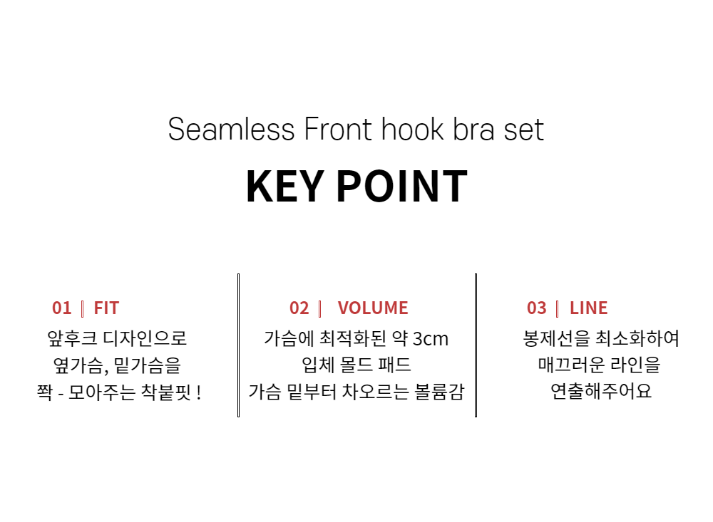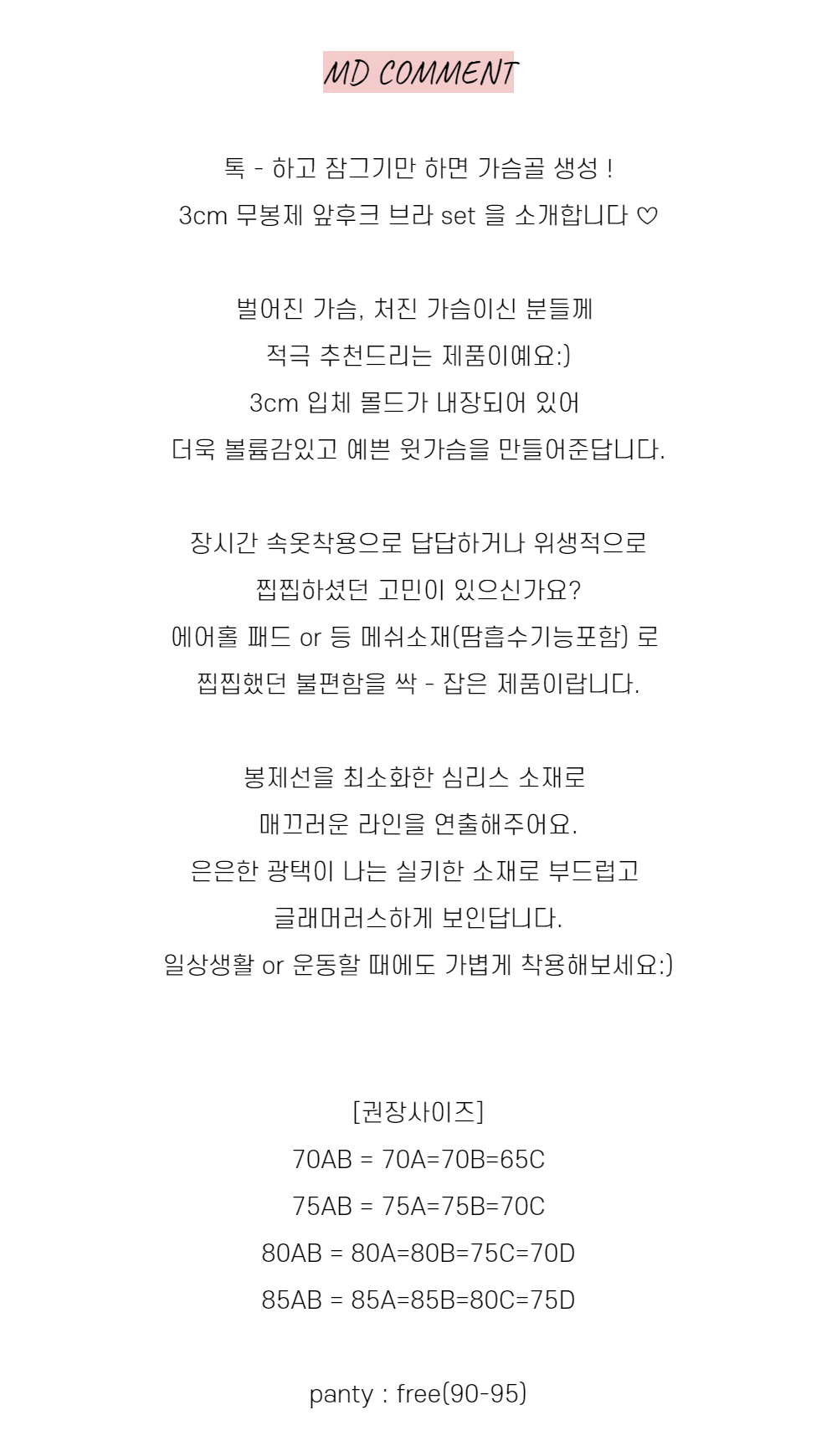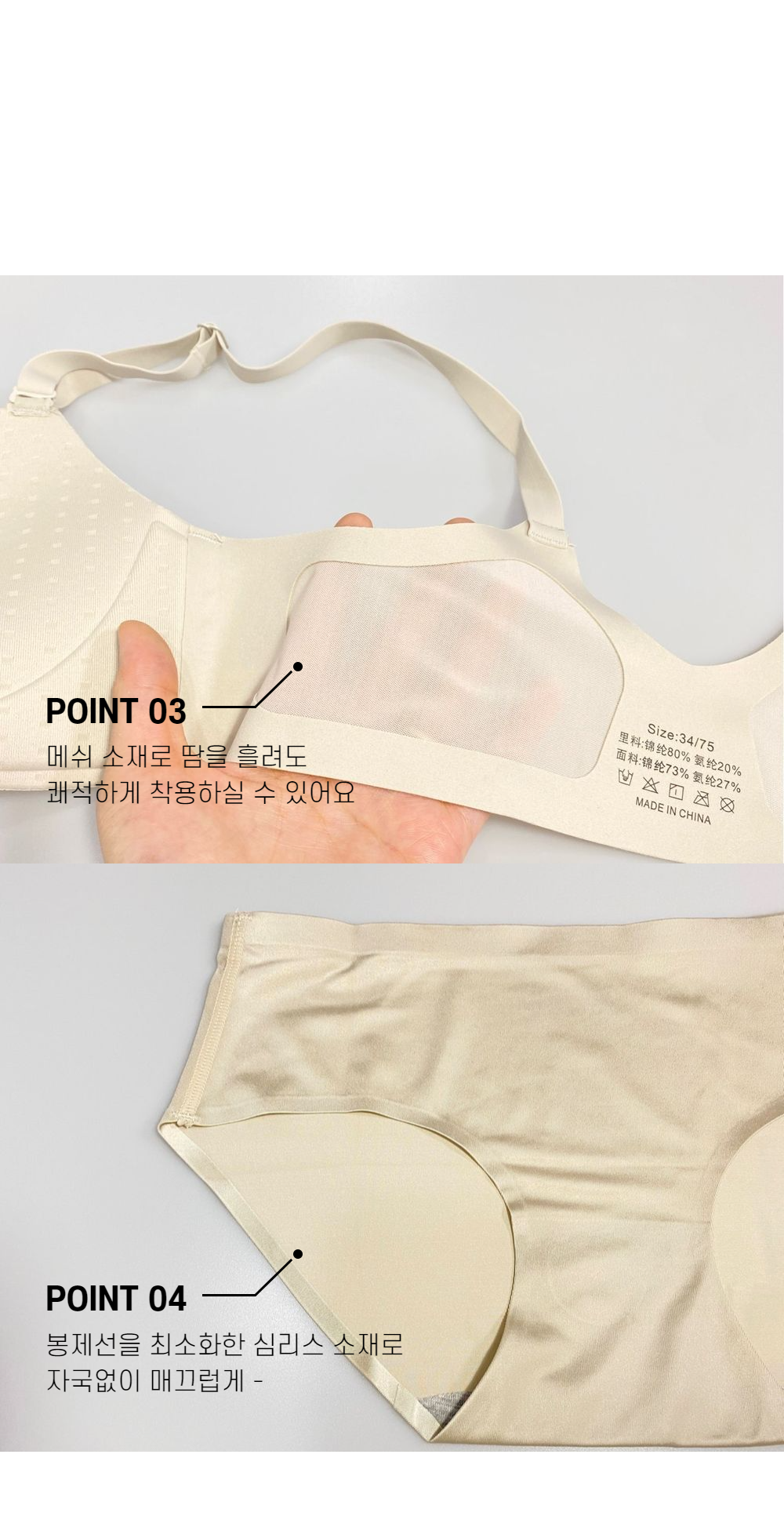 (가슴골보장) 3cm 무봉제 심리스 앞후크 브라 set