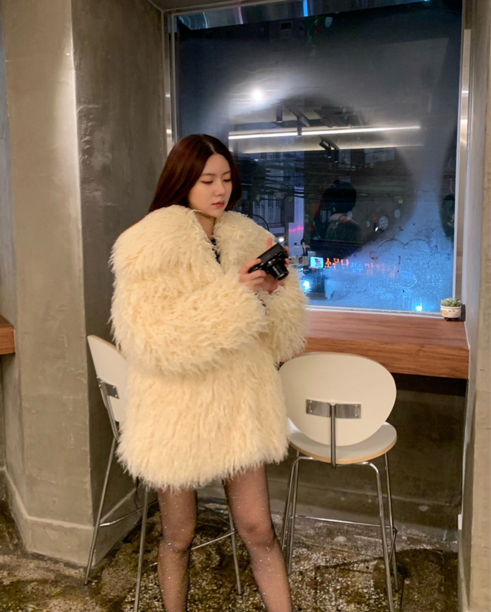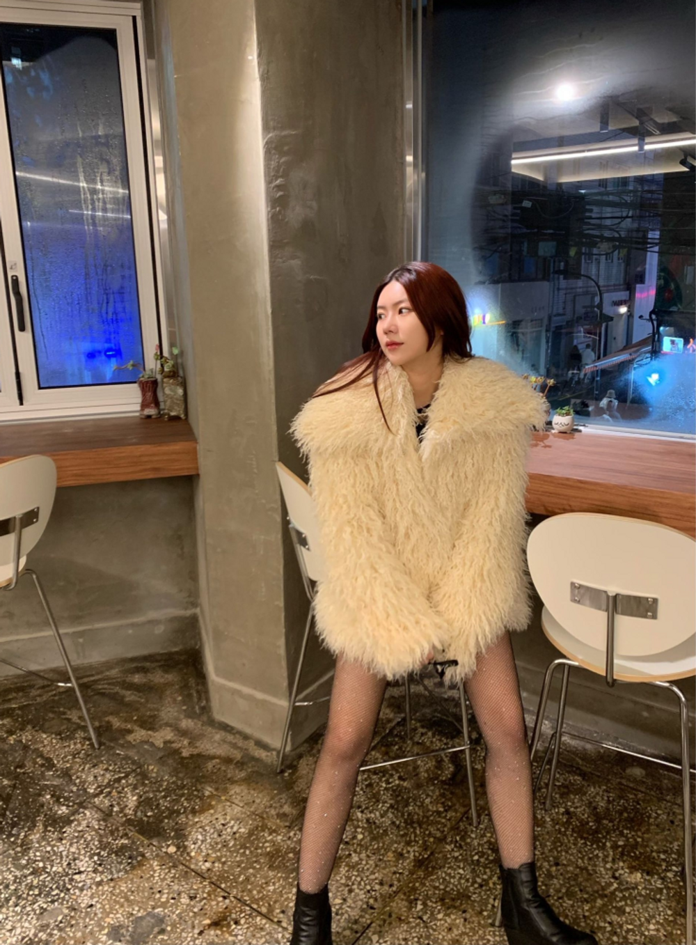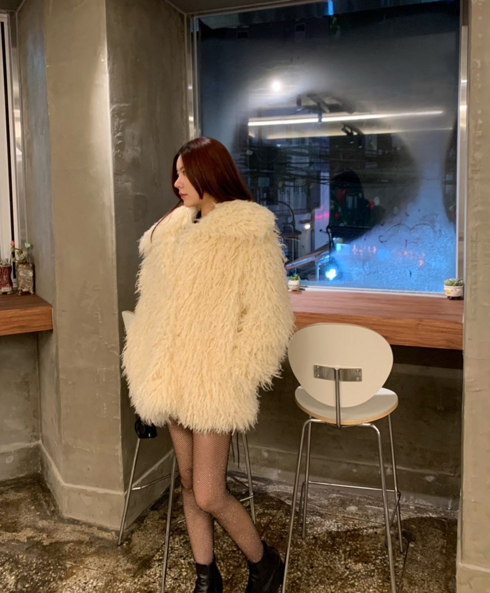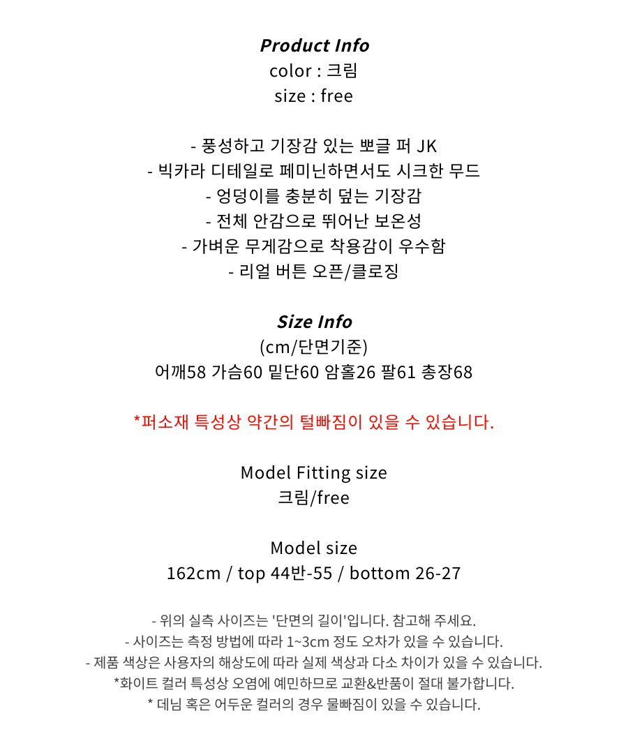 빅카라 뽀글 퍼 JK (크림) / 퍼자켓 퍼코트 연말룩