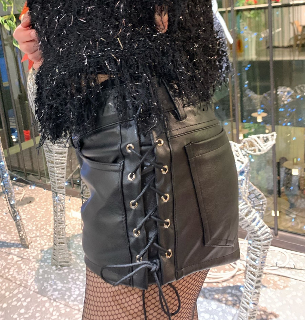 레더 레이스업 아일렛 숏팬츠