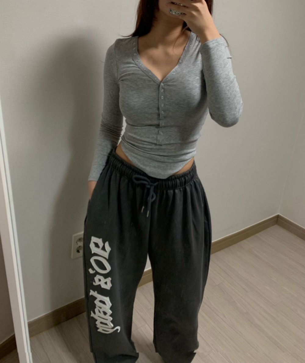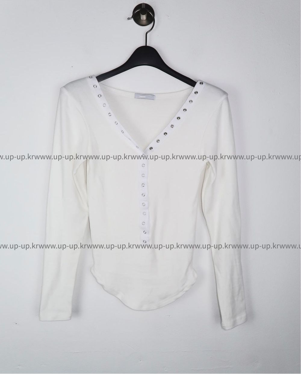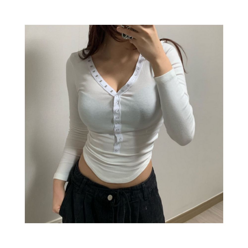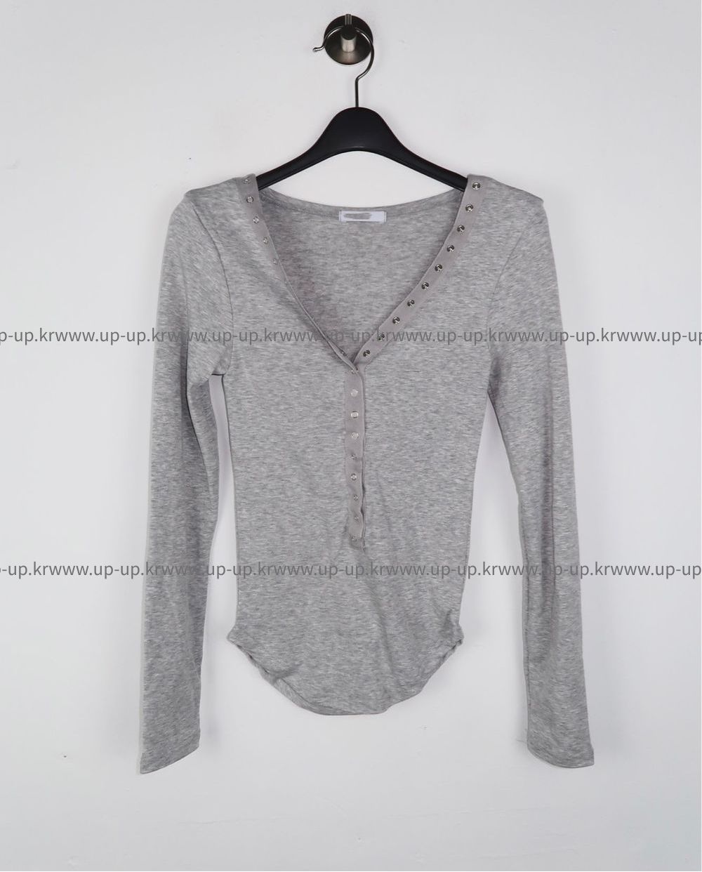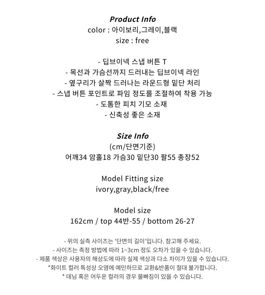 피치 기모 브이넥 스냅 버튼 T (3color)