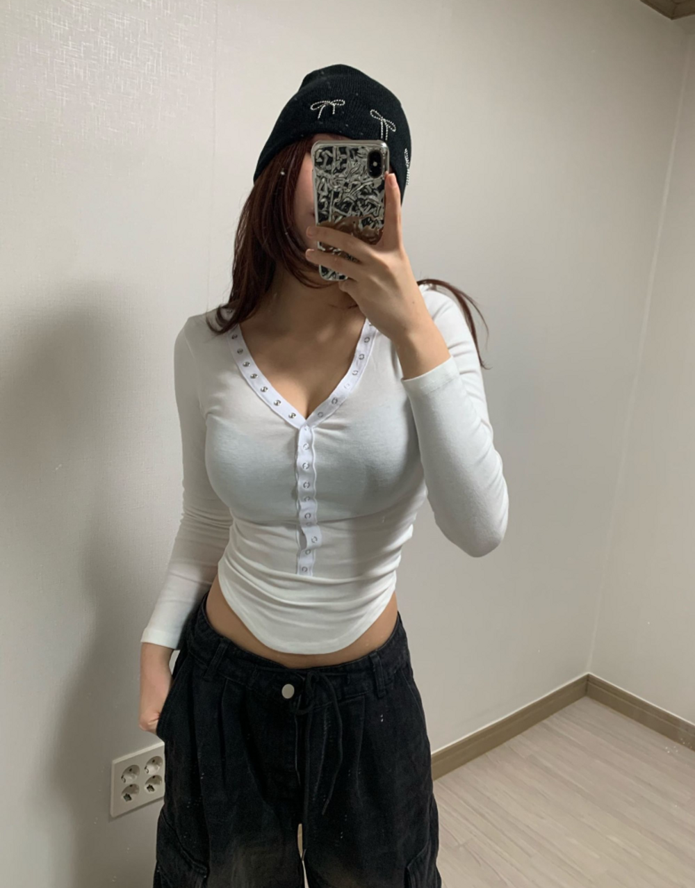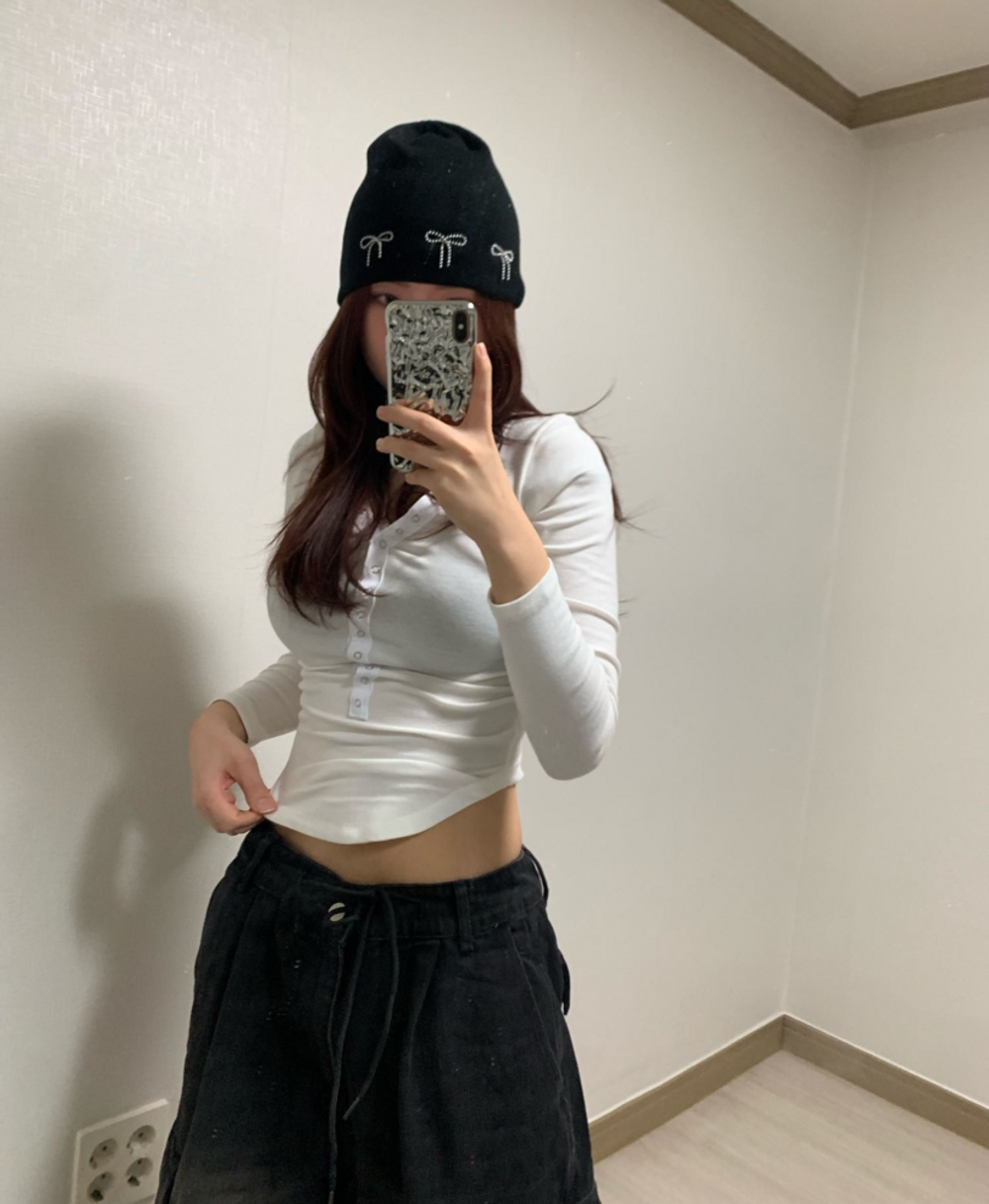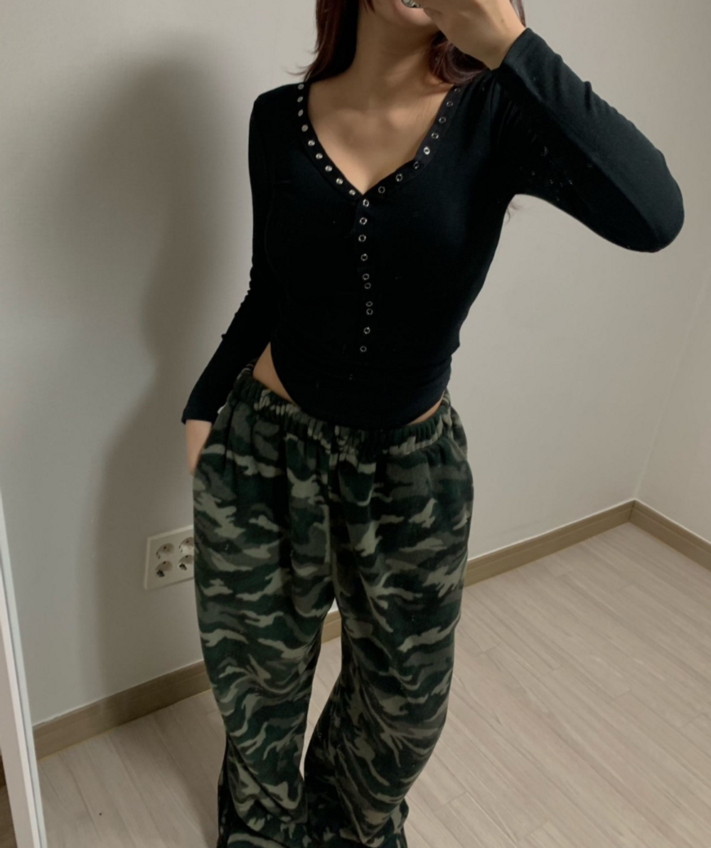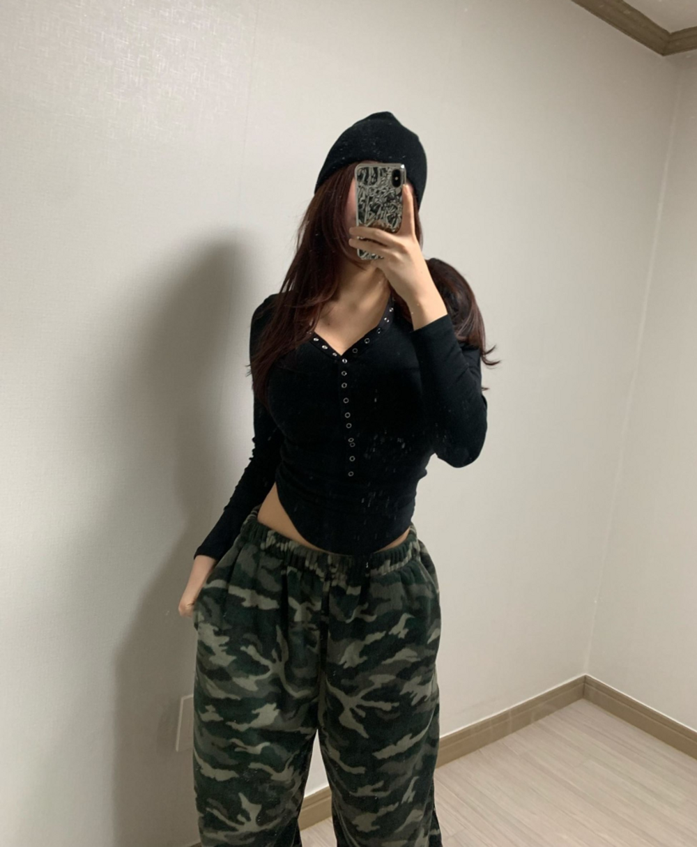 피치 기모 브이넥 스냅 버튼 T (3color)