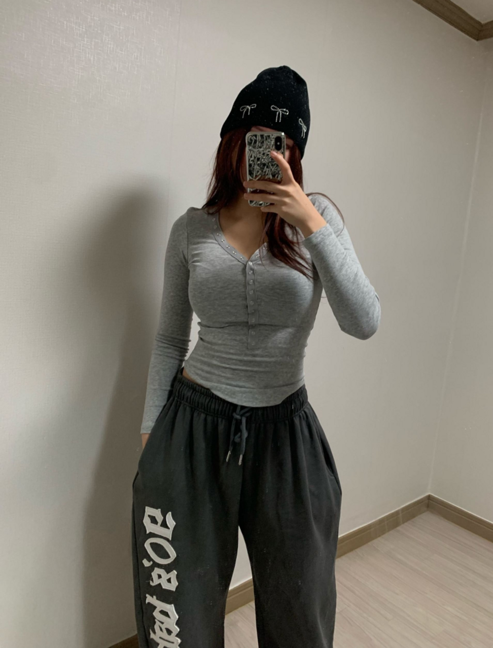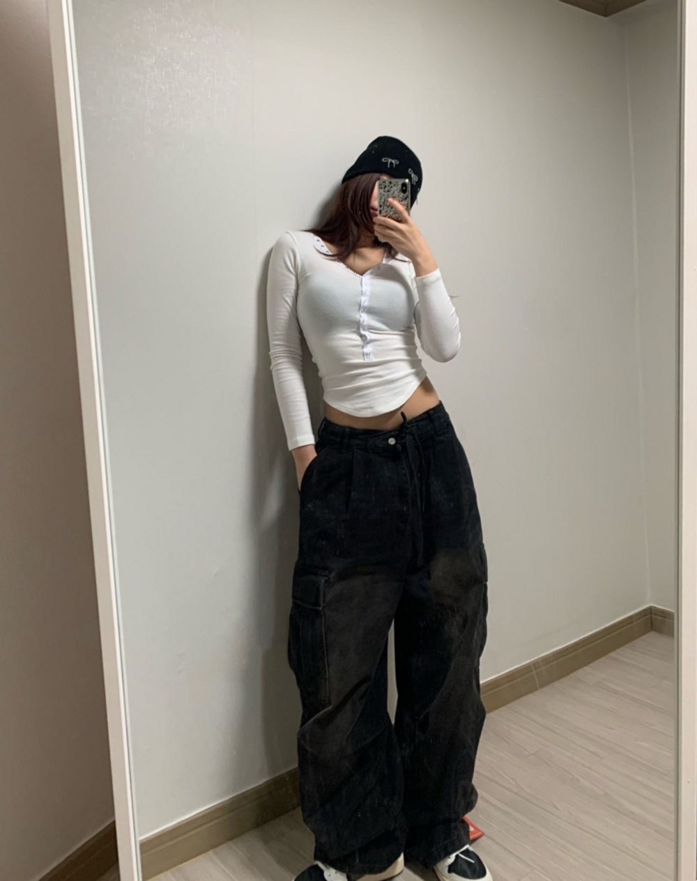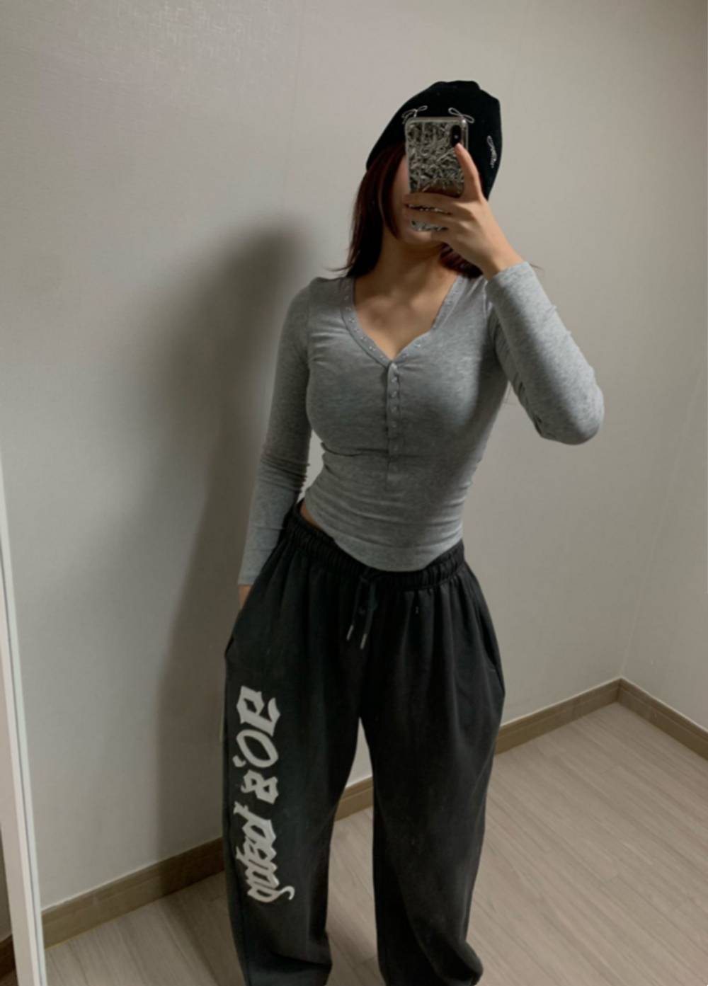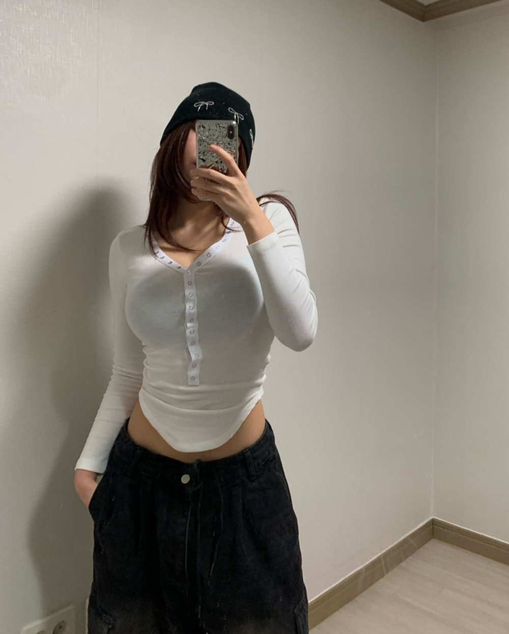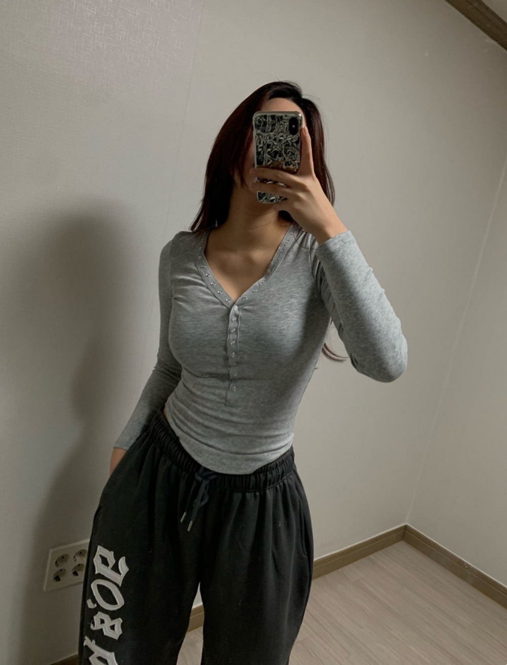 피치 기모 브이넥 스냅 버튼 T (3color)