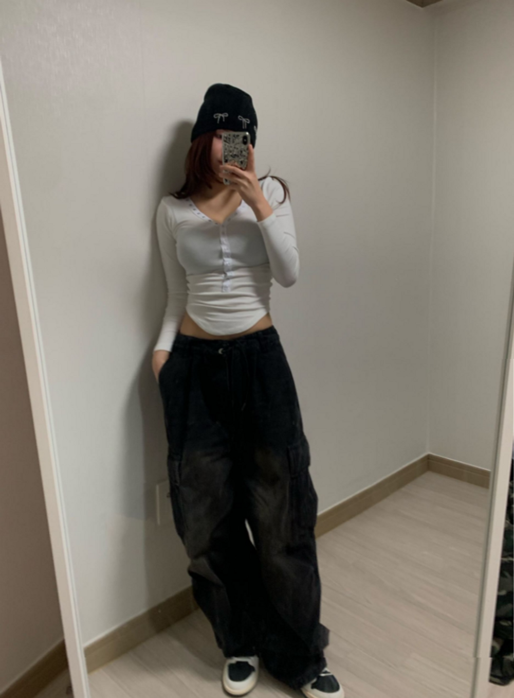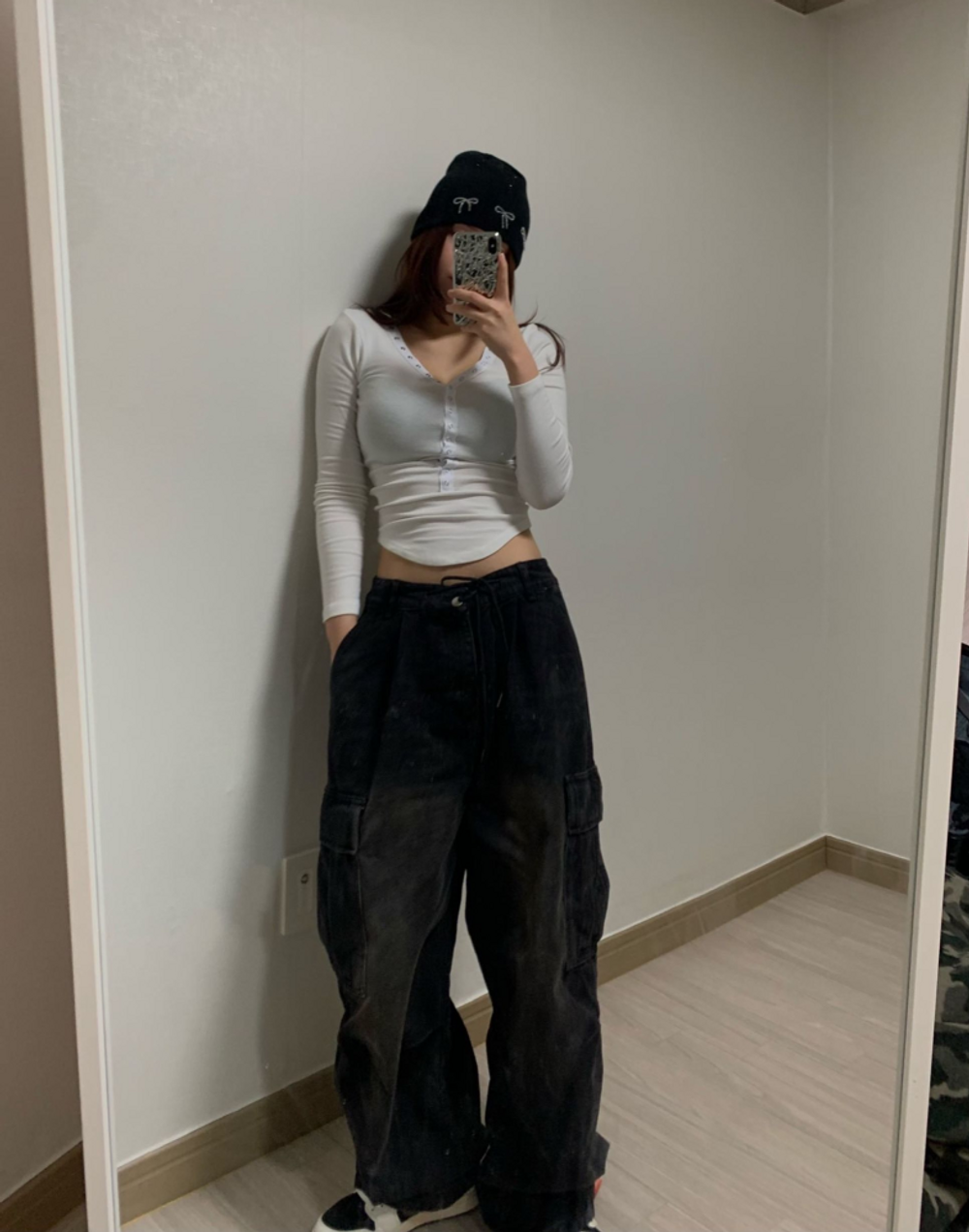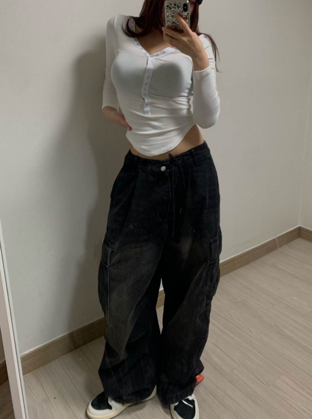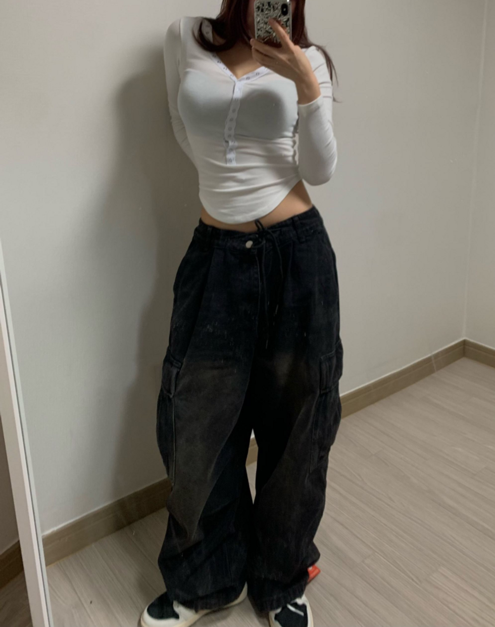 피치 기모 브이넥 스냅 버튼 T (3color)