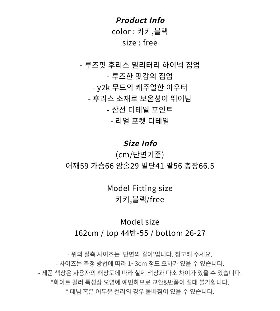 [UNISEX] 밀리터리 후리스 하이넥 집업 (2color)