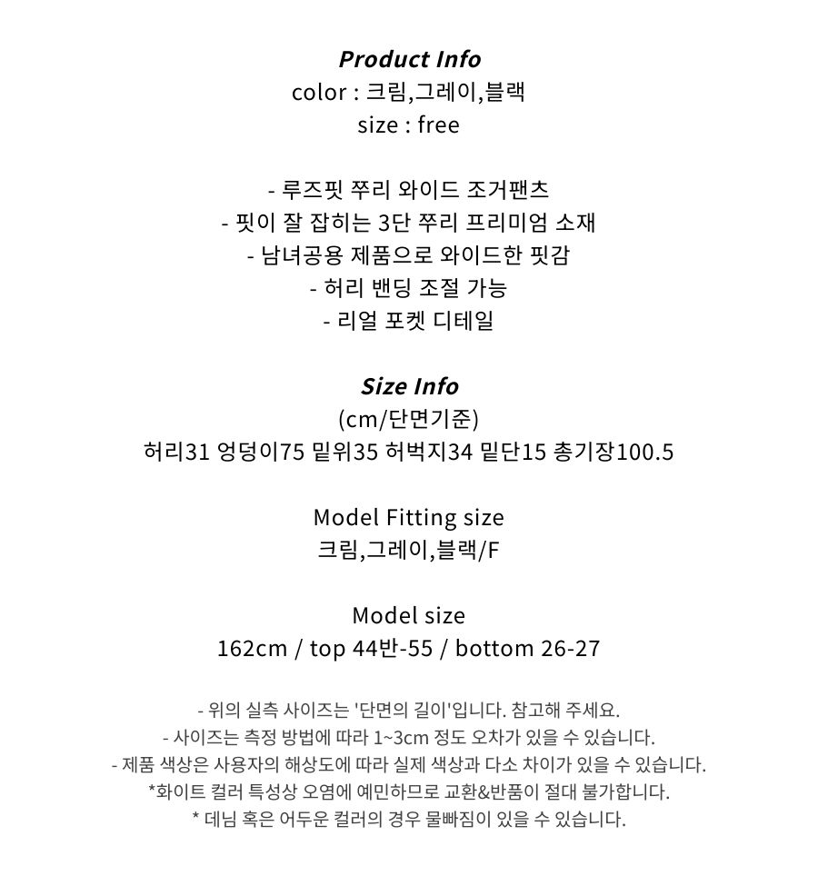 [UNISEX] 프리미엄 3단쭈리 와이드 조거팬츠 (3color) 루즈핏 오버핏 남녀공용 유니섹스 트레이닝