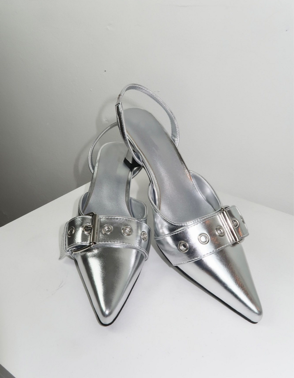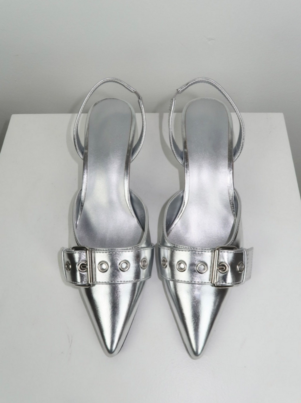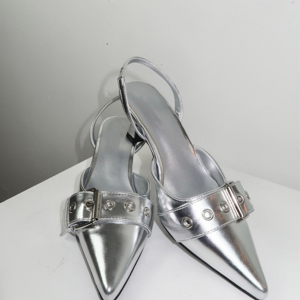 실버 버클 스트랩 스틸레토 힐