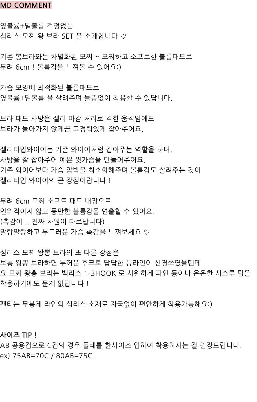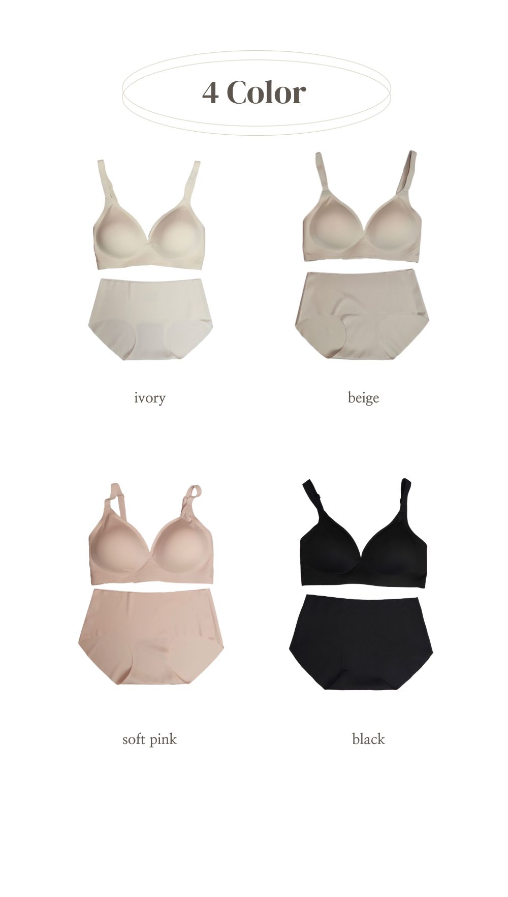 (6cm/옆볼륨+밑볼) 심리스 모찌 왕뽕 브라 세트 (4color)
