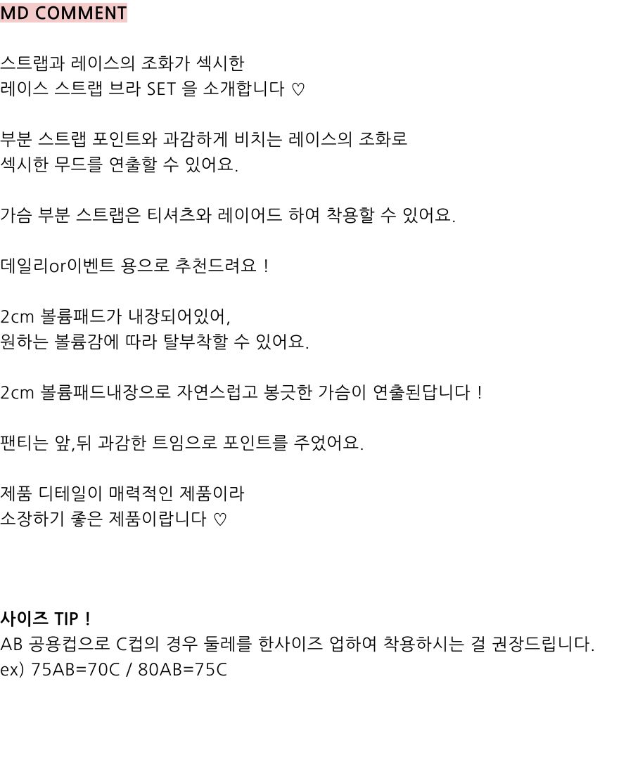 (3cm) 뒷태포인트 섹시 레이스 스트랩 브라 set (3color)