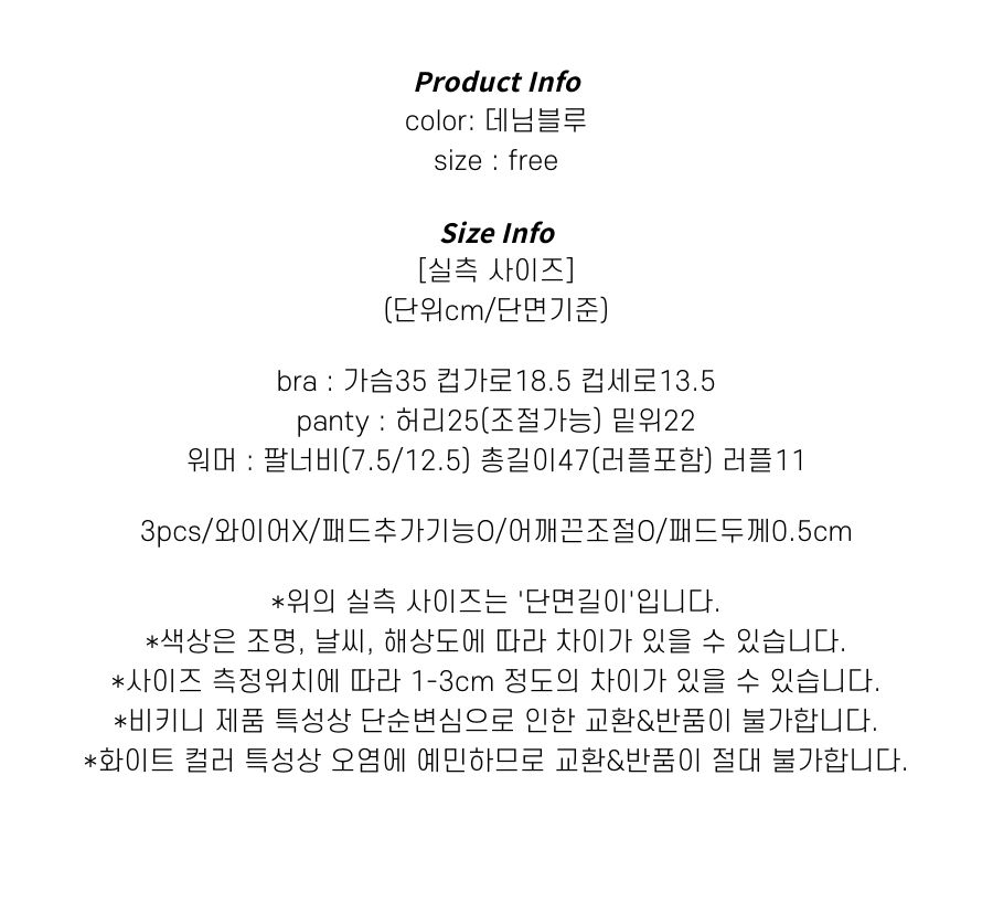 (3pcs) 데님 워머 홀터넥 셔링 비키니