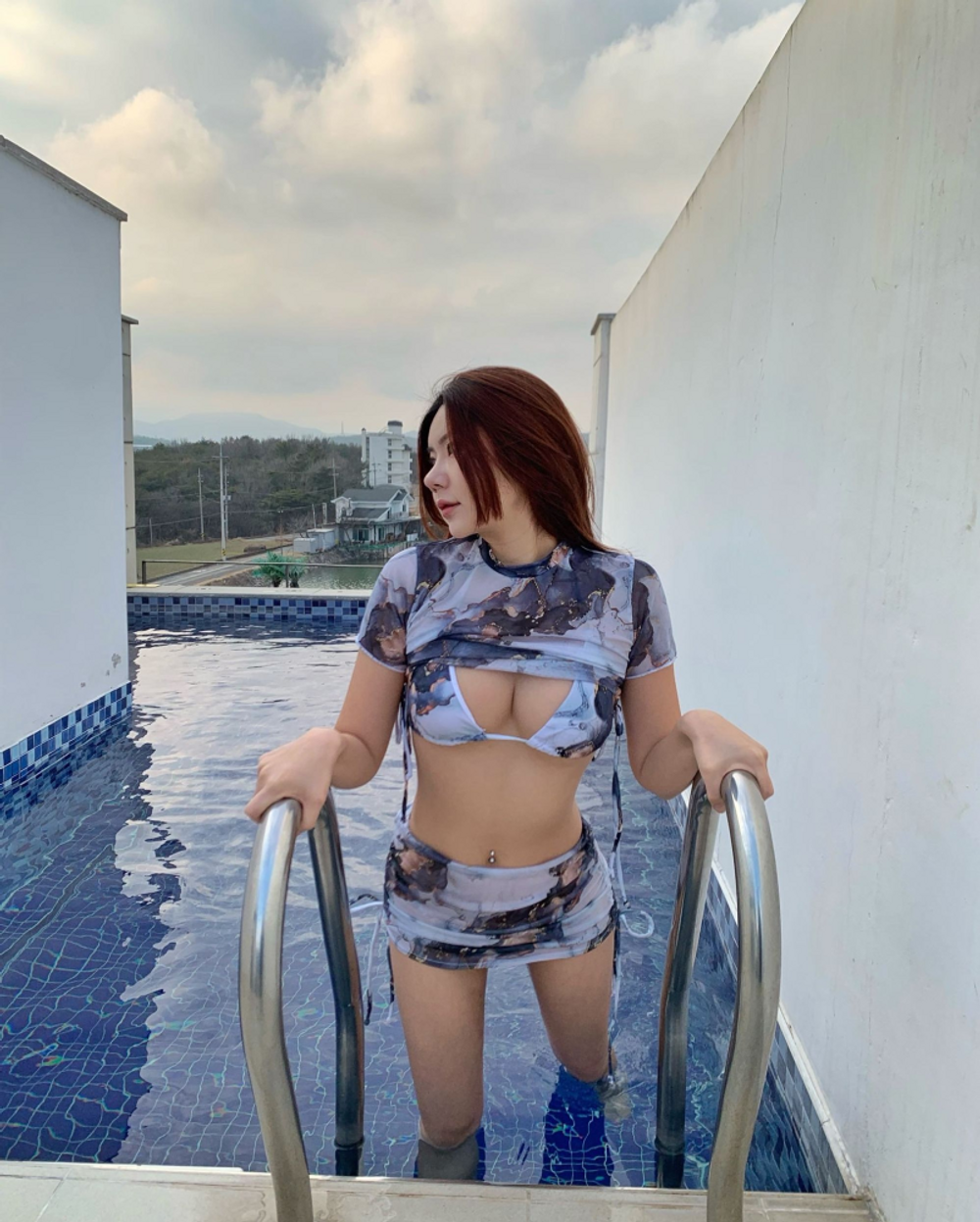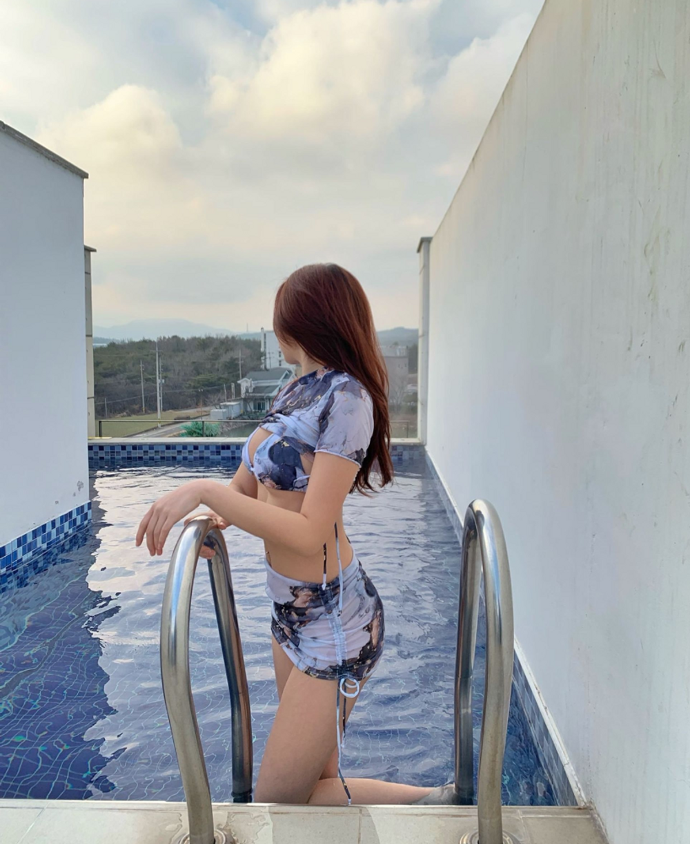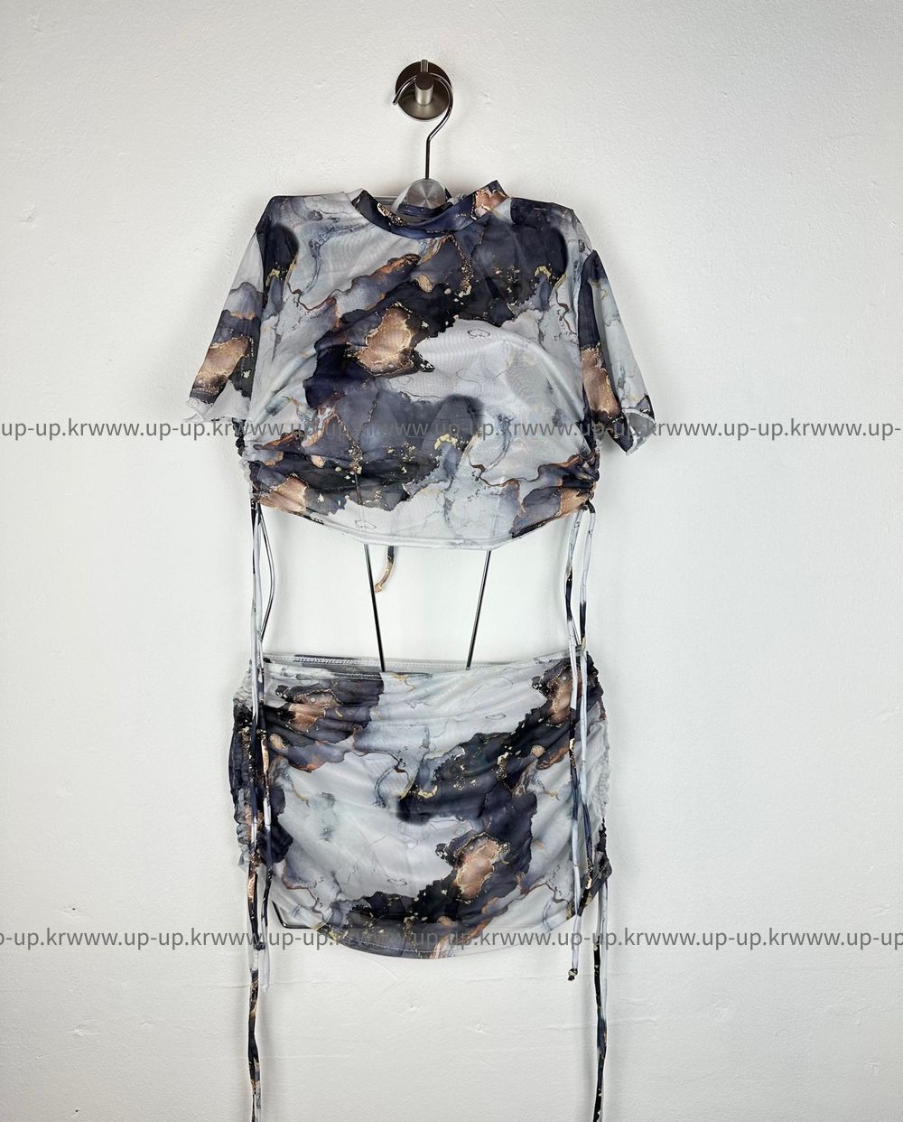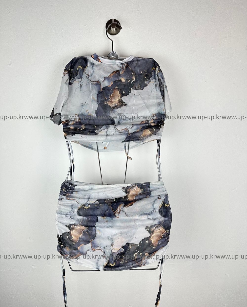 (4pcs) 플래닛 나염 반팔 스커트 비키니
