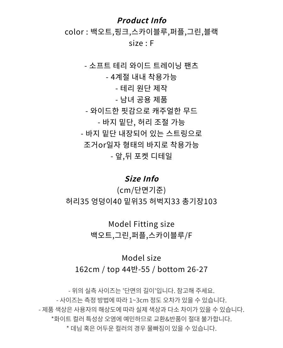 [UNISEX] 소프트 테리 와이드 트레이닝 팬츠 (6color)