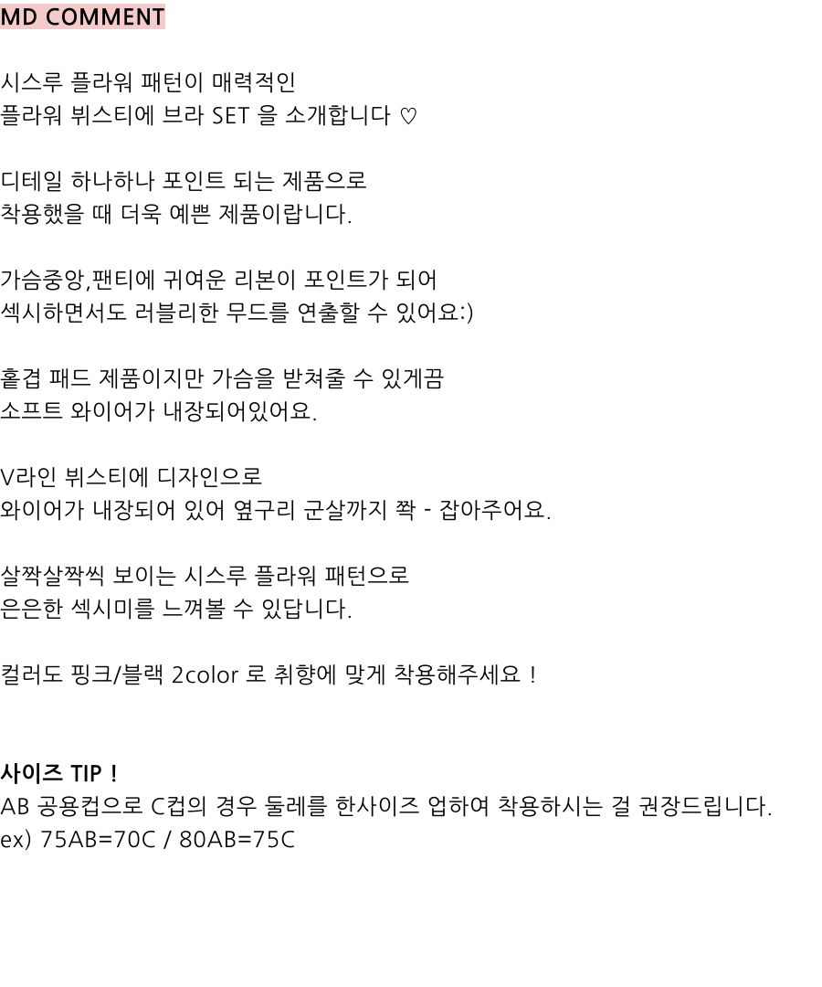 시스루 플라워 코르셋 뷔스티에 브라 set (2color)