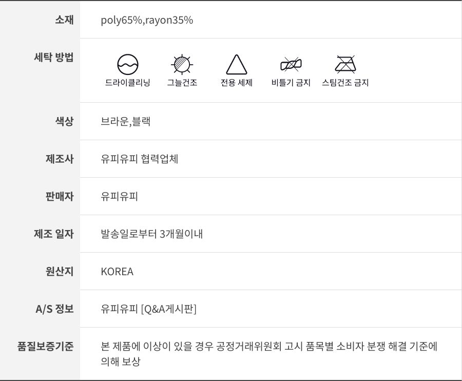 세탁방법 및 취급시 주의사항