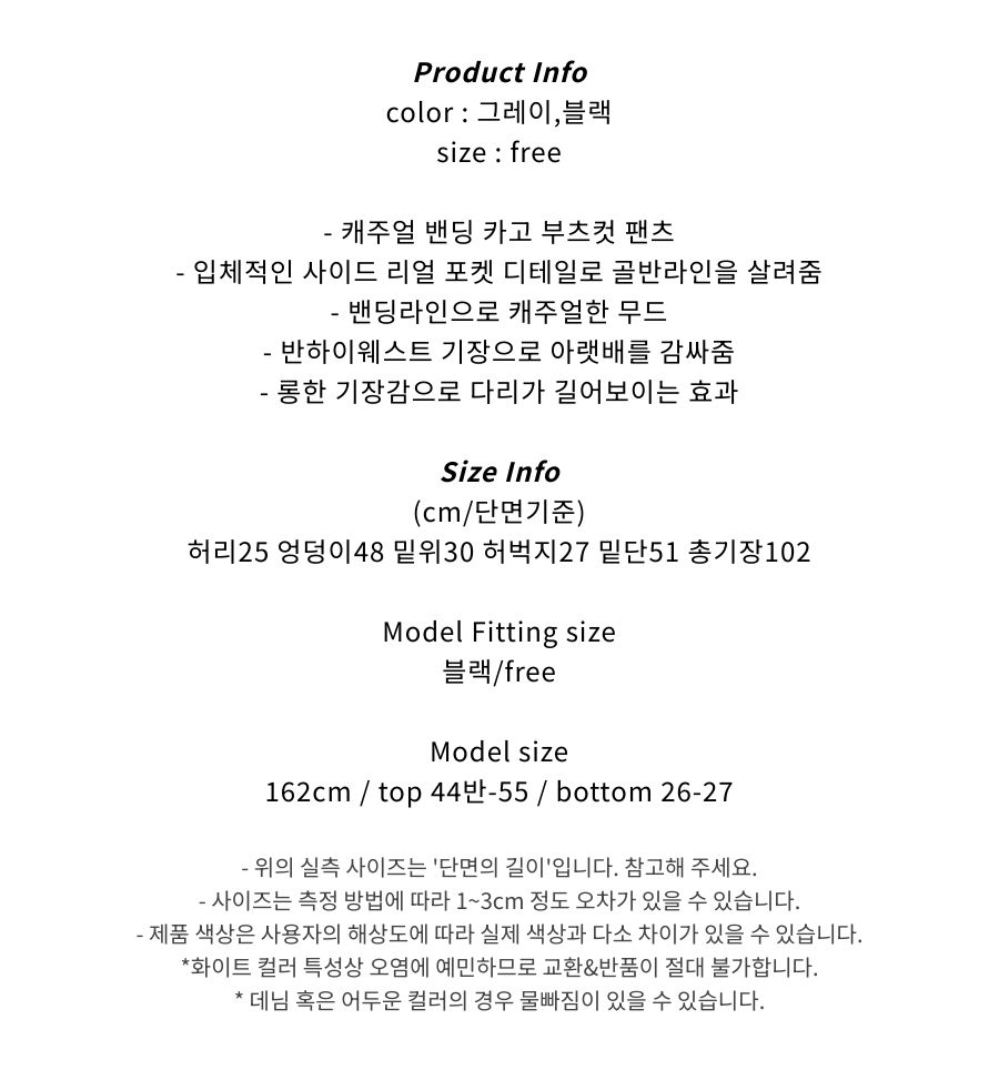 캐주얼 카고 밴딩 부츠컷 팬츠 (2color)