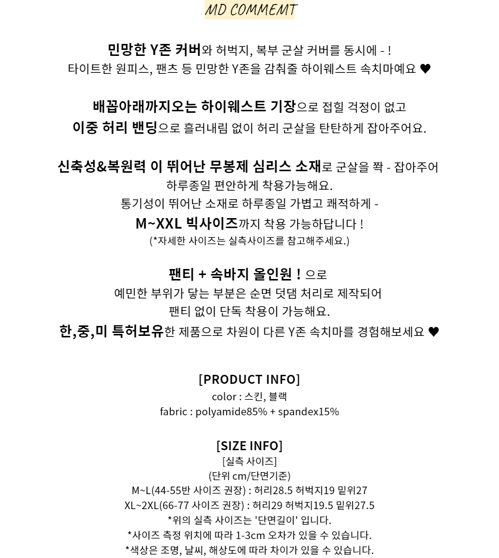 [특허]M~2XL Y존커버 하이웨스트 심리스 속치마