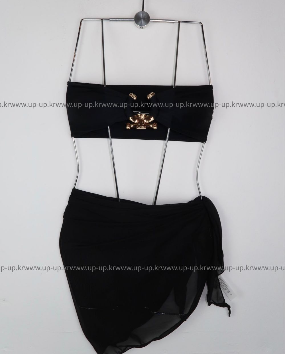 (3pcs) 골드 메탈 튜브탑 스커트 비키니
