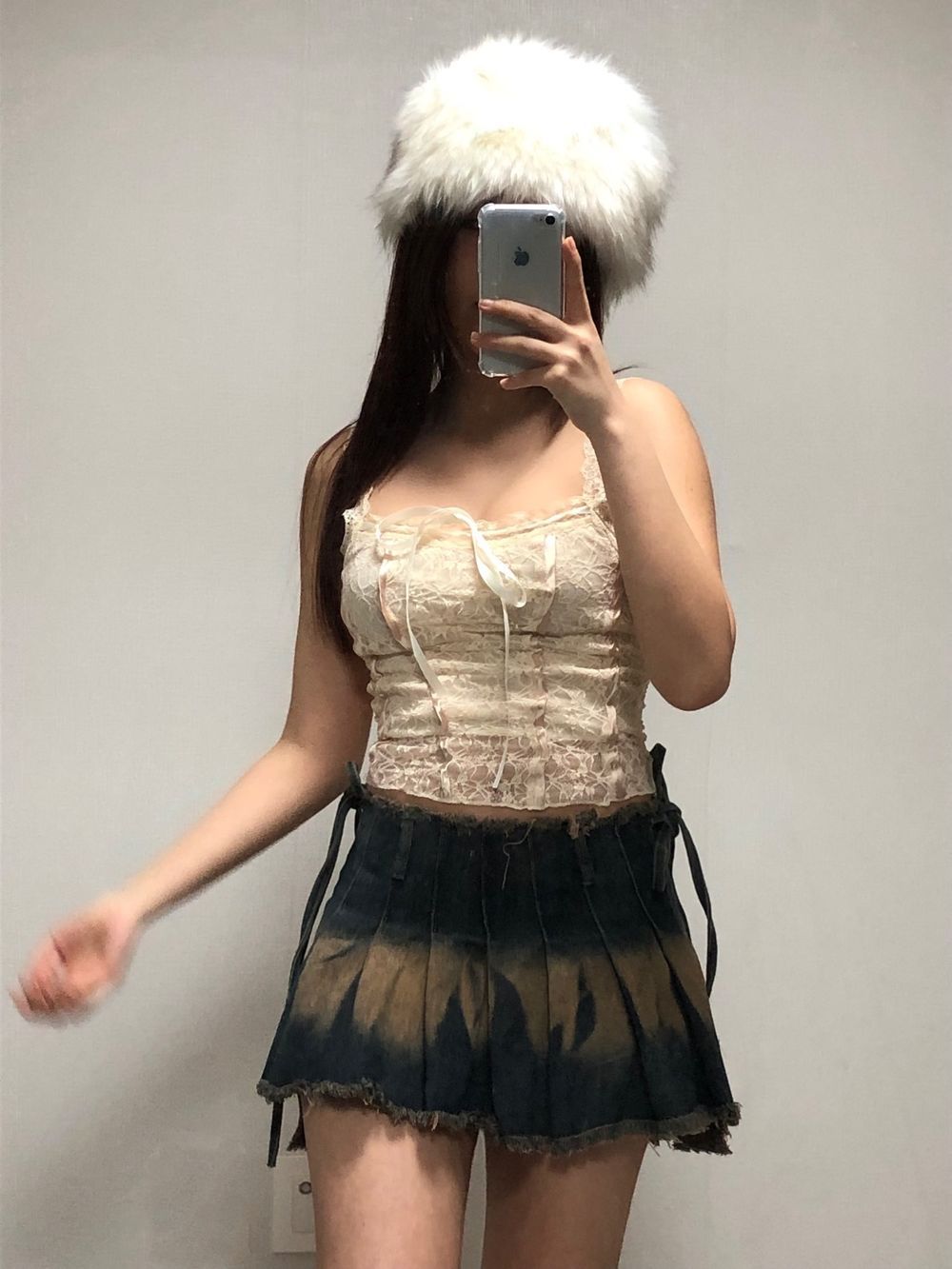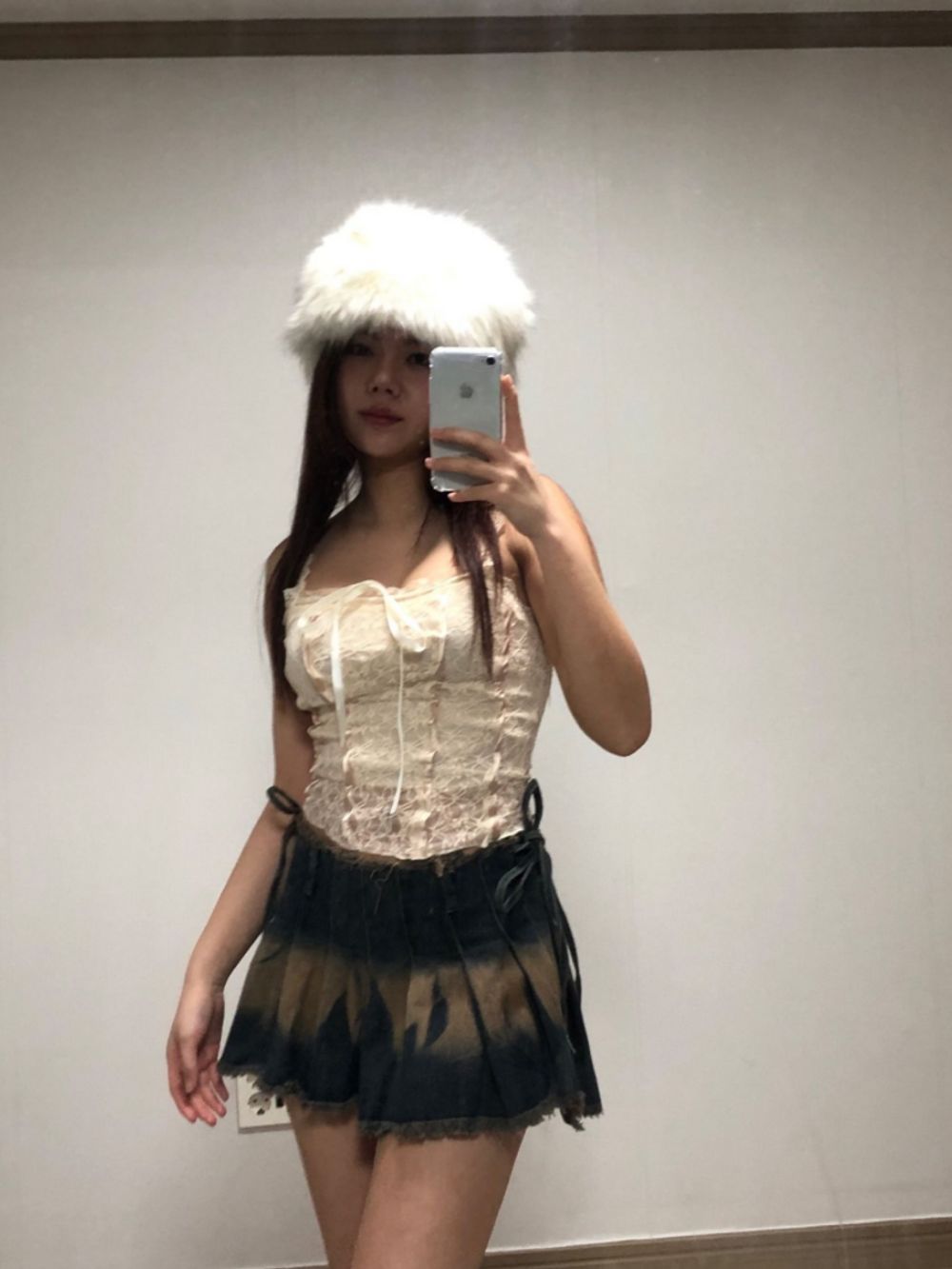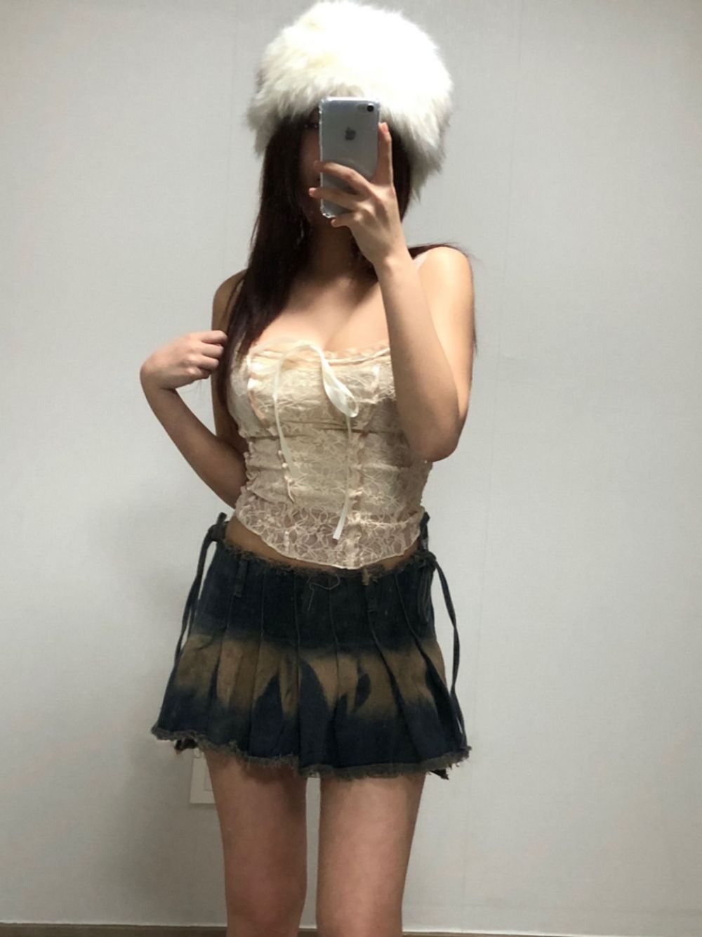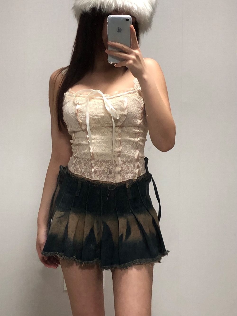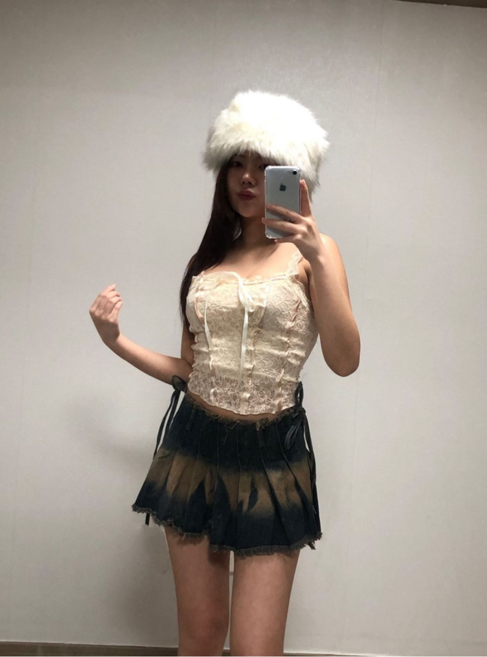 리본 포인트 레이스 뷔스티에 탑 (2color)