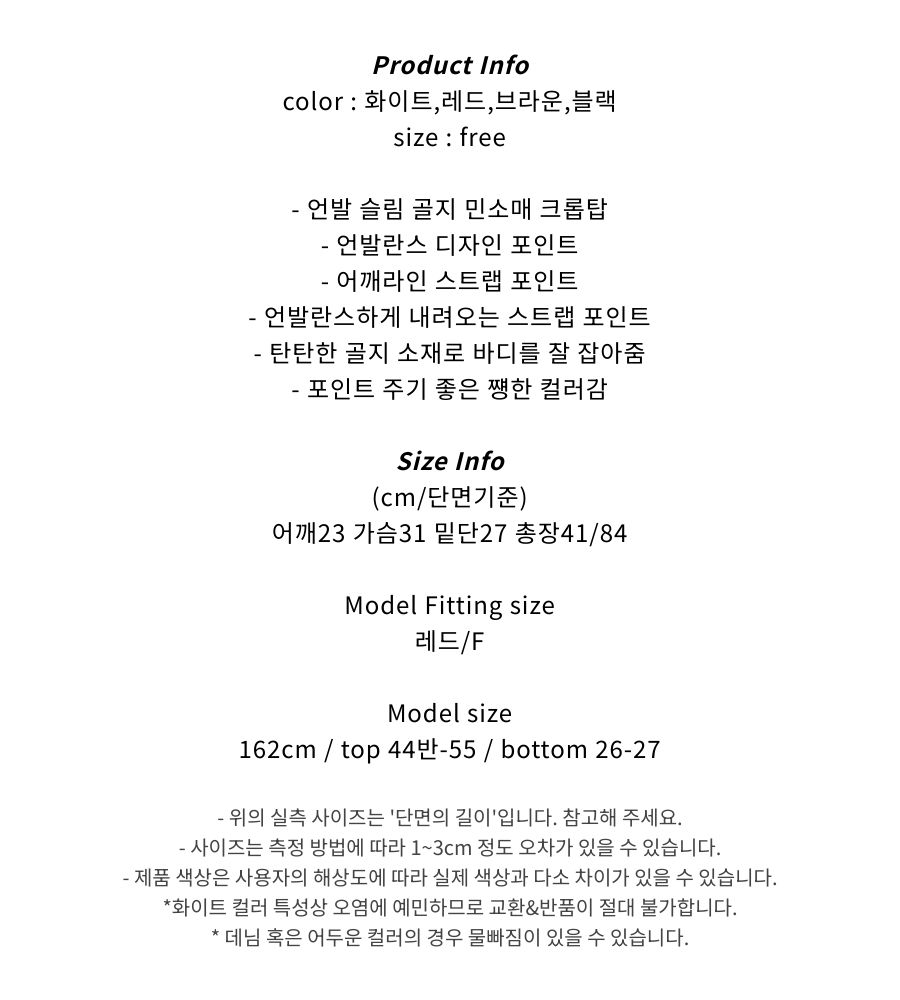 언발 골지 스트랩 슬림 크롭탑 (4color)