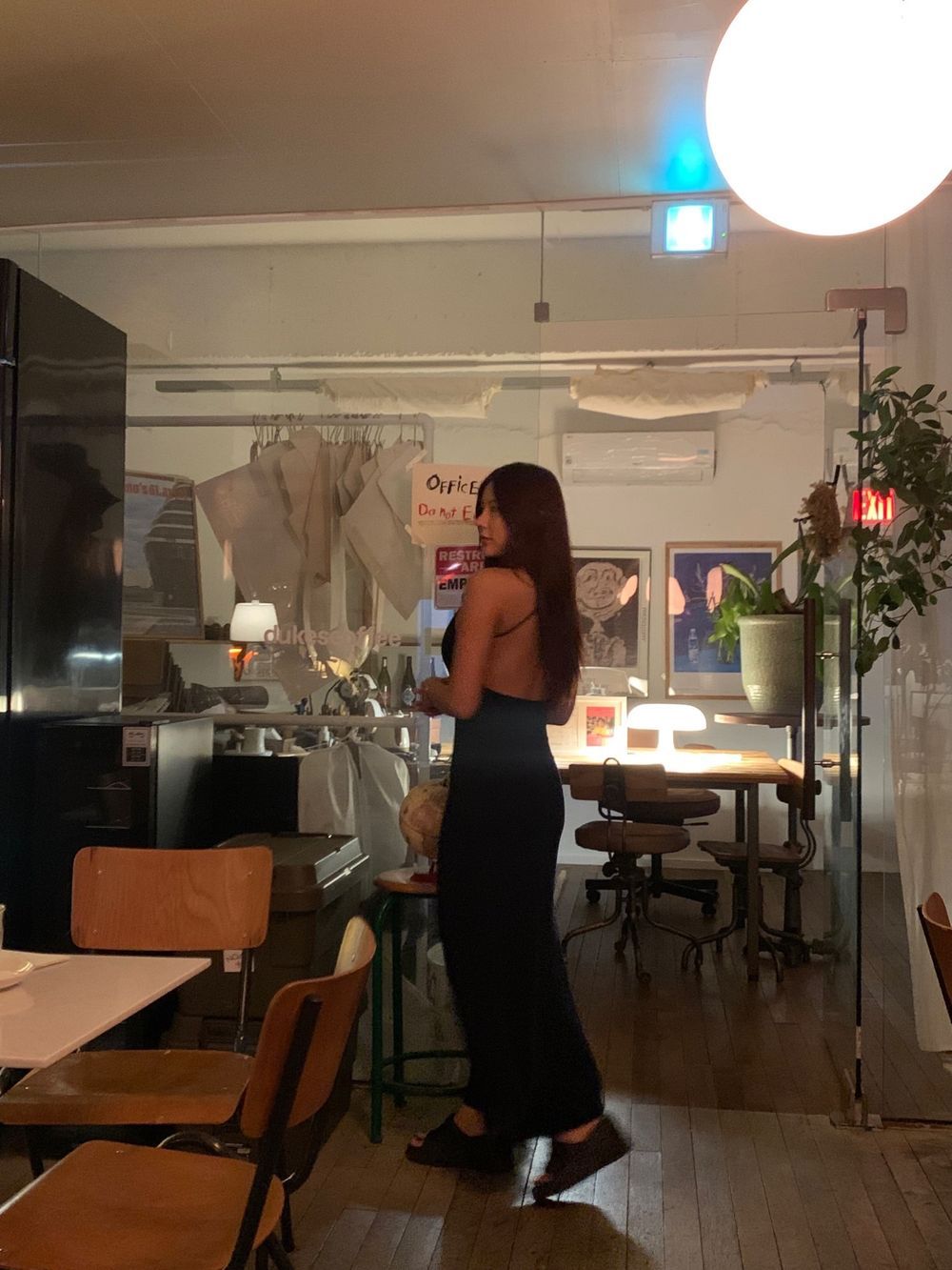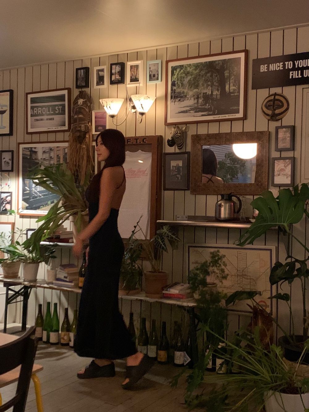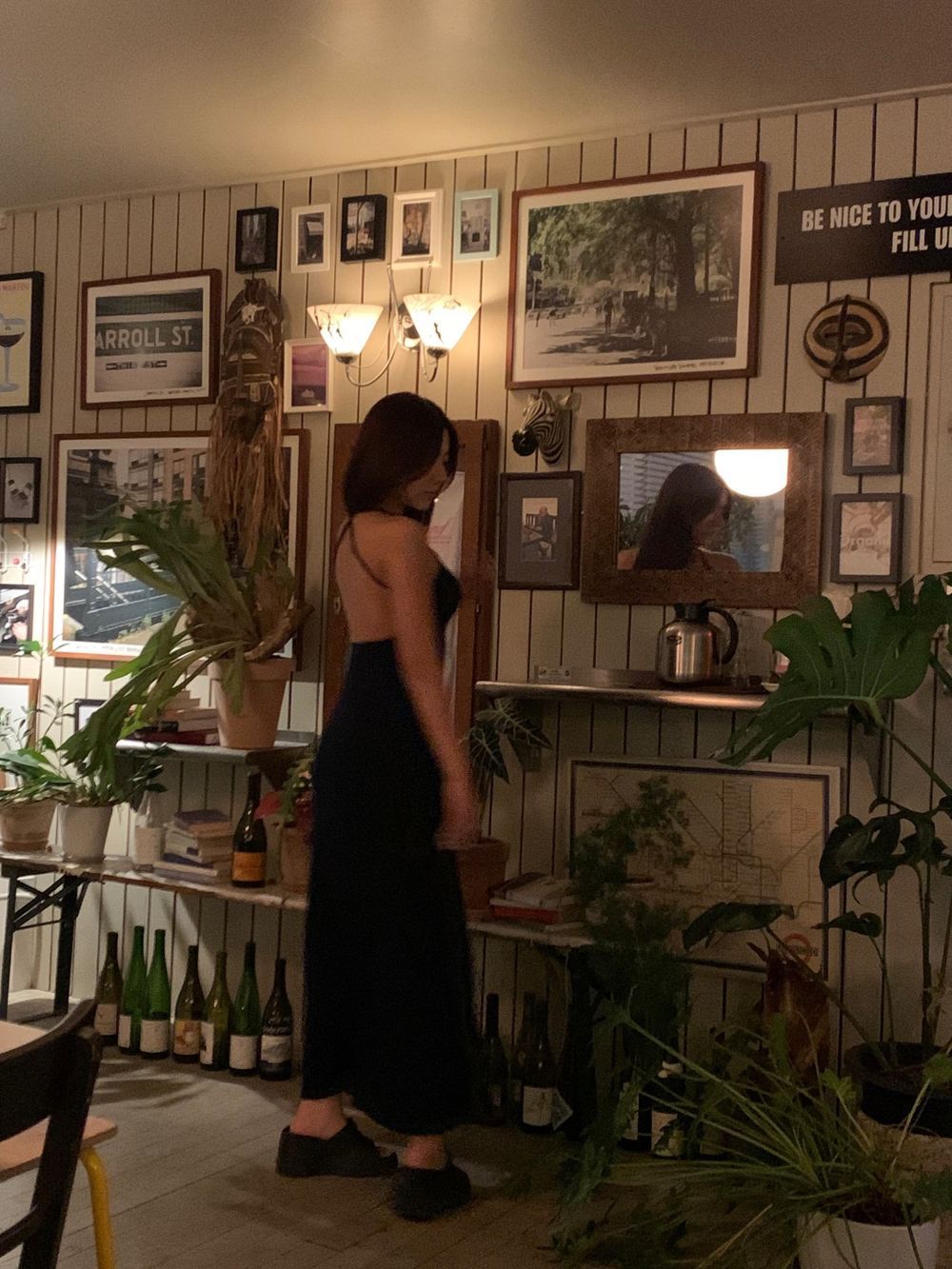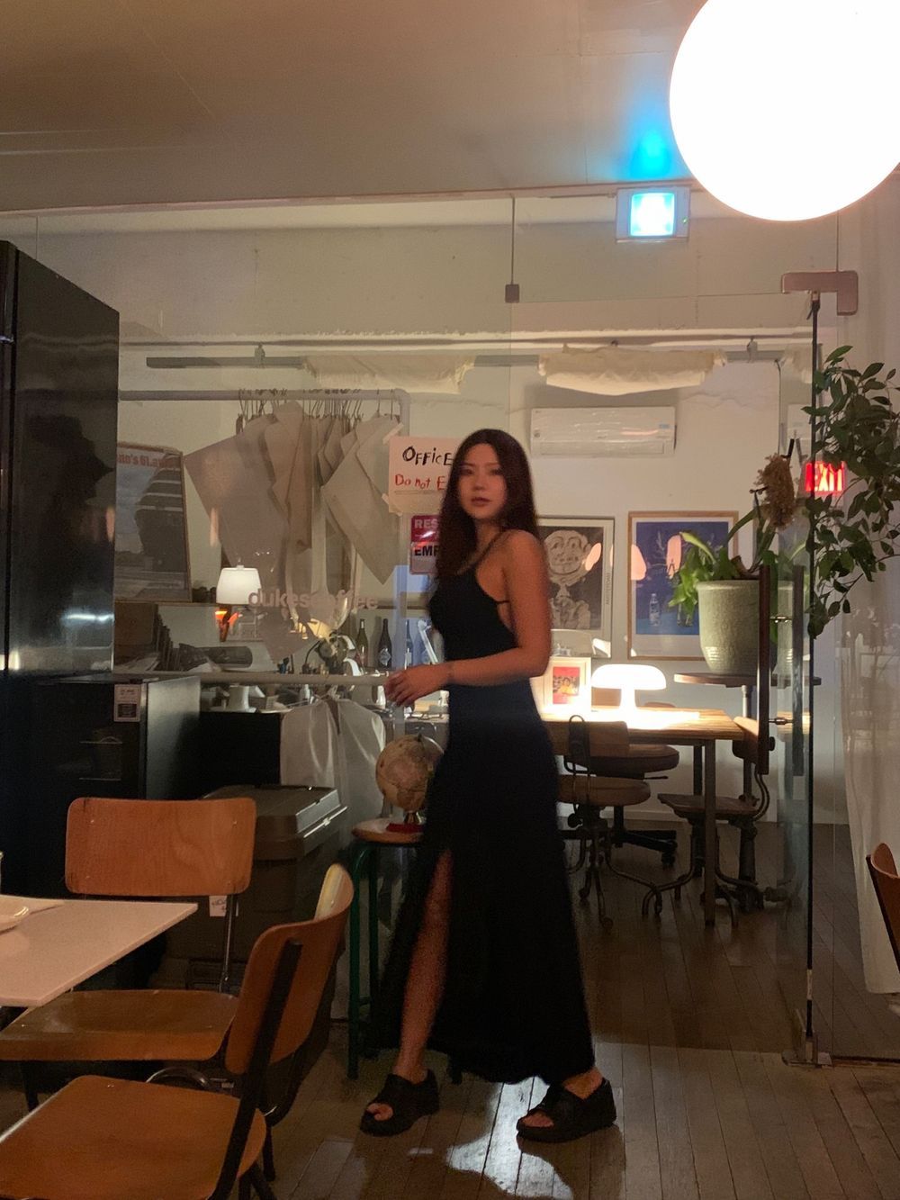 (패드내장O) 백리스 롱 트임 홀터넥 원피스