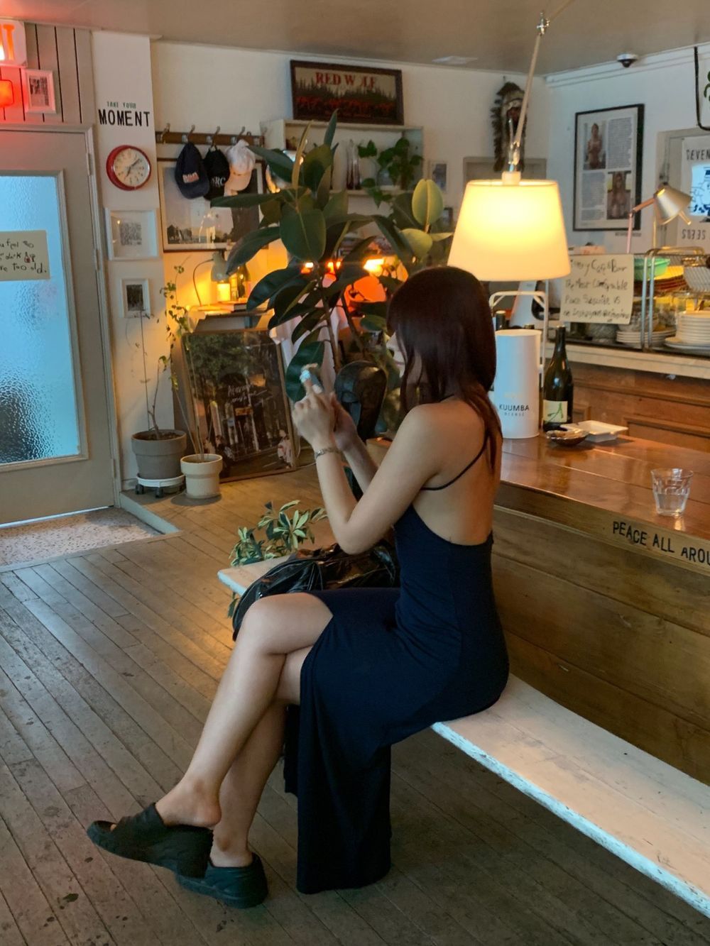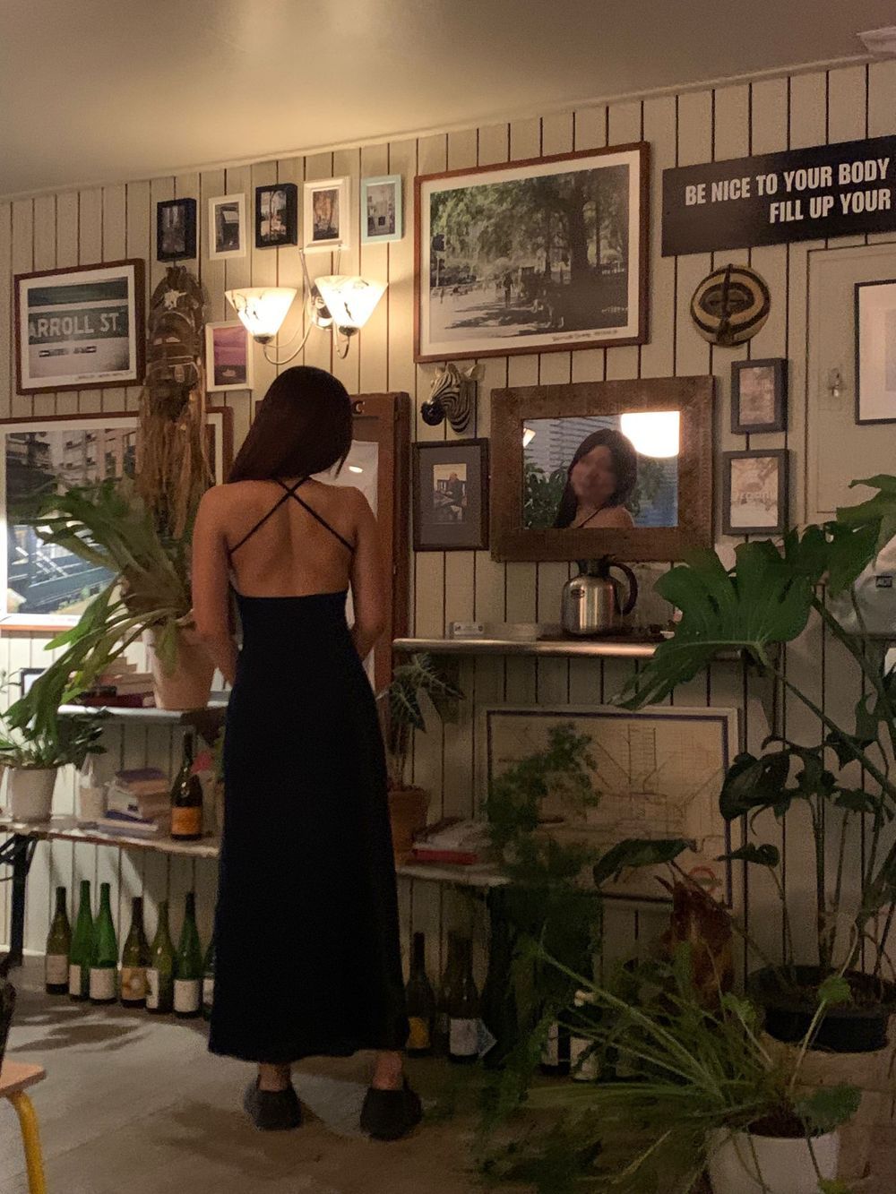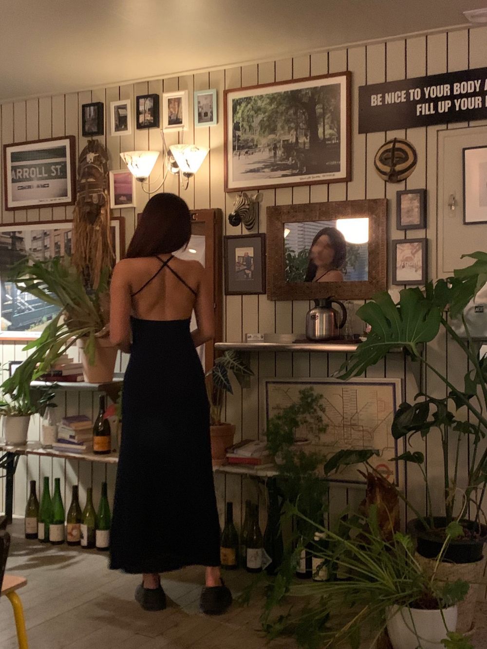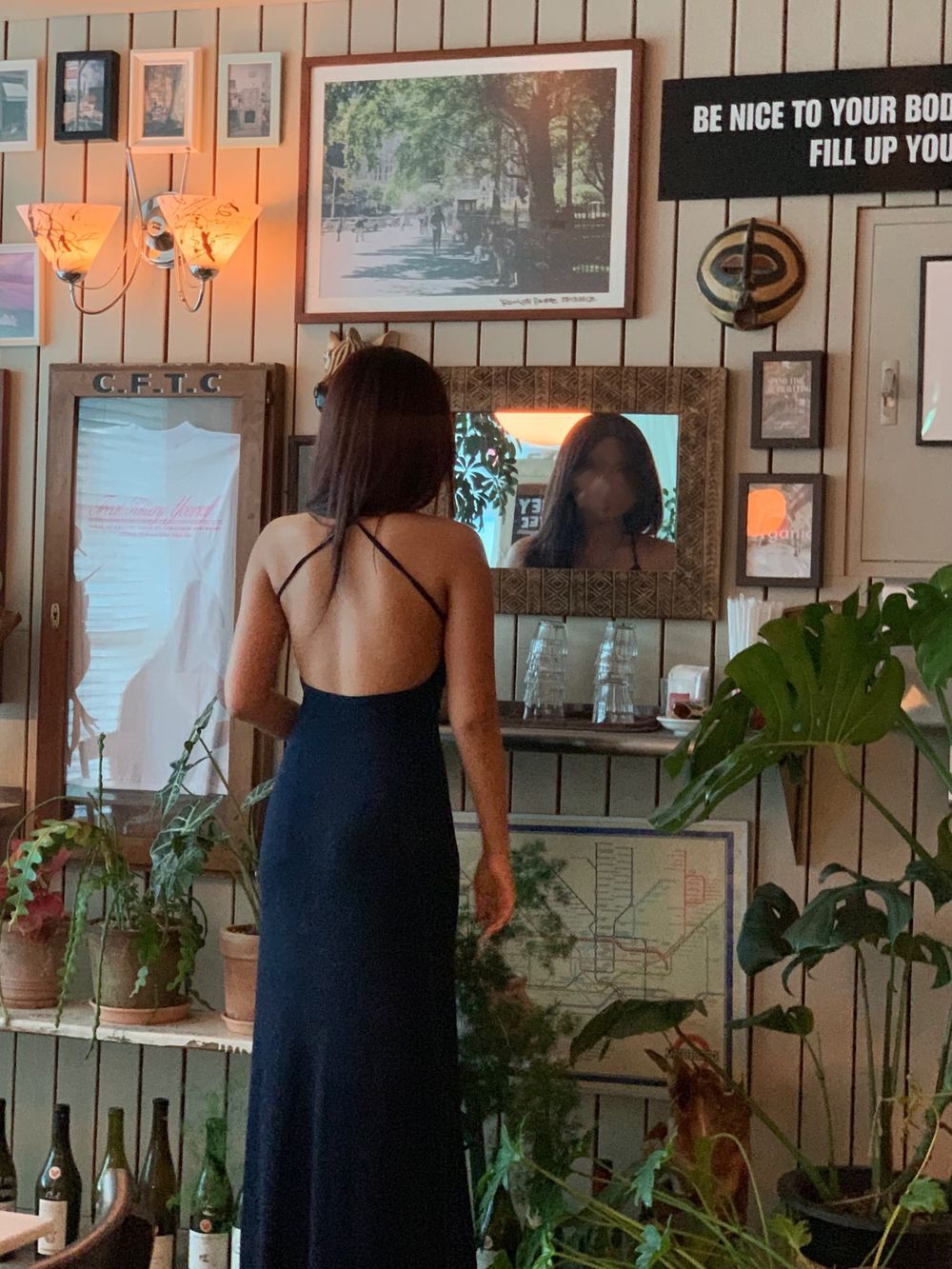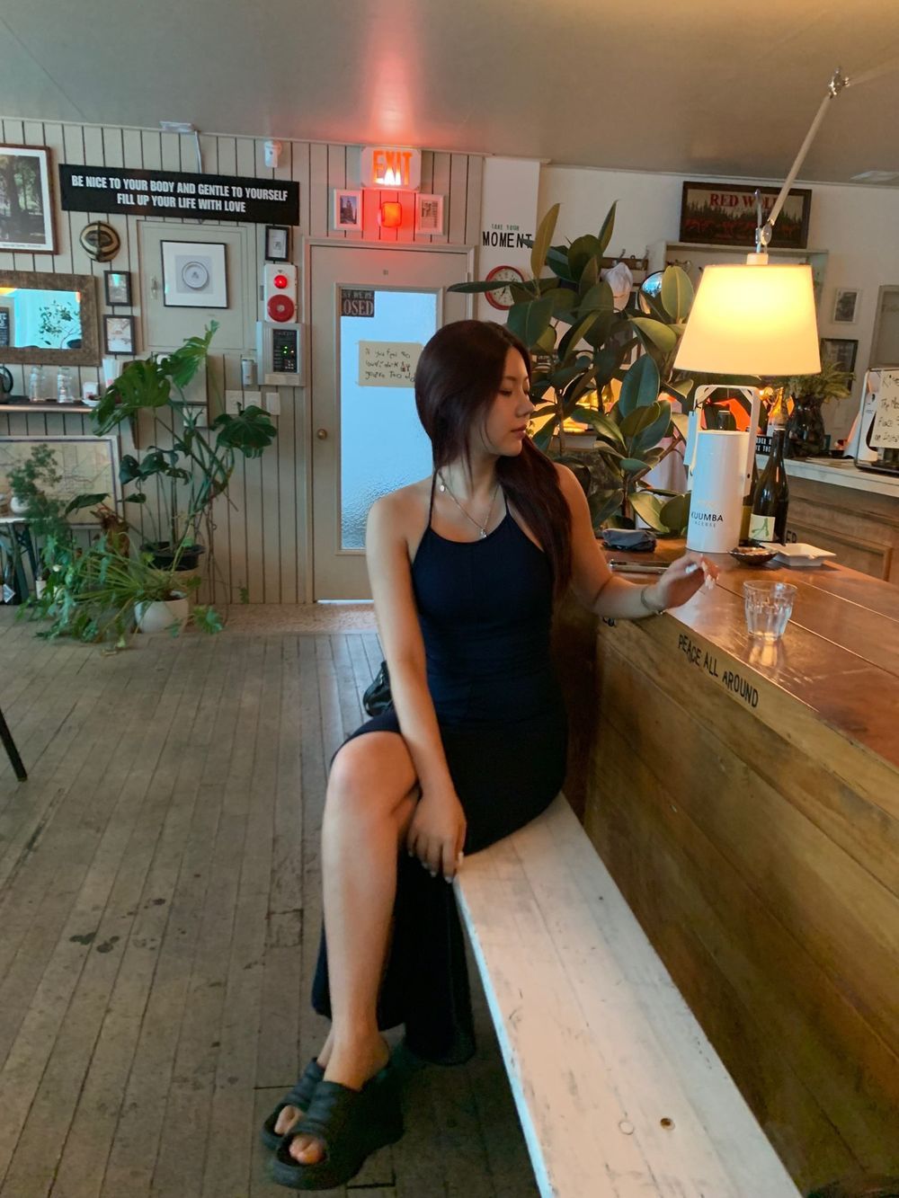 (패드내장O) 백리스 롱 트임 홀터넥 원피스