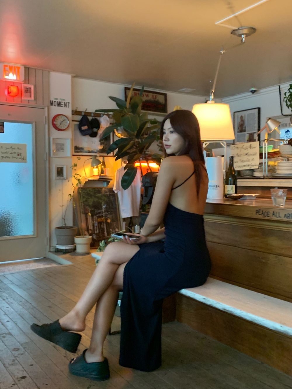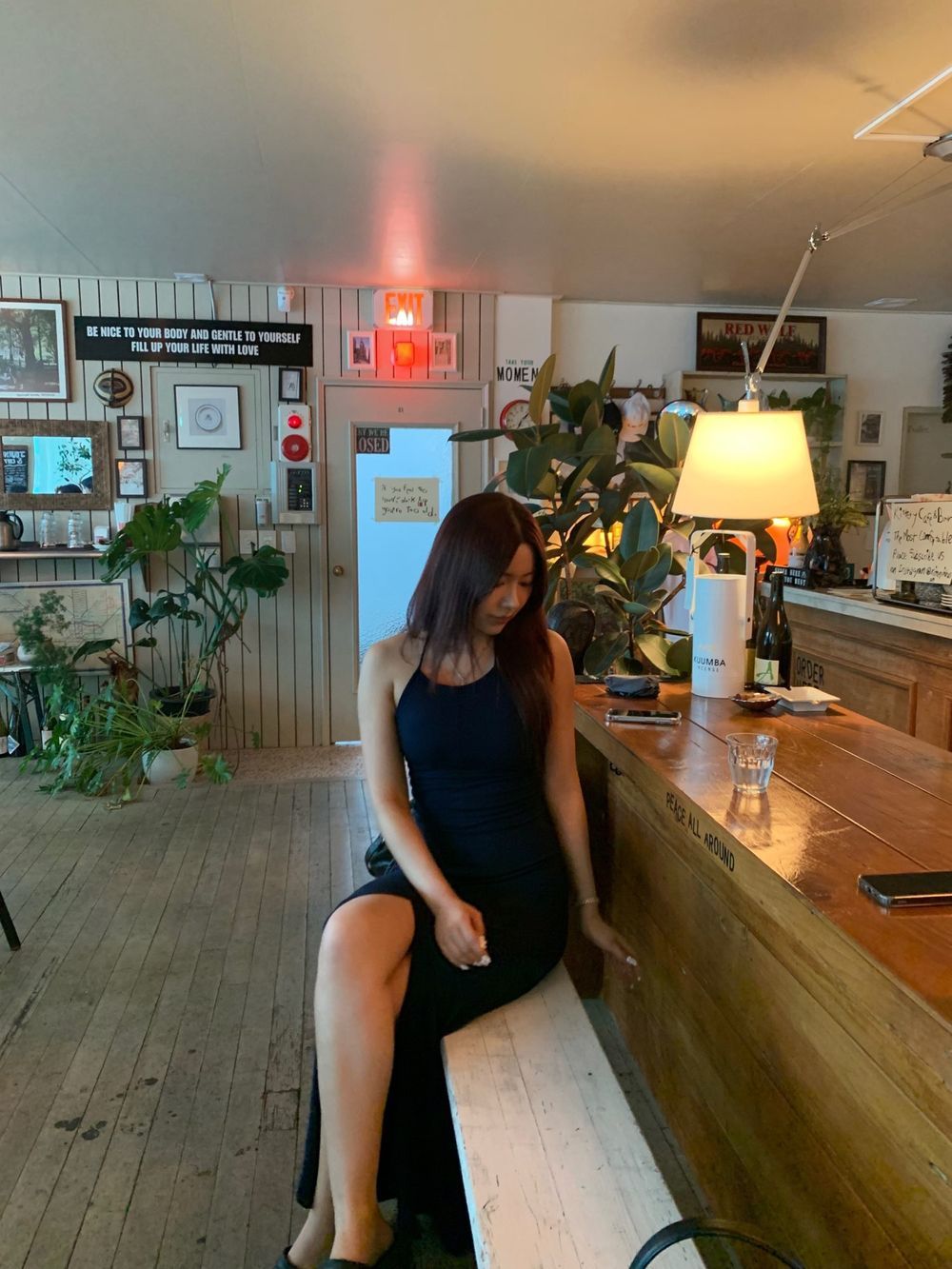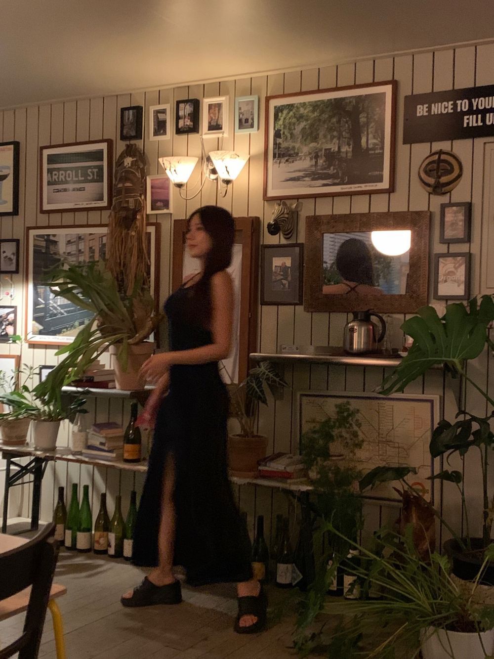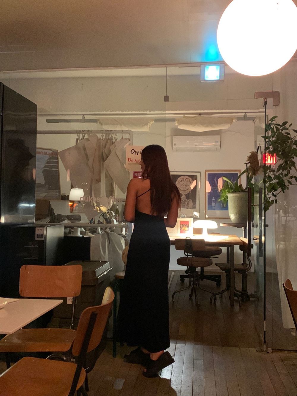 (패드내장O) 백리스 롱 트임 홀터넥 원피스