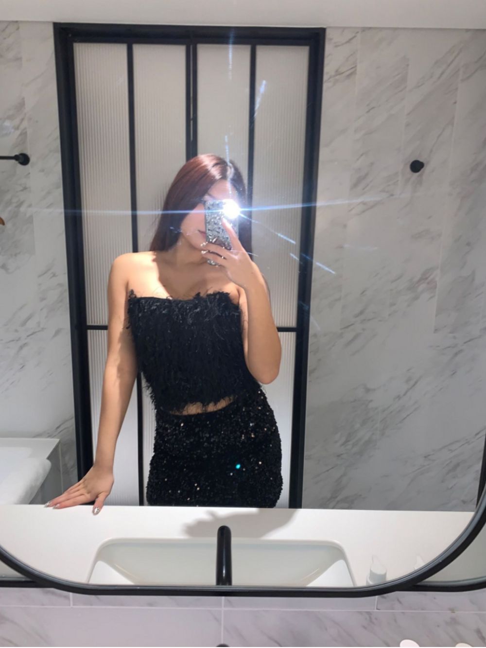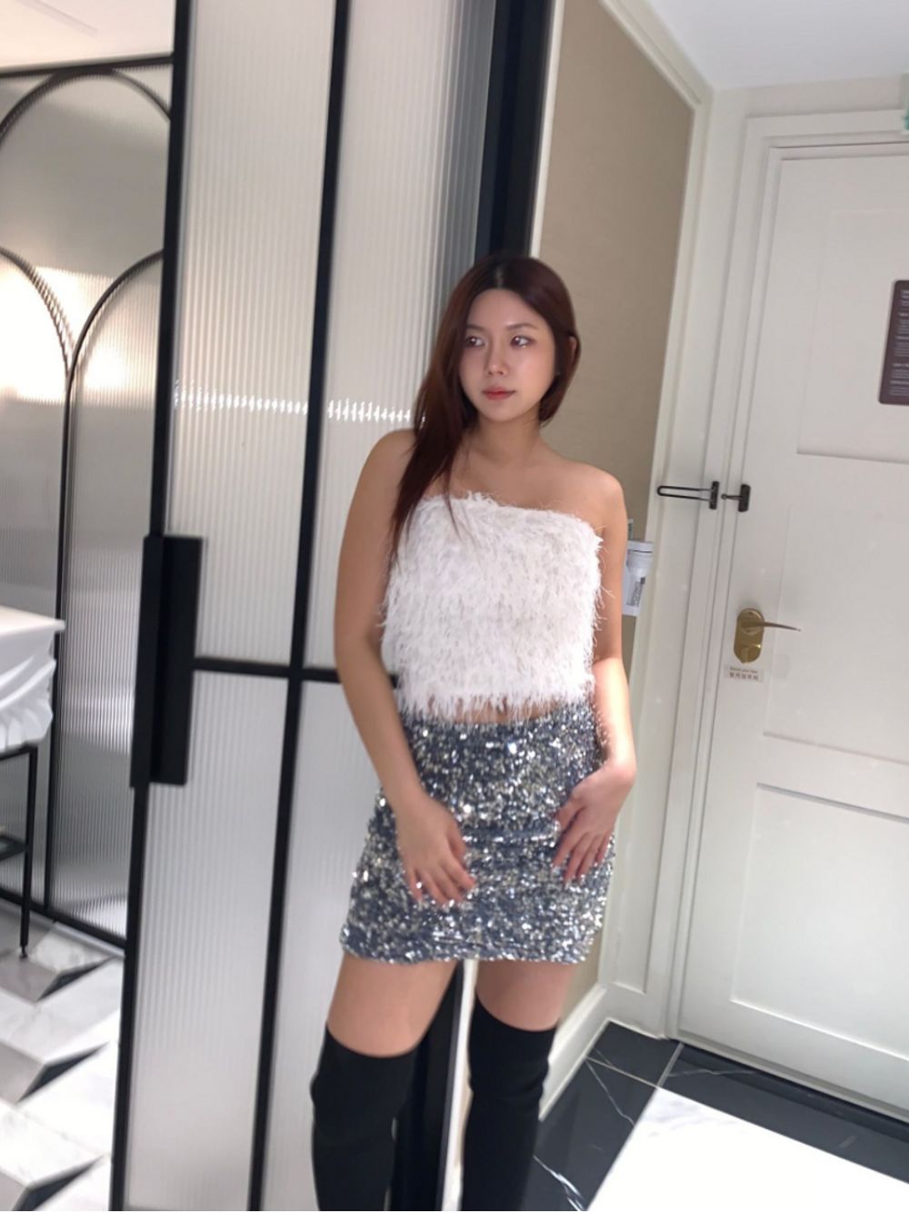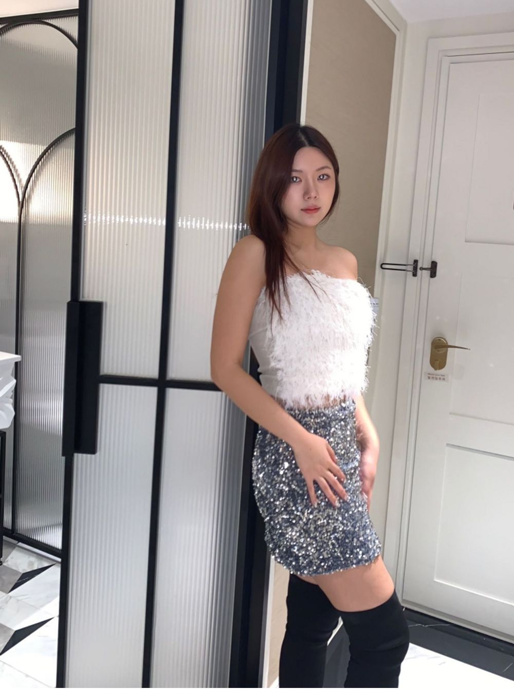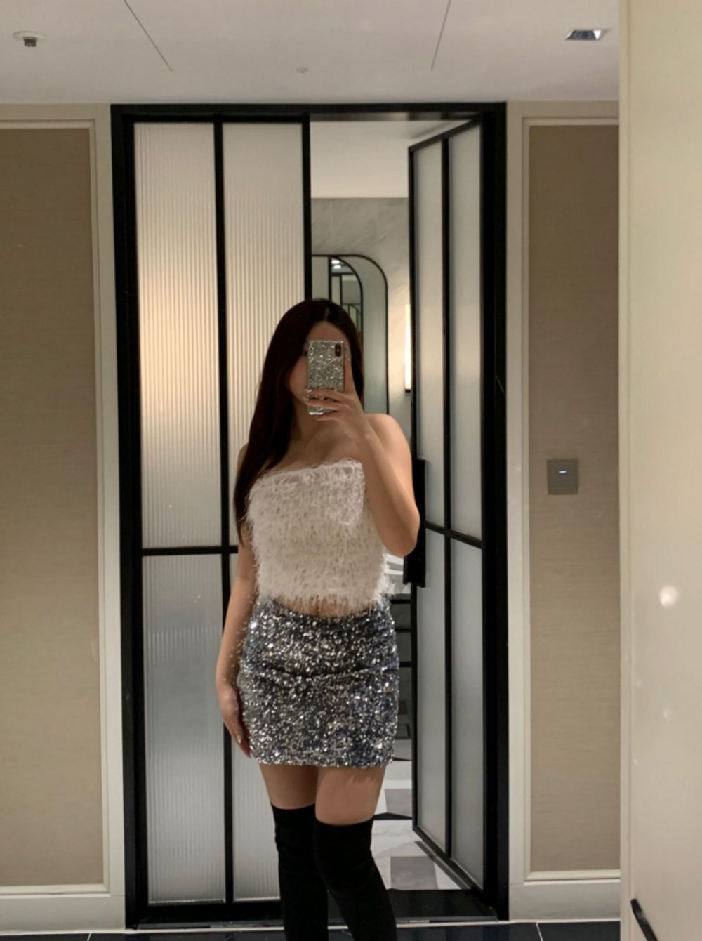 (연말룩/파티룩추천) 스팽글 미니 sk (2color)