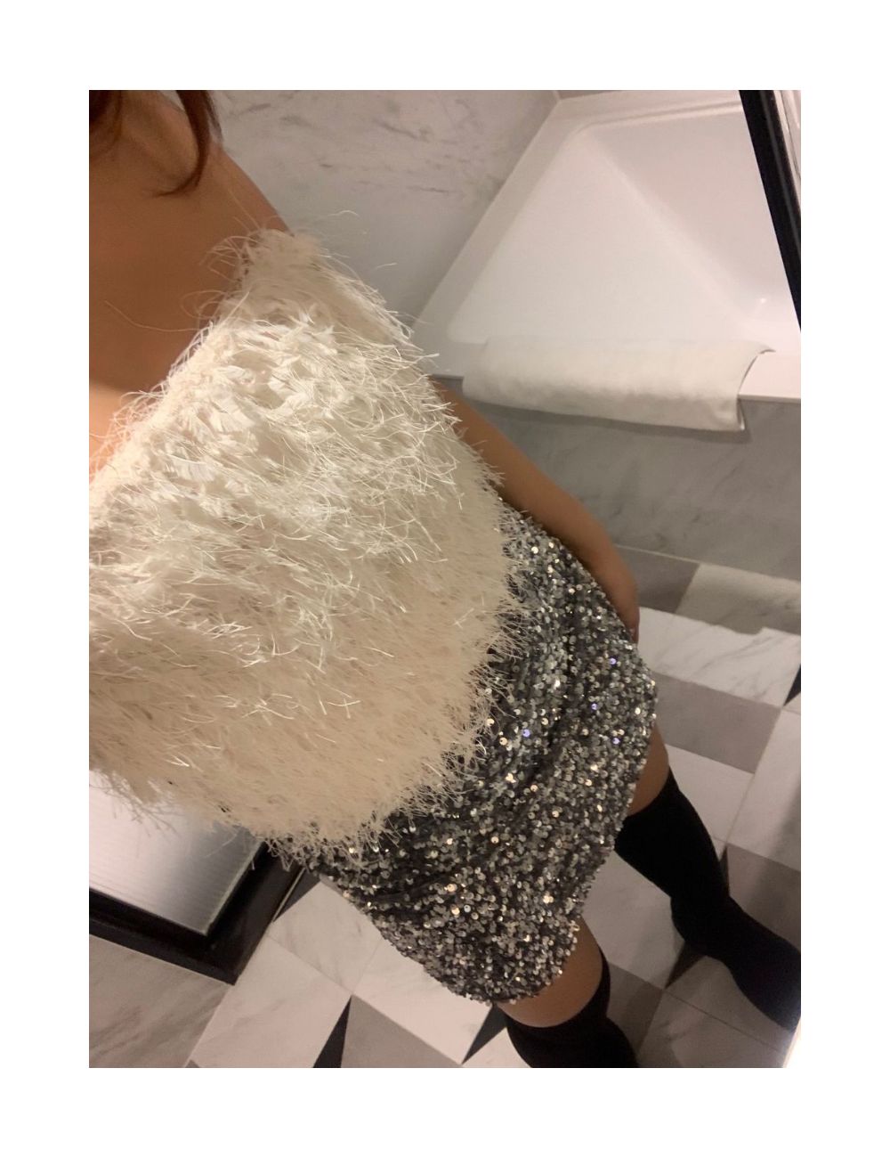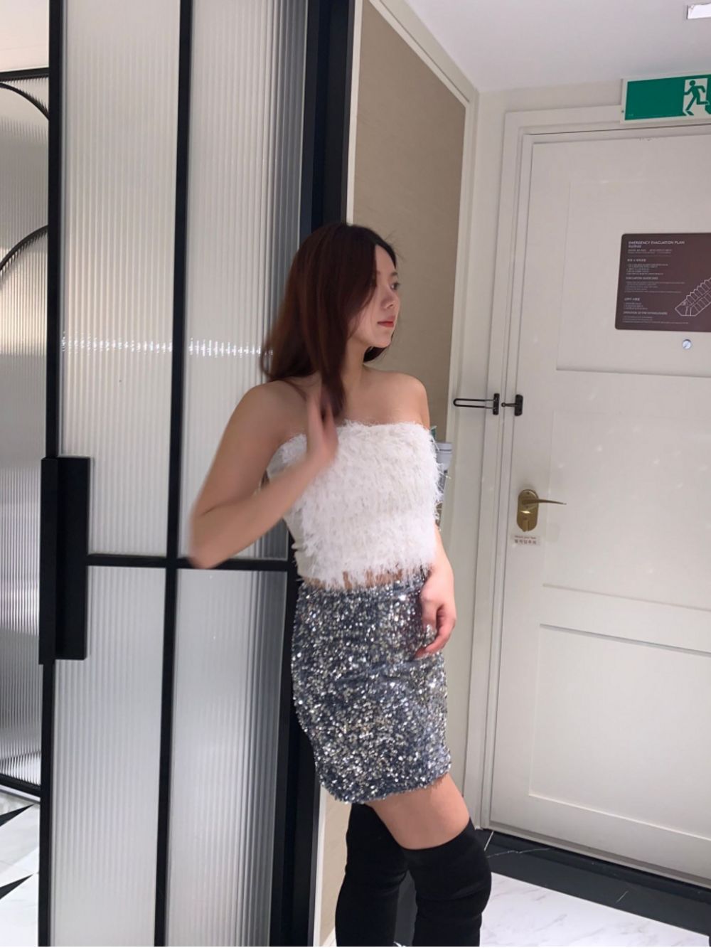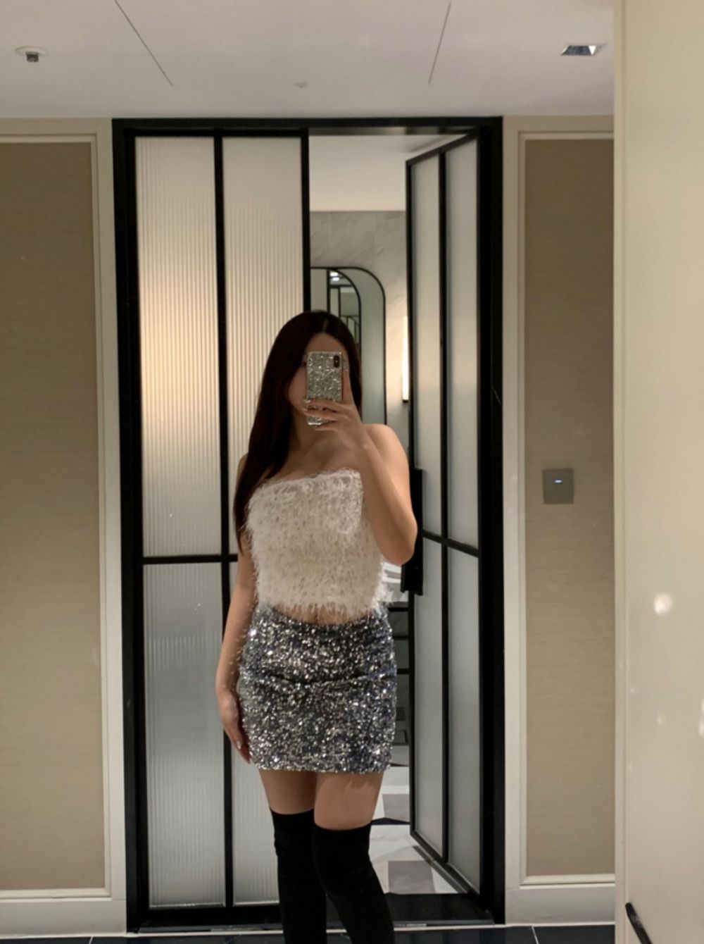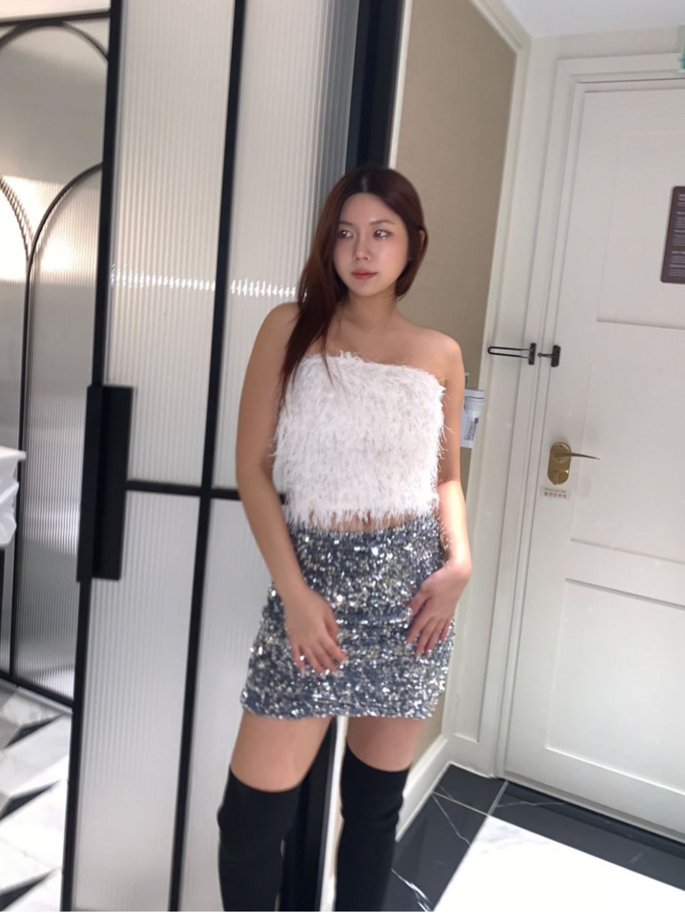 (연말룩/파티룩) 퍼 니트 밴딩 크롭탑 (2color)