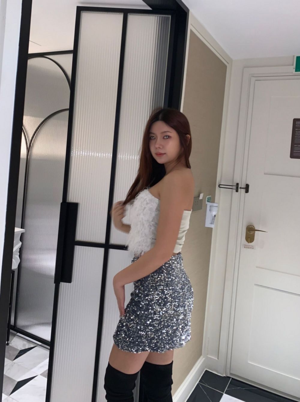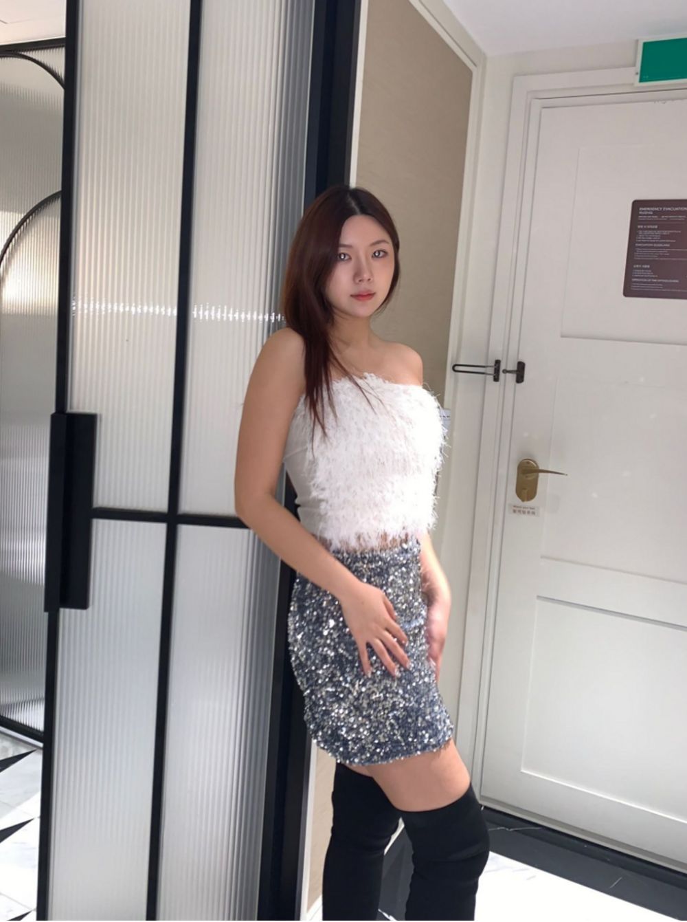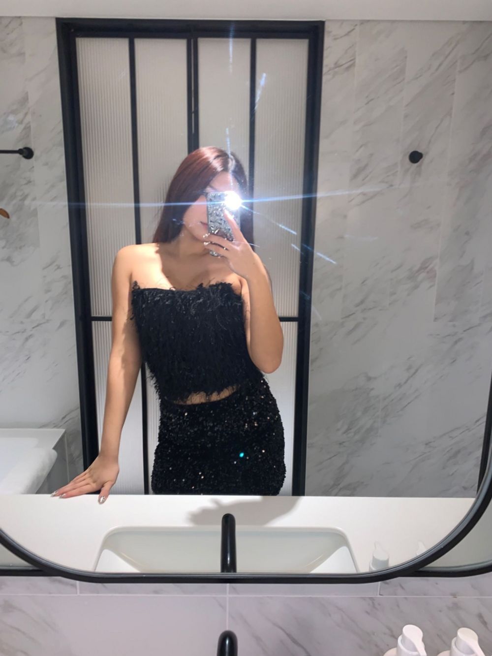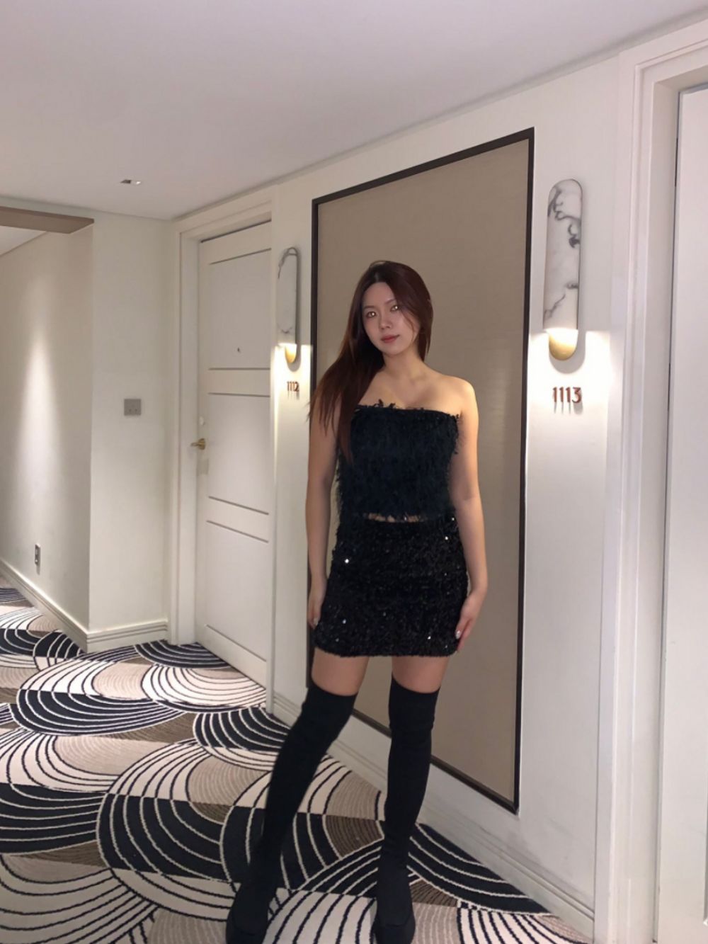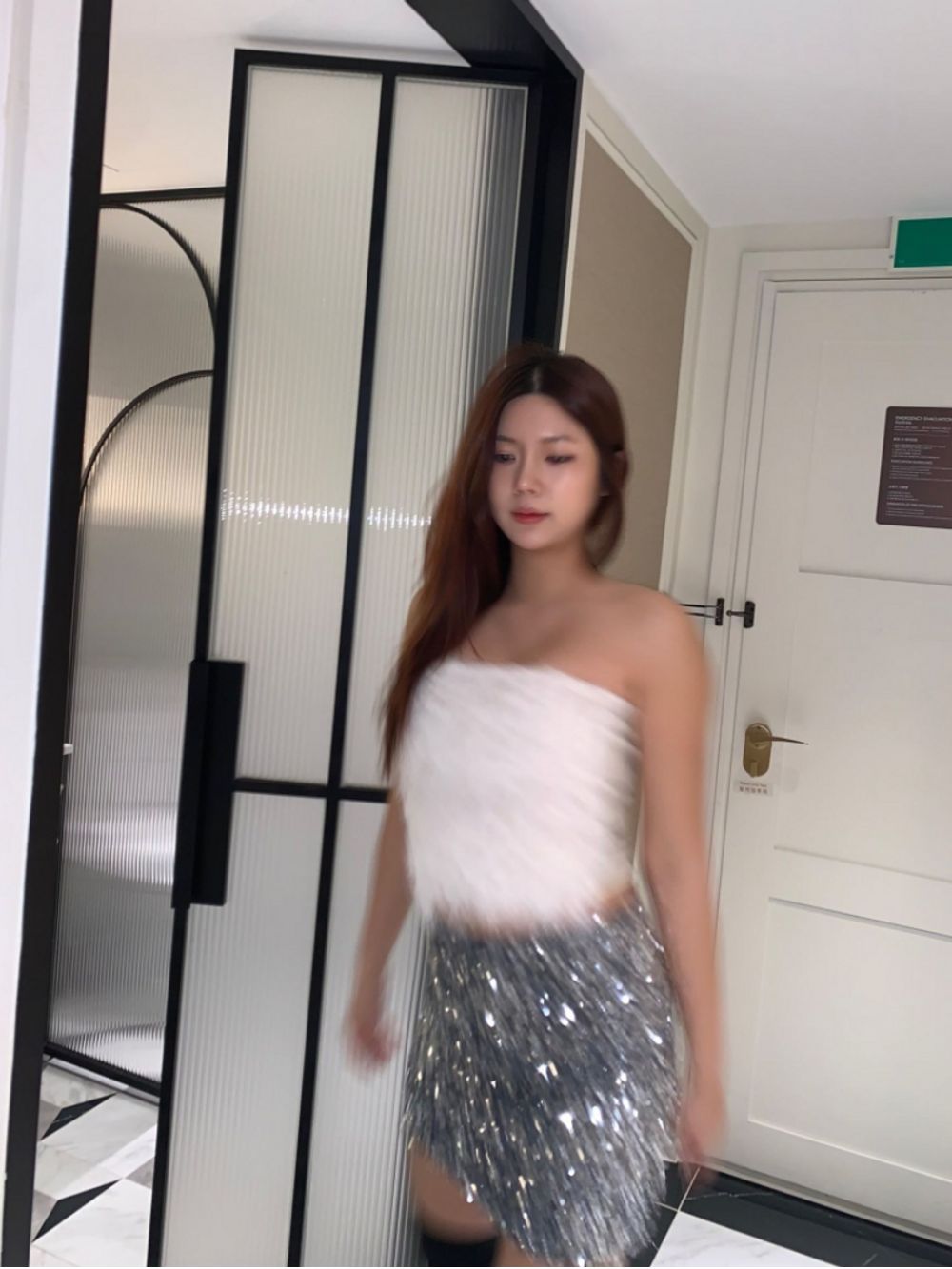 (연말룩/파티룩) 퍼 니트 밴딩 크롭탑 (2color)