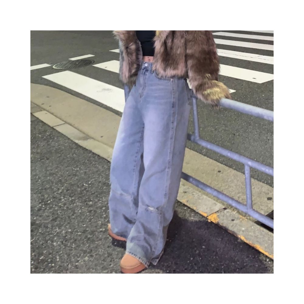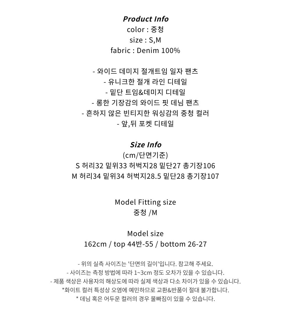 와이드 절개 데미지 데님 팬츠
