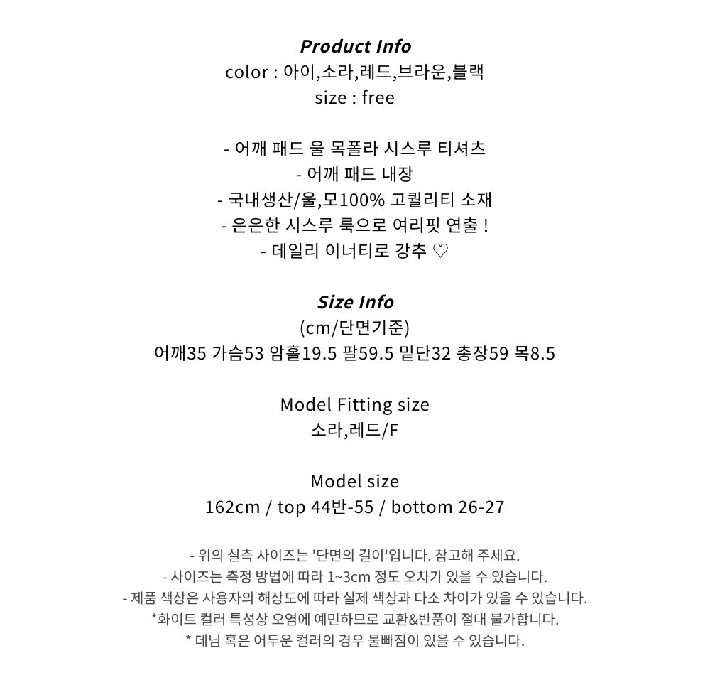 (국내생산/울100) 어깨 패드 울 목폴라 시스루 티셔츠 (5color)