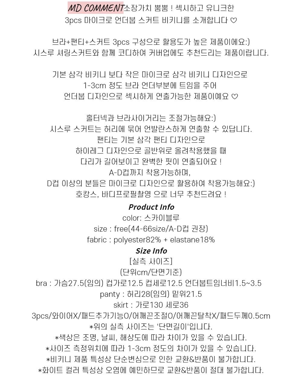 (3pcs) 마이크로 언더붑 스커트 비키니